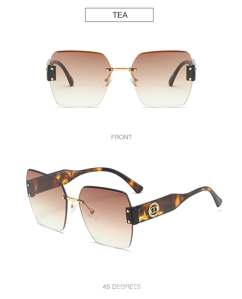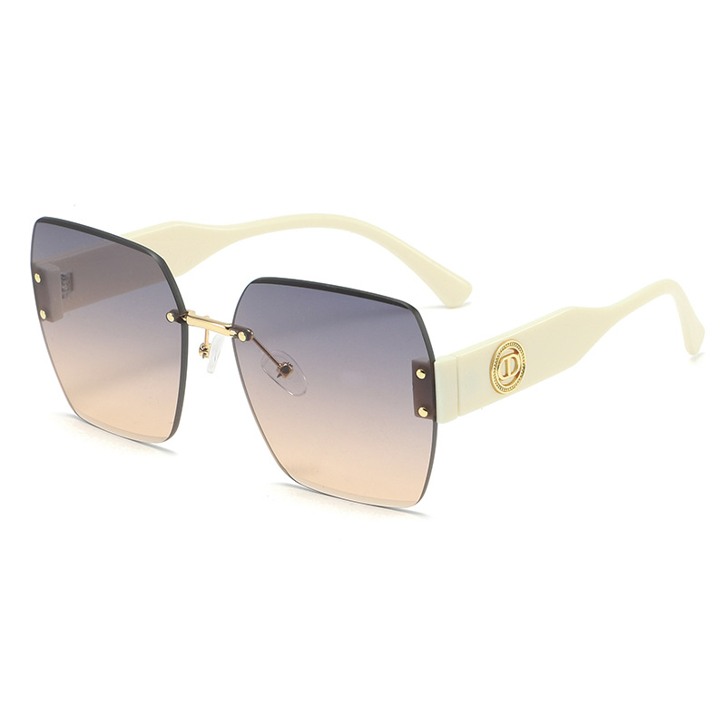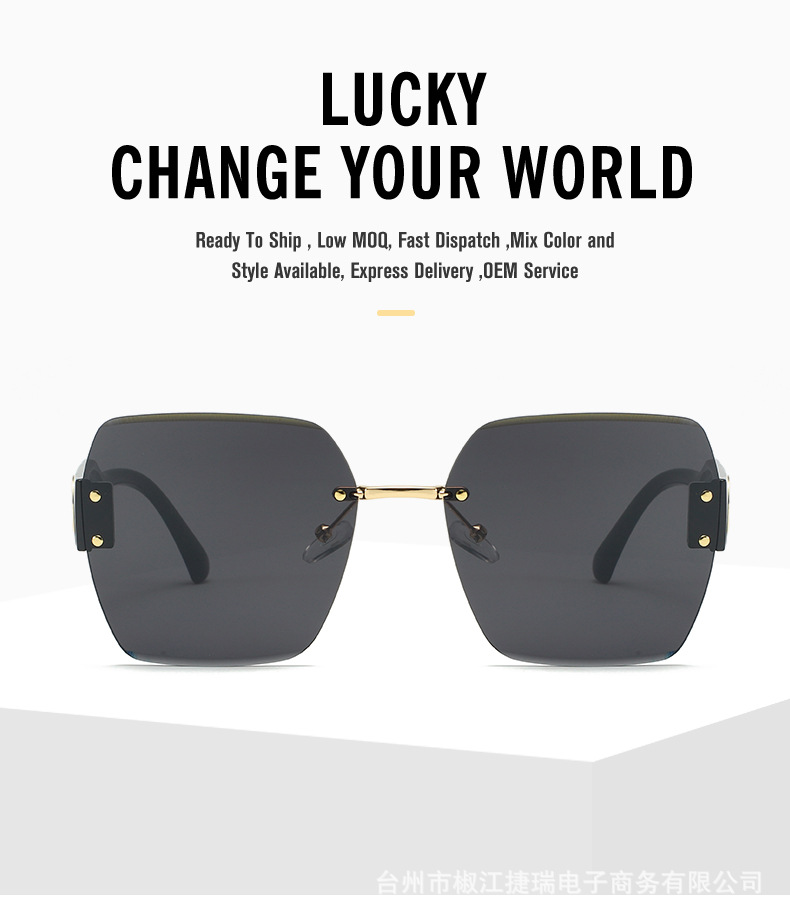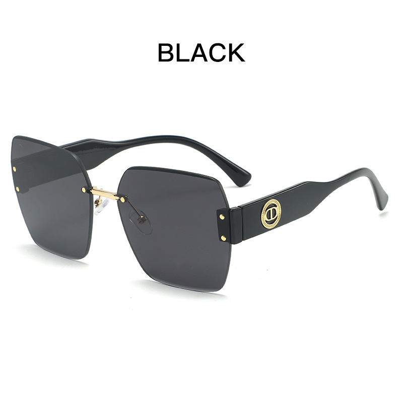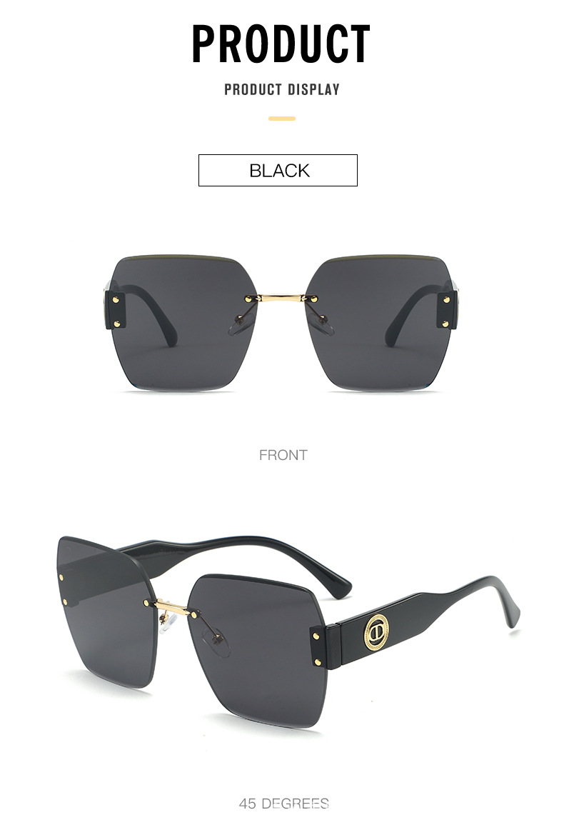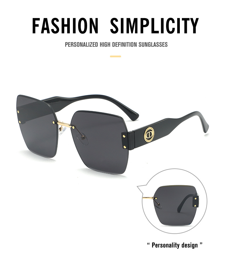 新款时尚潮流高级感无框太阳镜男女士墨镜防紫外线大框切边太阳镜