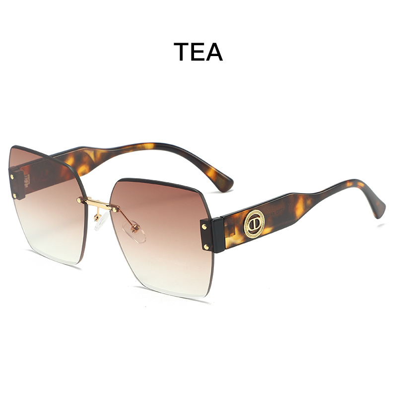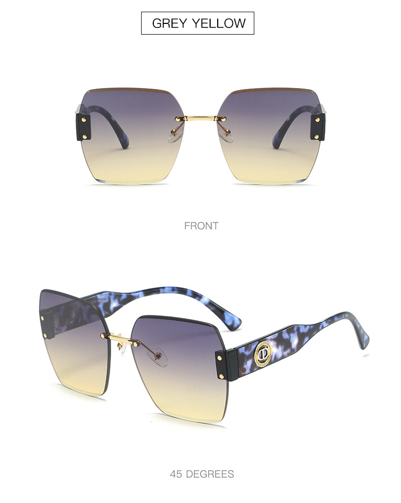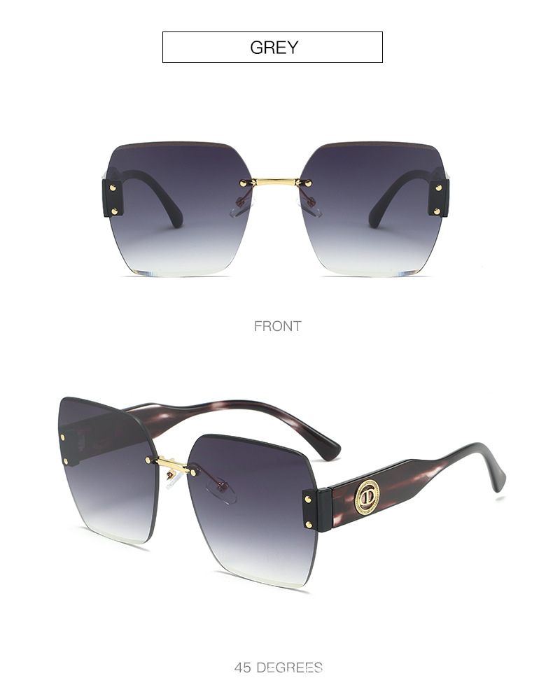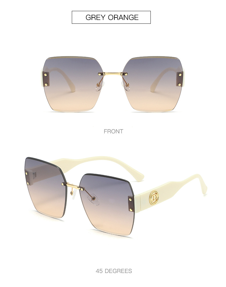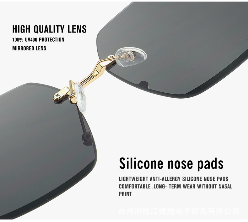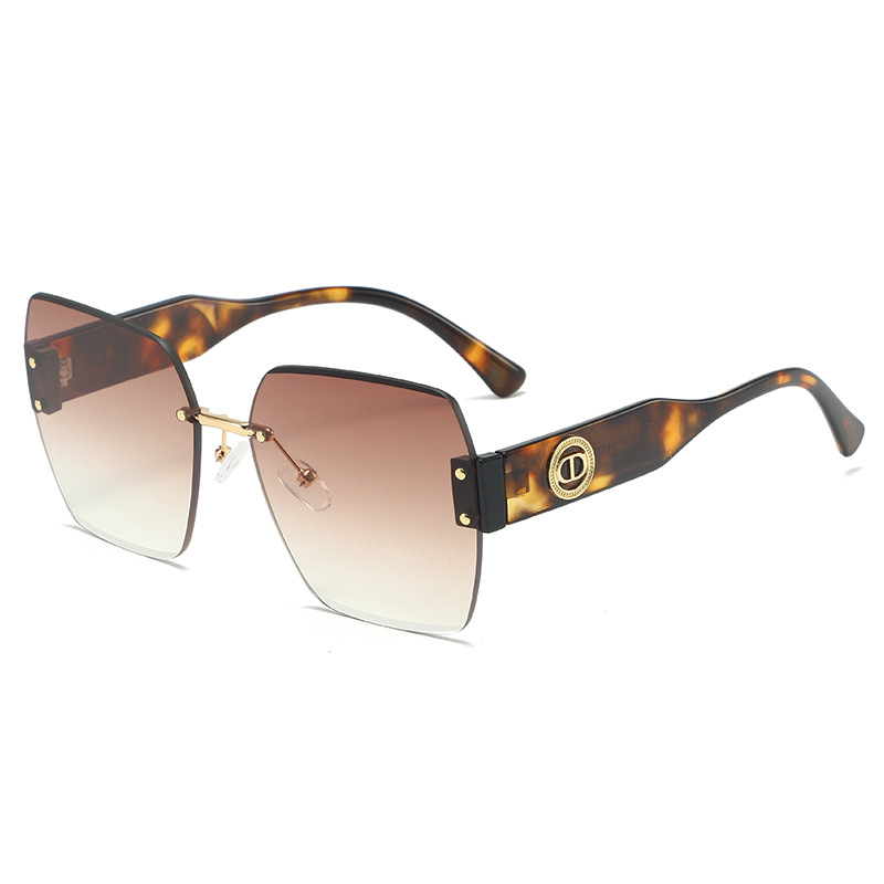 新款时尚潮流高级感无框太阳镜男女士墨镜防紫外线大框切边太阳镜