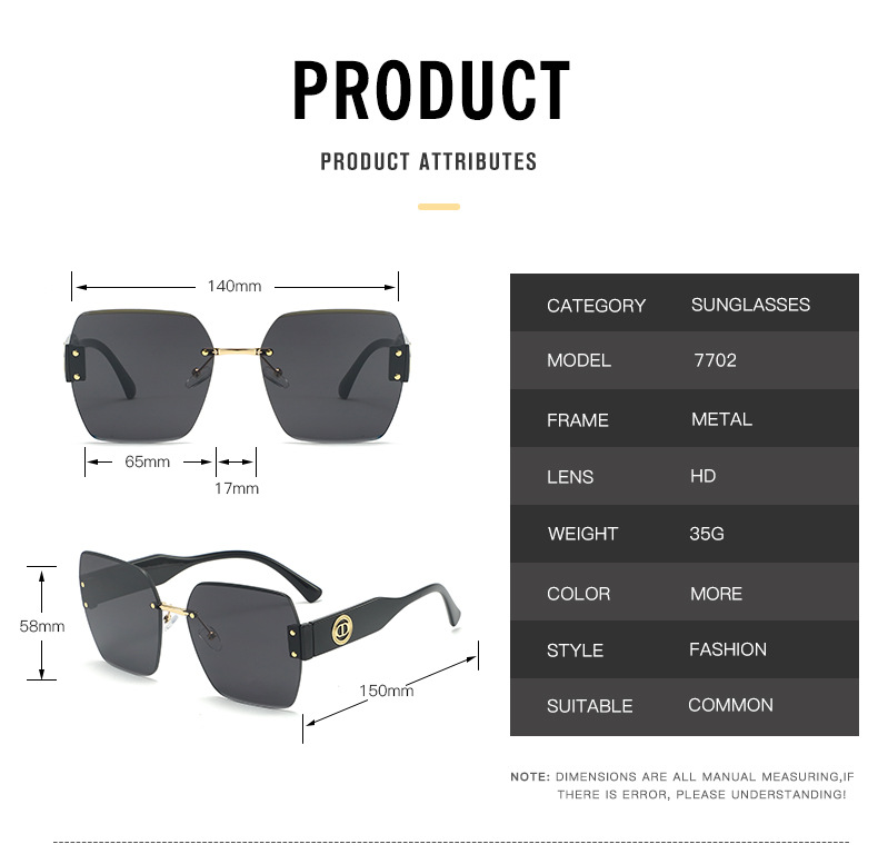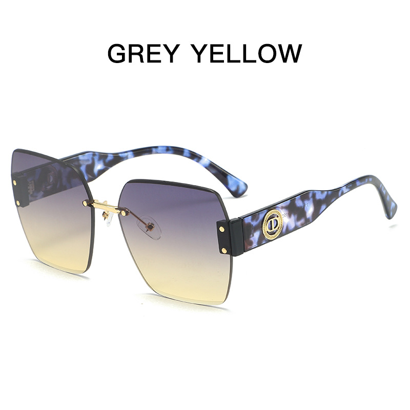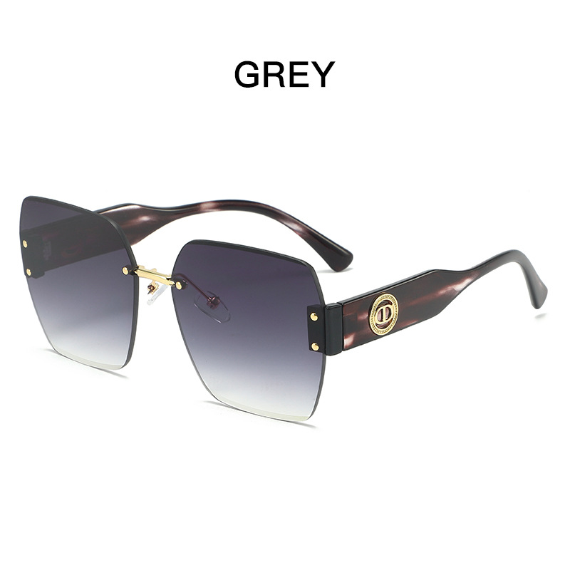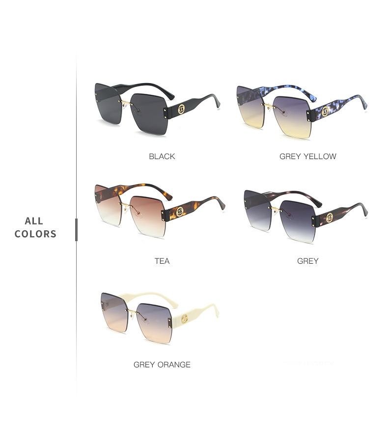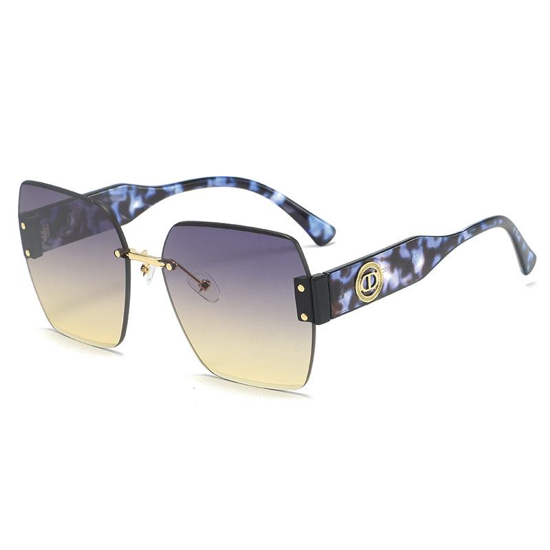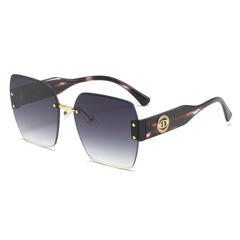 新款时尚潮流高级感无框太阳镜男女士墨镜防紫外线大框切边太阳镜