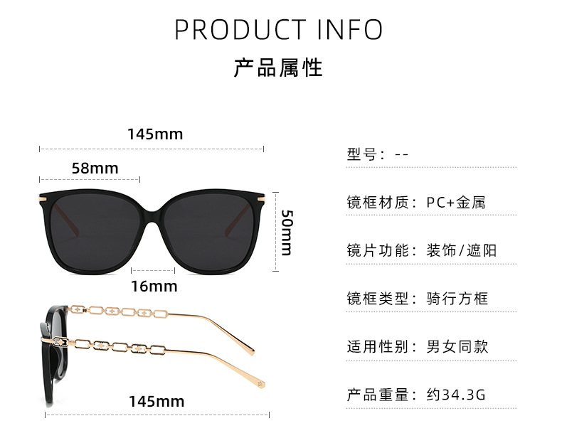 新款女墨镜设计链条百搭网红同款高级感工厂跨境男遮阳眼镜太阳镜
