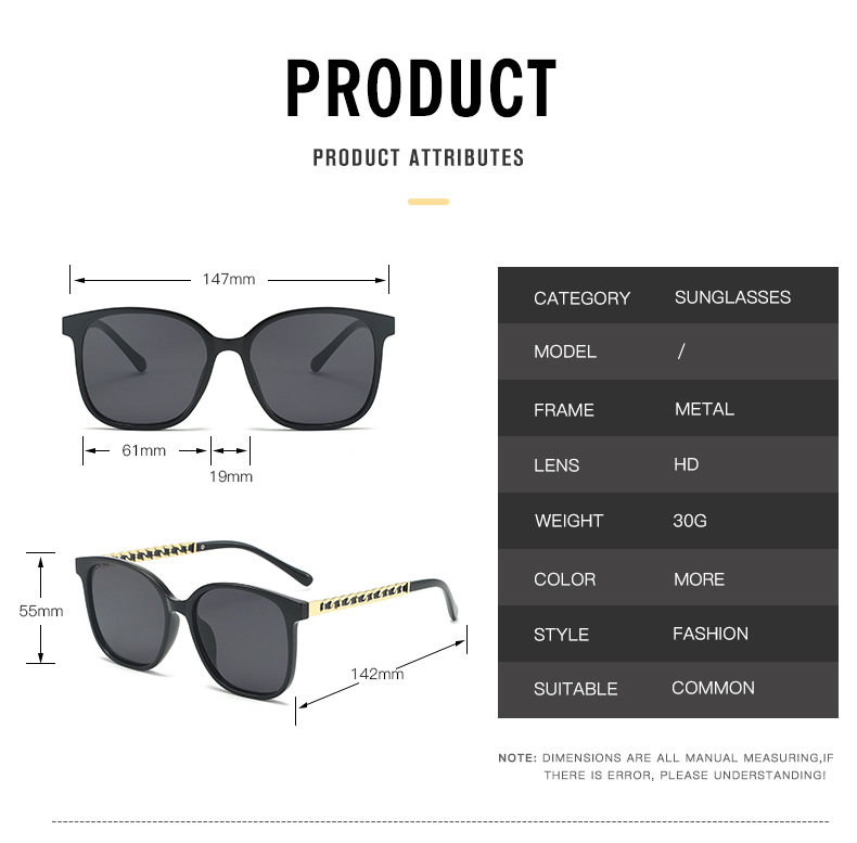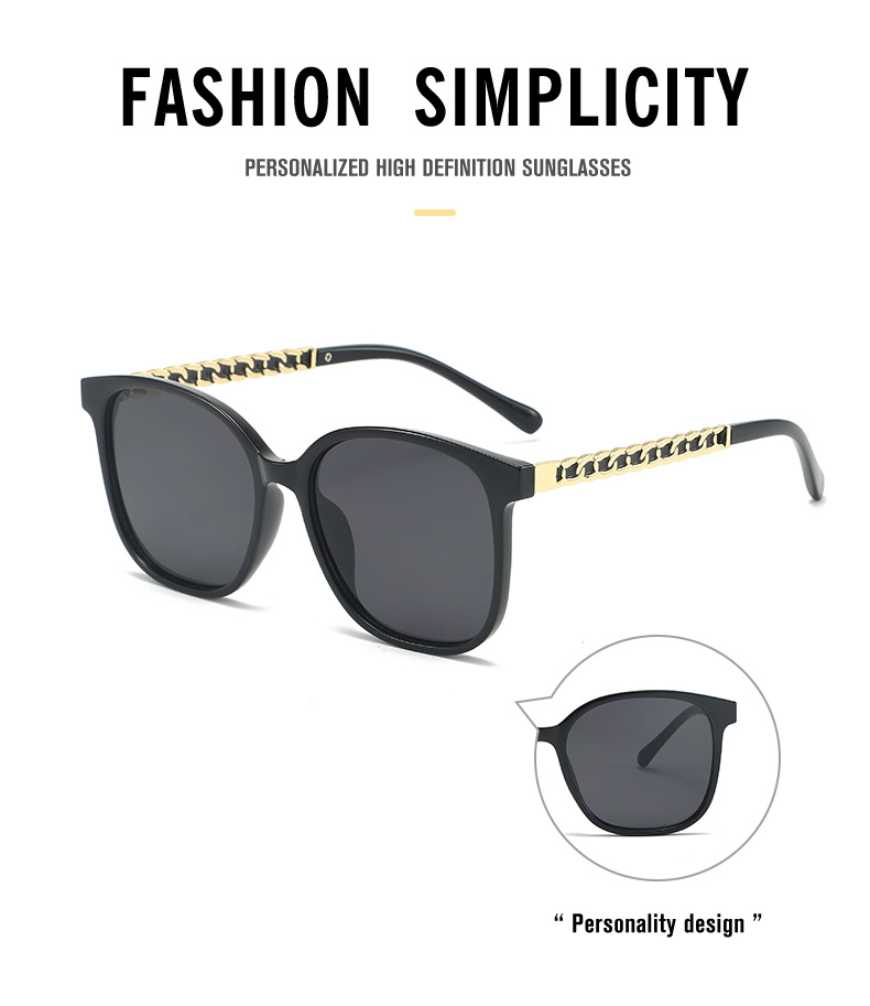跨境新款小香风墨镜女高级感ins网红款防晒太阳镜大方框圆脸显瘦