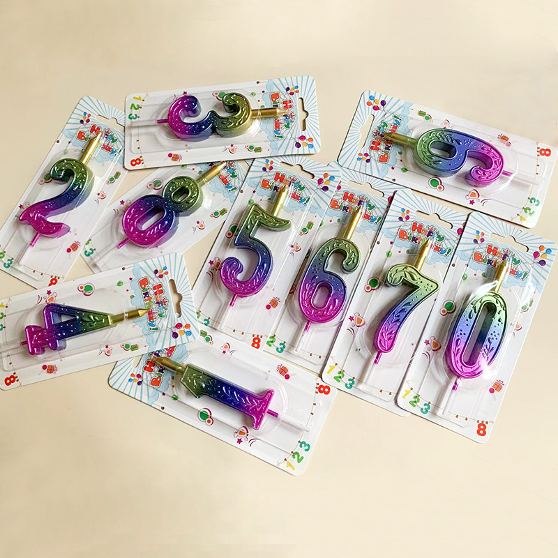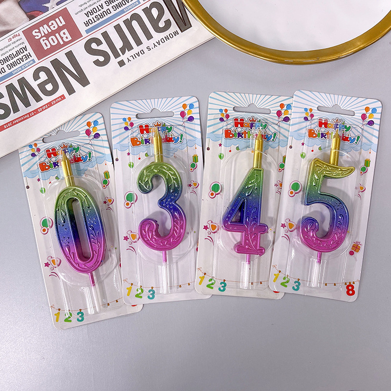 跨境彩色复古渐变数字蜡烛婚礼宴会周岁0-9蛋糕装饰摆件生日蜡烛