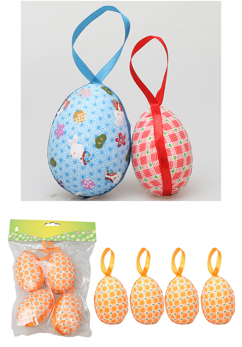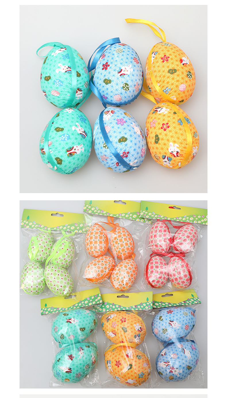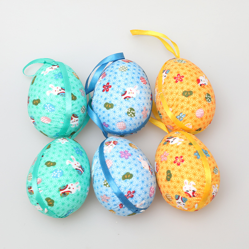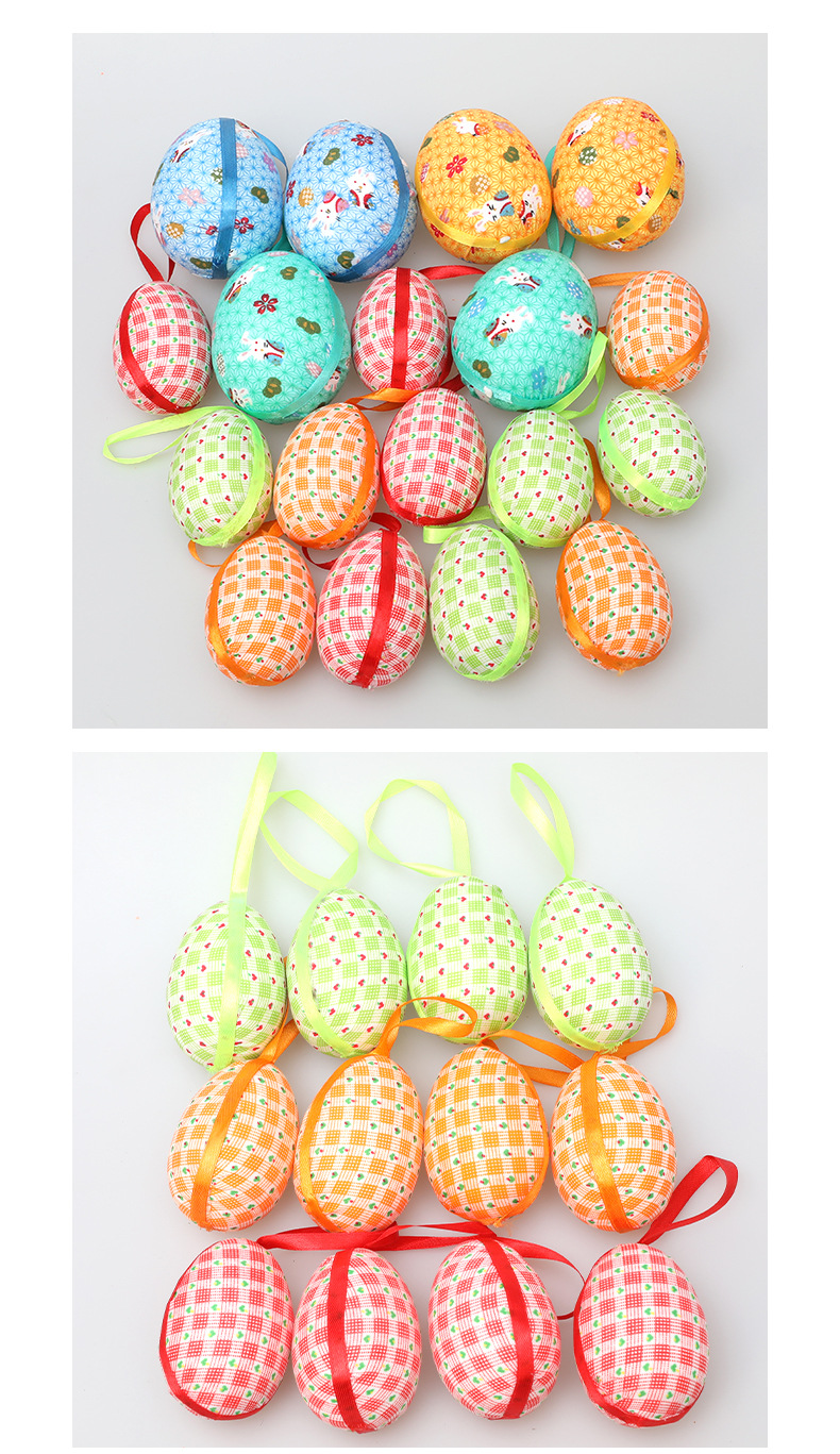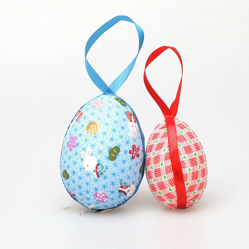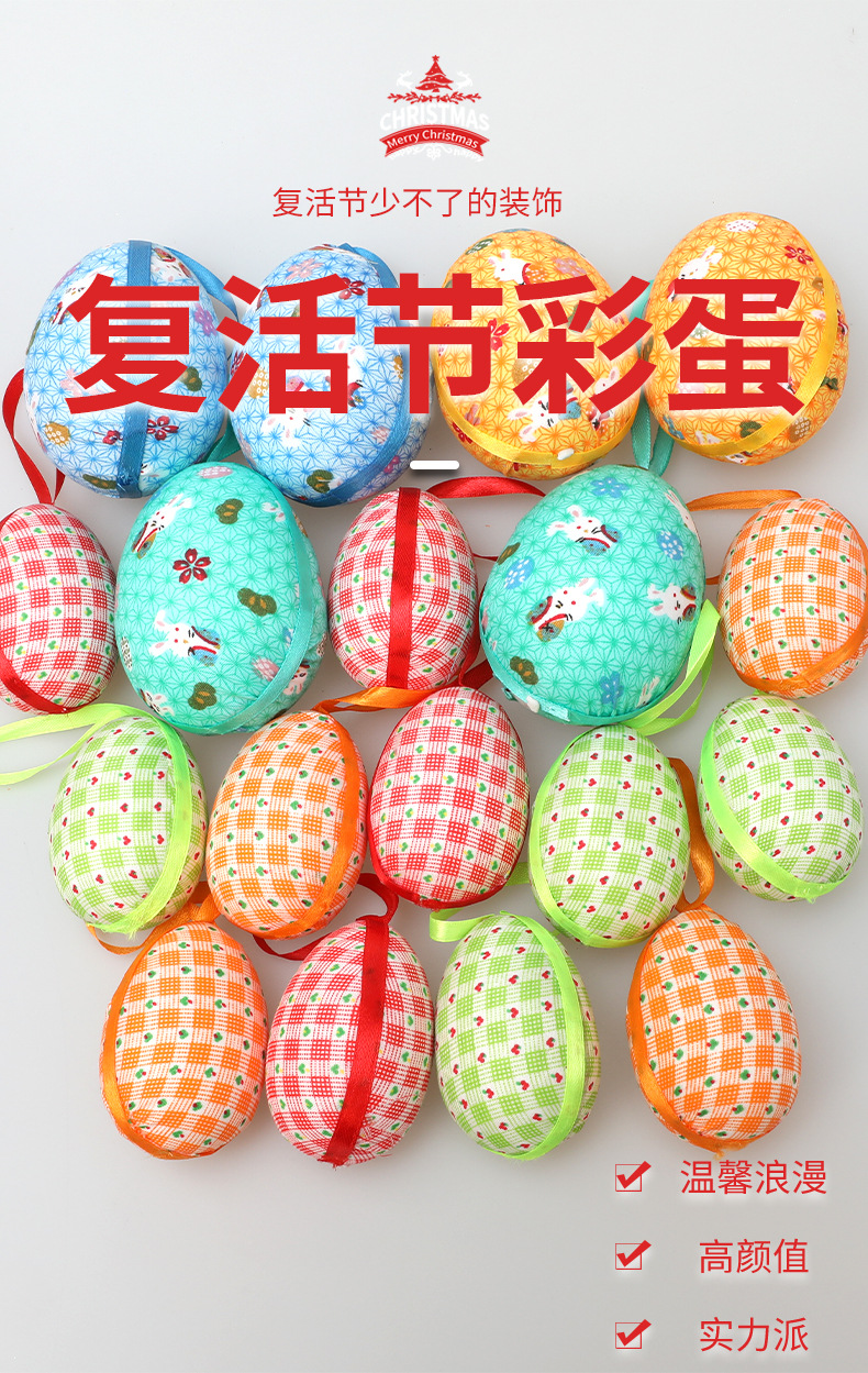 跨境亚马逊 复活节彩蛋 泡沫彩色花布蛋形装饰仿真鸡蛋装饰挂件