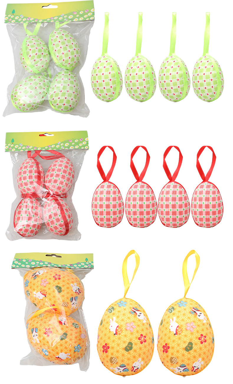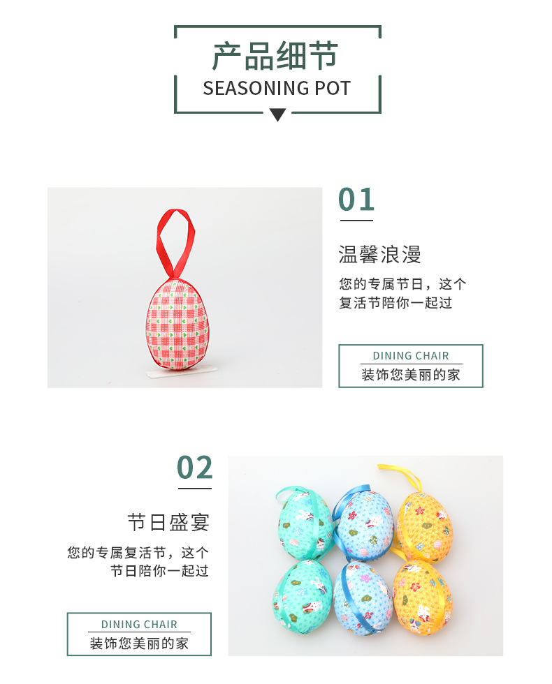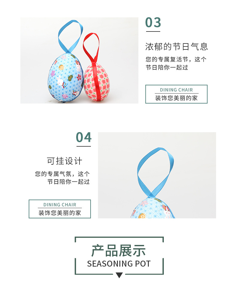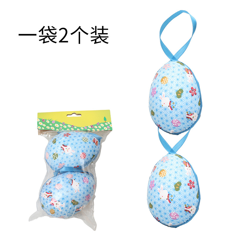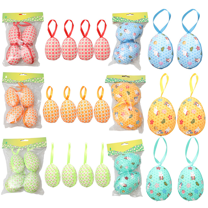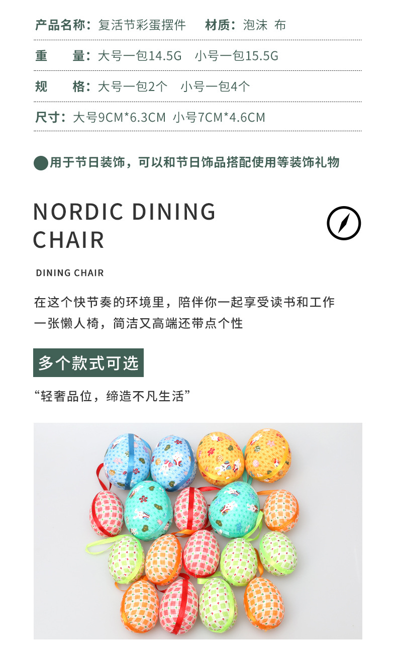 跨境亚马逊 复活节彩蛋 泡沫彩色花布蛋形装饰仿真鸡蛋装饰挂件