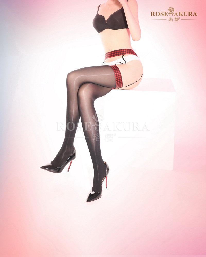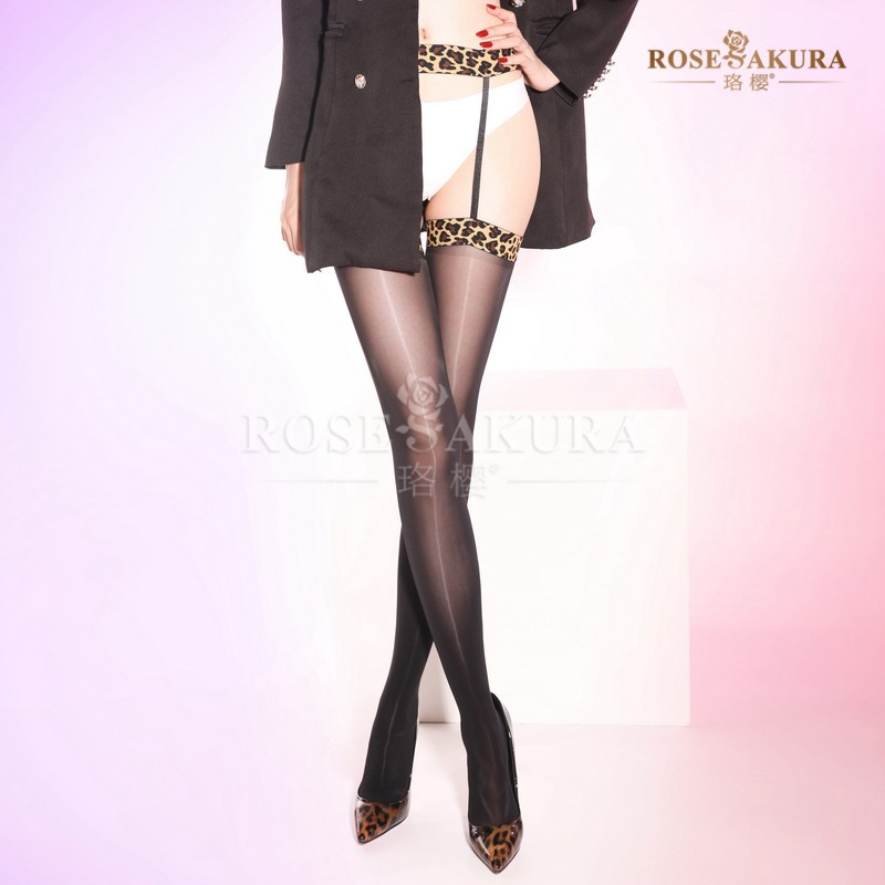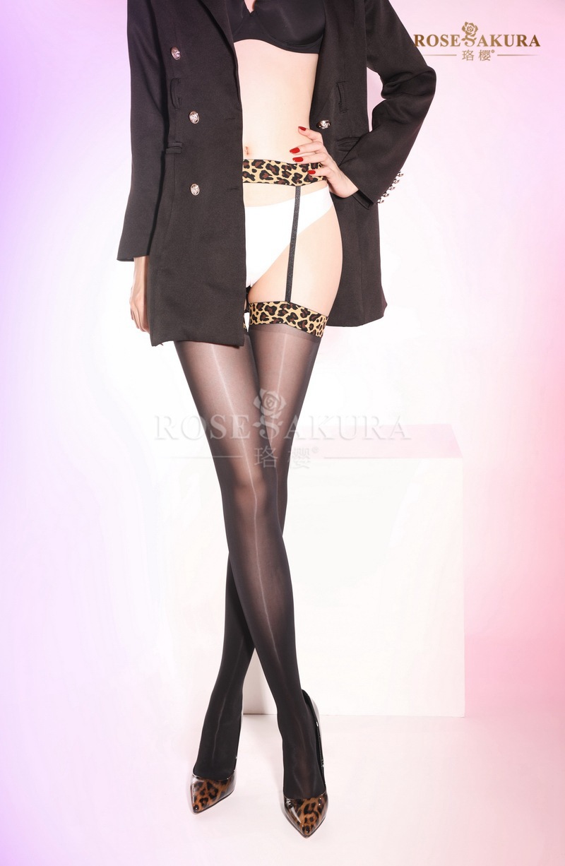 珞樱8330野性豹纹极光吊带袜马油滑性感油亮长筒黑丝女超薄大腿袜