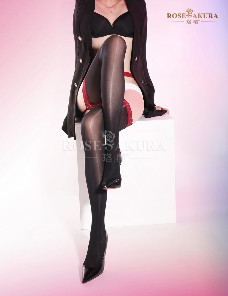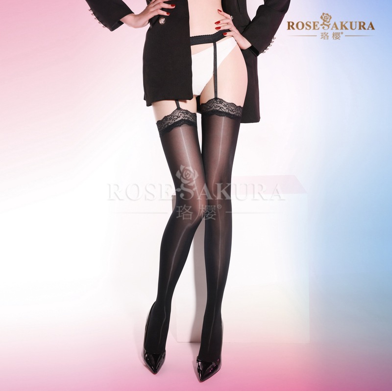 珞樱8328蕾丝撞色极光吊带袜马油滑性感油亮长筒黑丝女超薄大腿袜