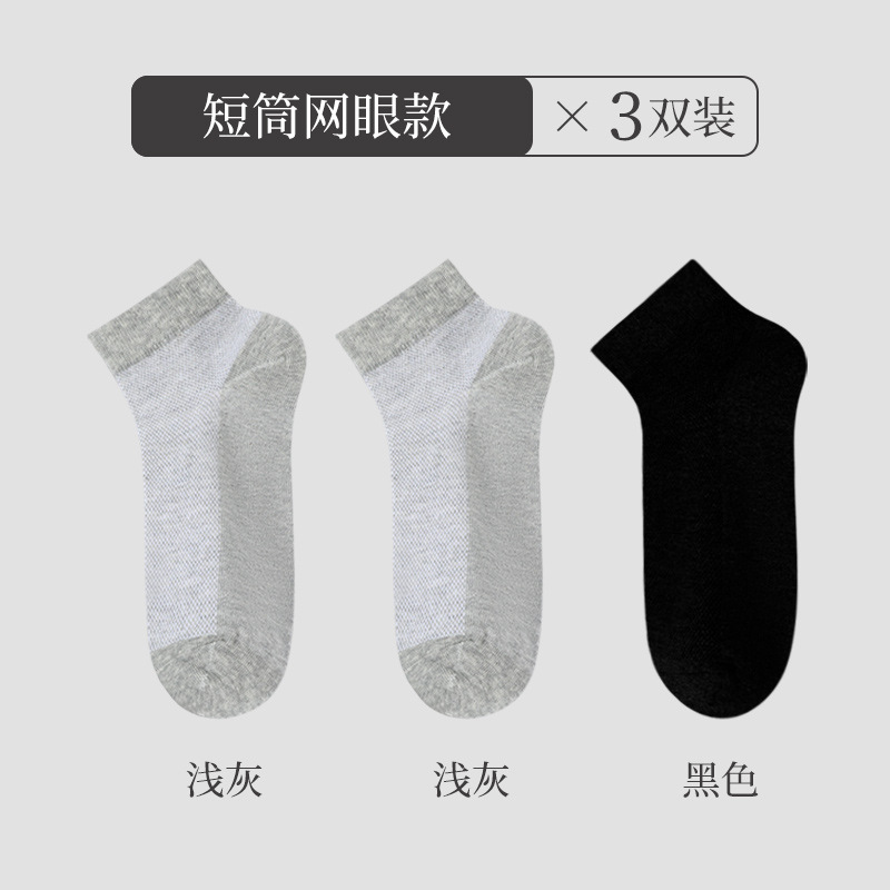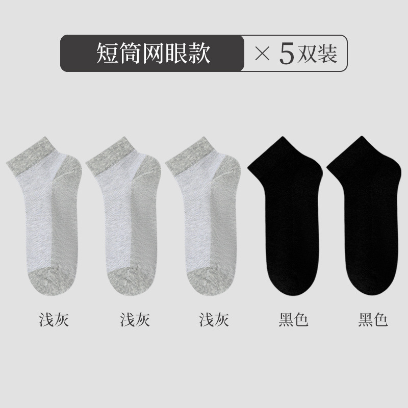 浪莎袜子男士防臭吸汗纯棉短袜春夏季薄款网眼透气纯色夏天船袜男