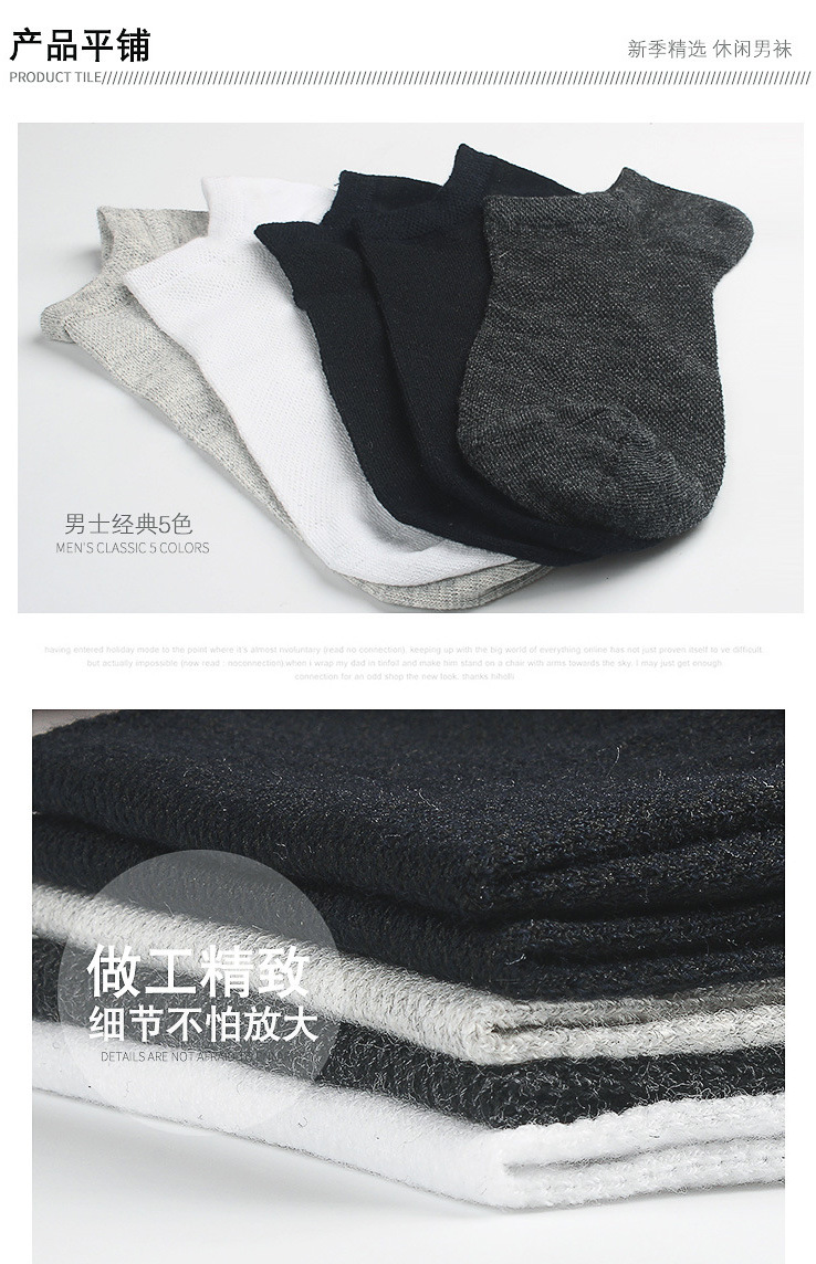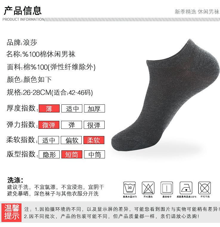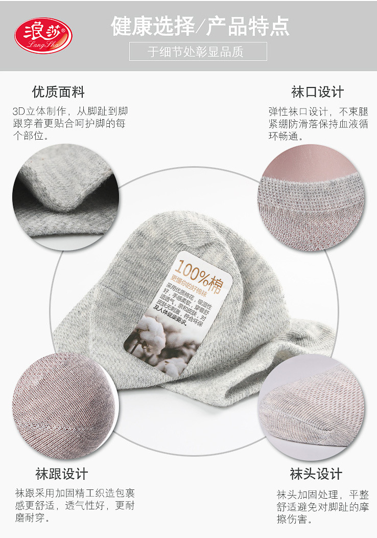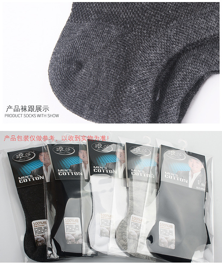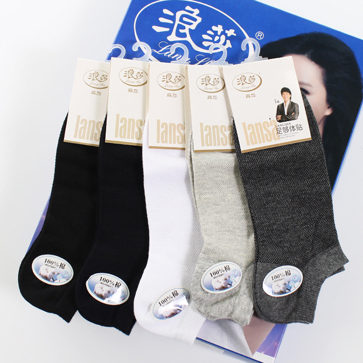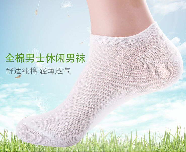 浪莎男网眼船袜100纯棉薄款透气夏季男式短袜子纯棉夏袜男薄隐形