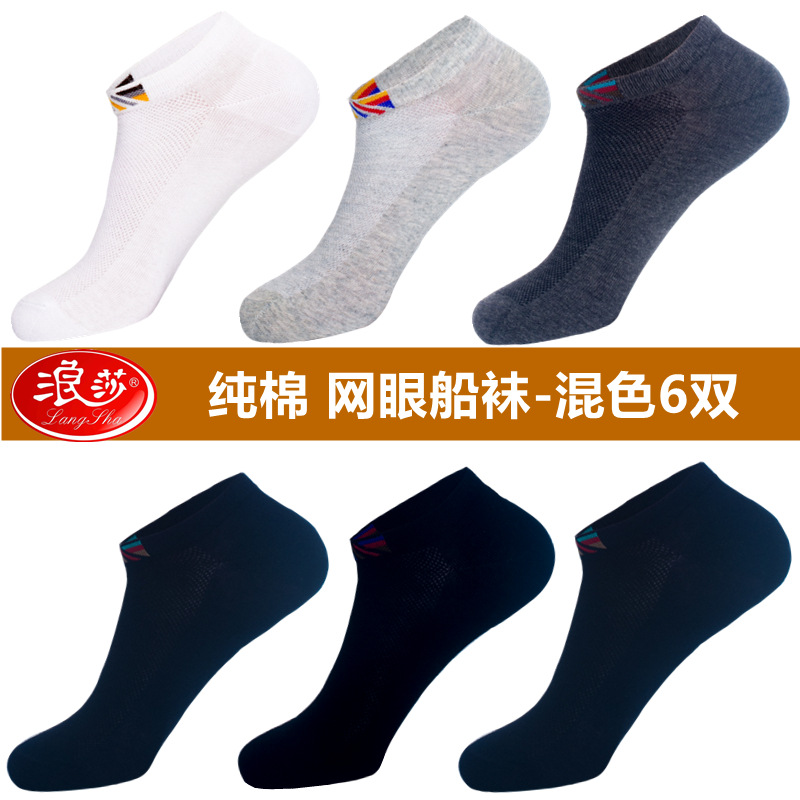 浪莎男士纯棉船袜夏季网眼薄款低帮男袜防臭吸汗休闲透气运动短袜
