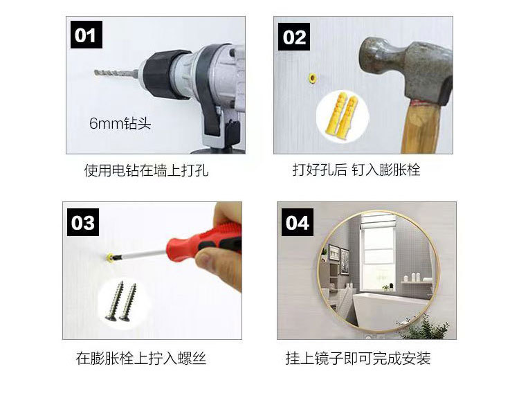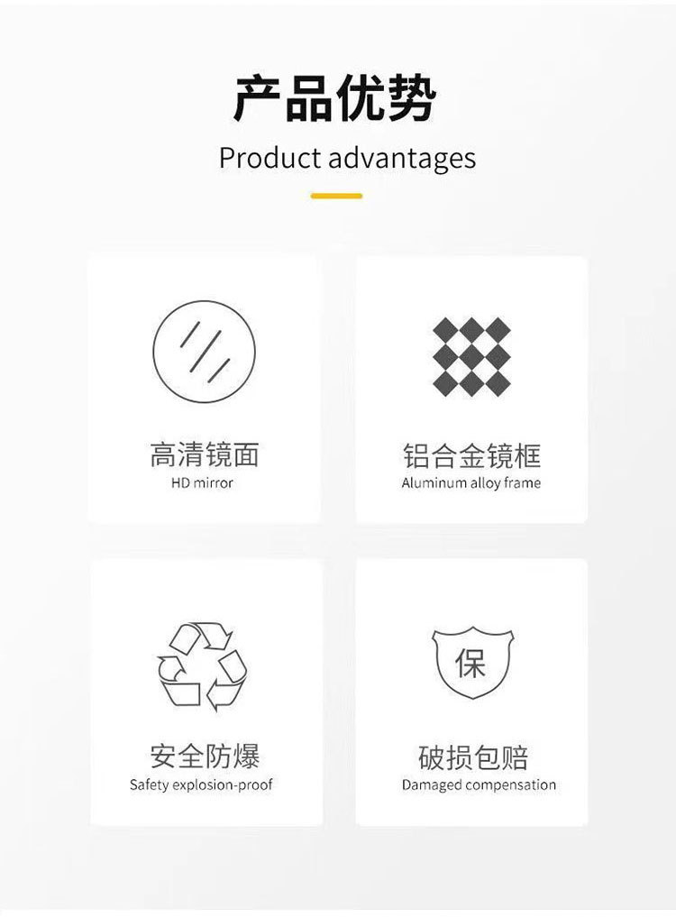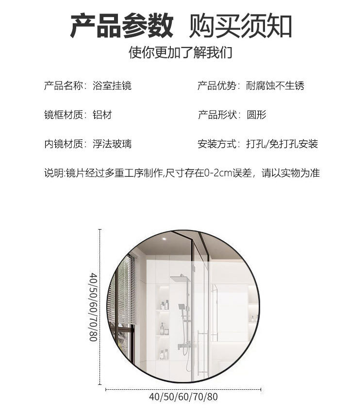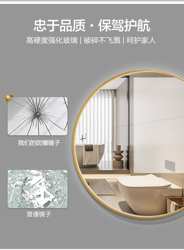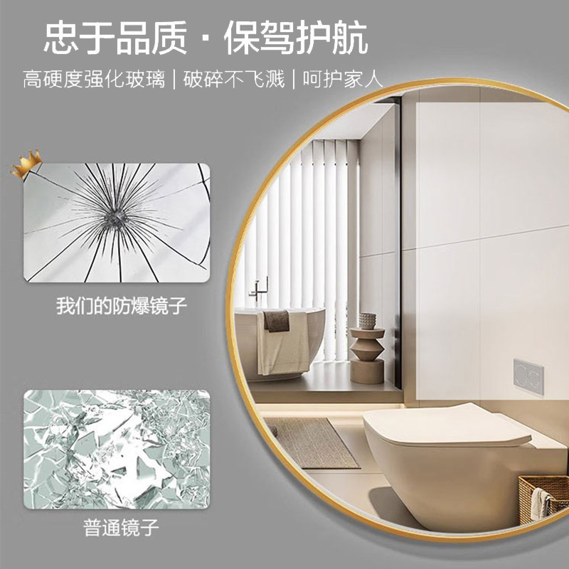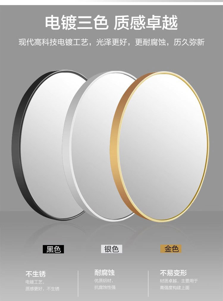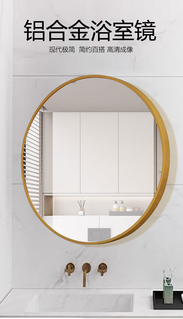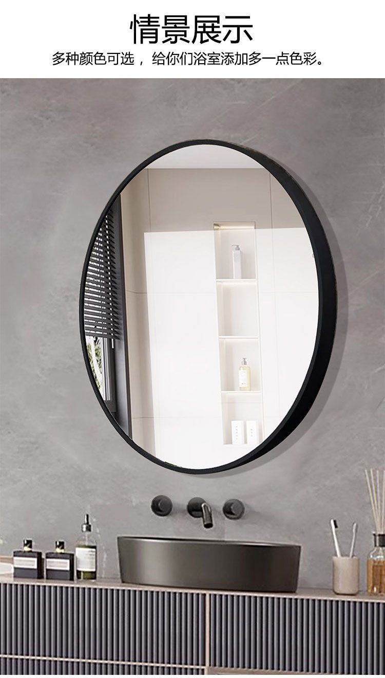 铝合金圆形浴室镜壁挂卫生间化妆镜子带边框酒店卫浴装饰补妆镜子