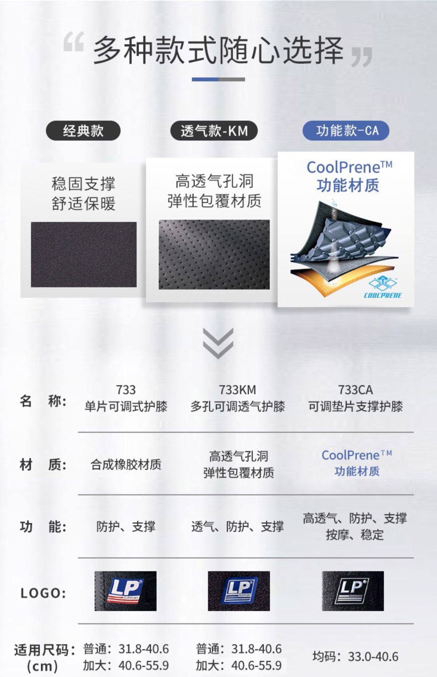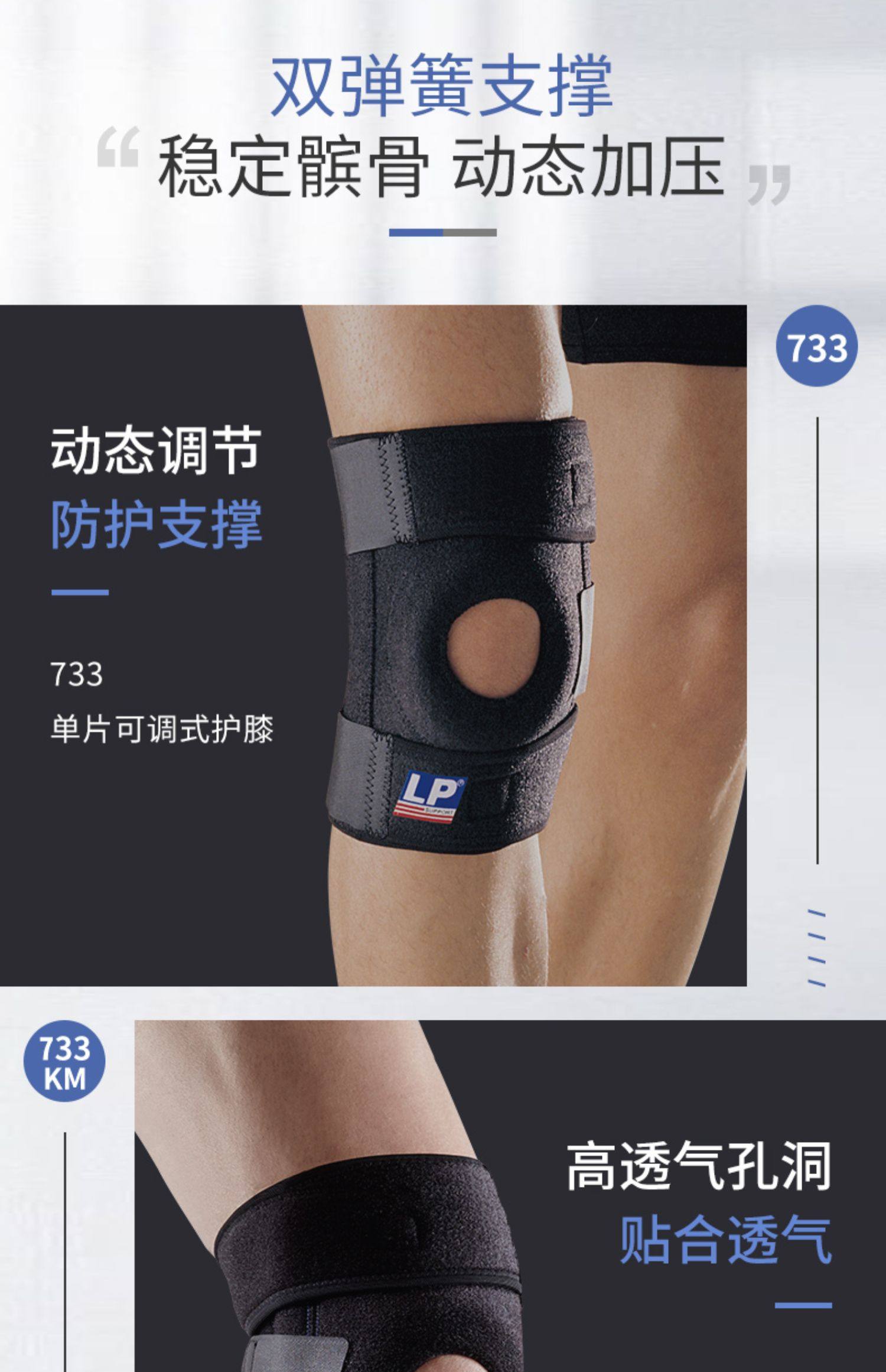 LP 733 KM CA 双弹簧支撑型护膝 网排足篮羽毛球运动半月板护具髌