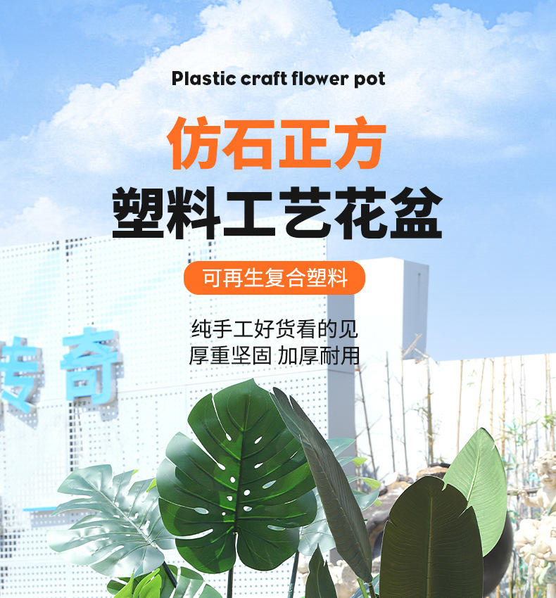 厂家直销简约仿石正方形塑料特大号花盆室内庭院户外养花花盆批发