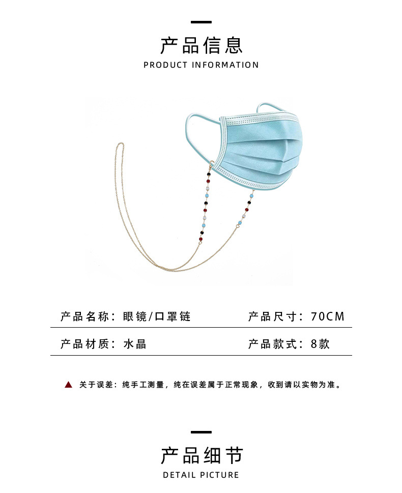 欧美跨境眼镜链 时尚简约显气质水晶太阳镜眼镜绳链ins小众口罩链