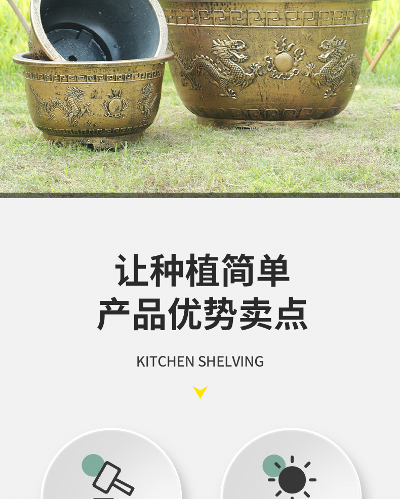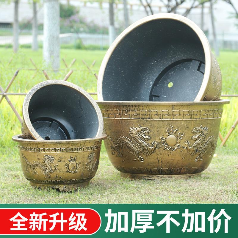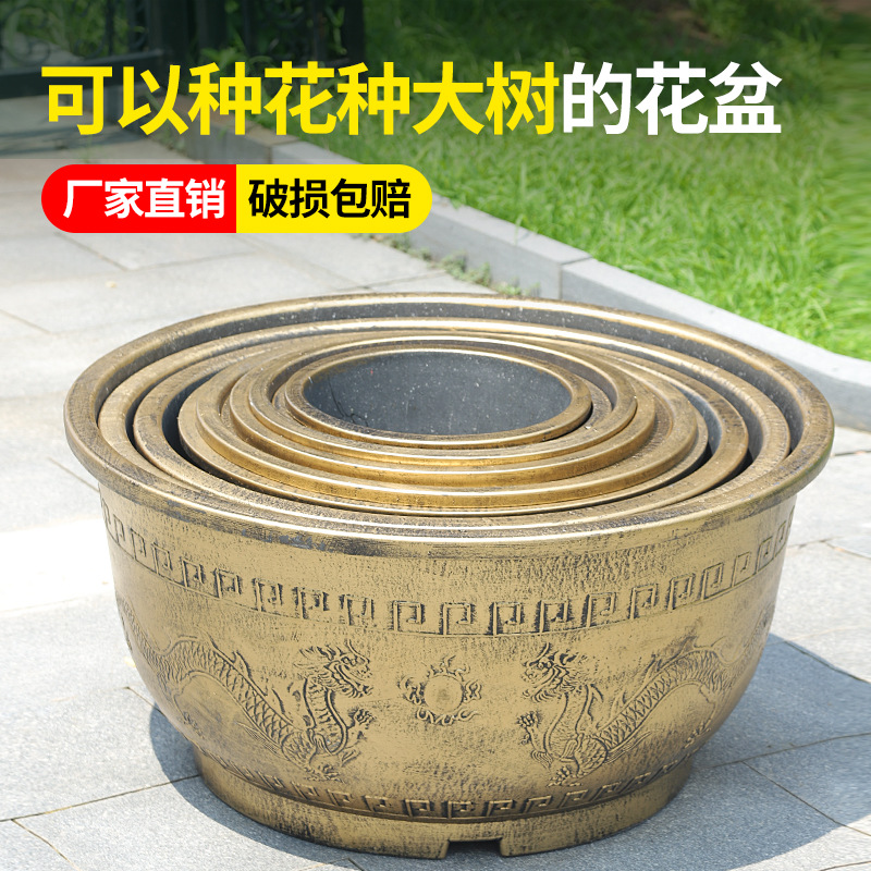 特大号塑料仿铜加厚防摔耐磨铁树龙缸盆阳台庭院种树花盆厂家批发