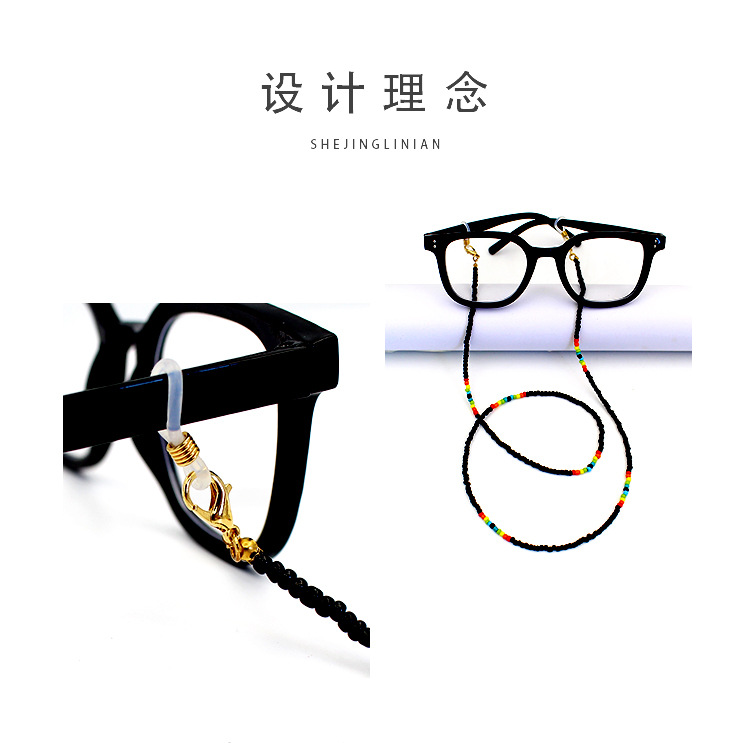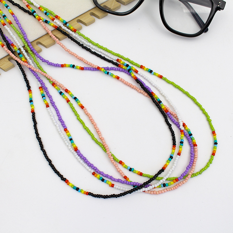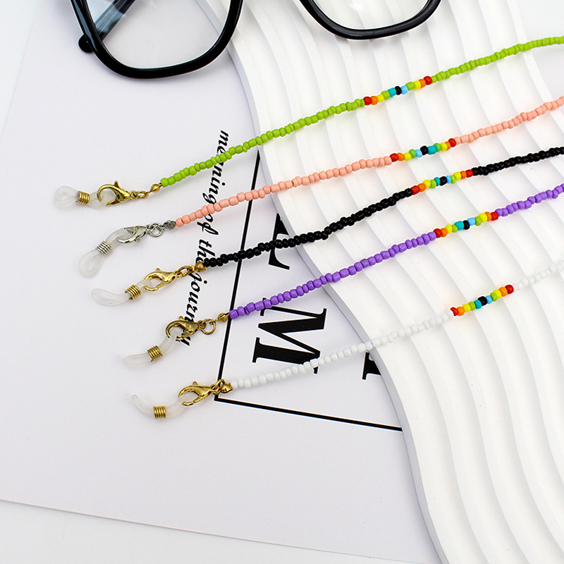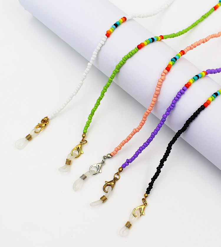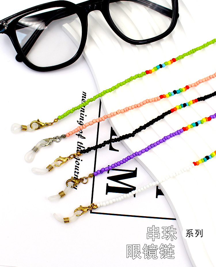 新款韩系眼镜挂绳ins彩色米珠串珠彩虹系列眼镜链女小众防滑挂链