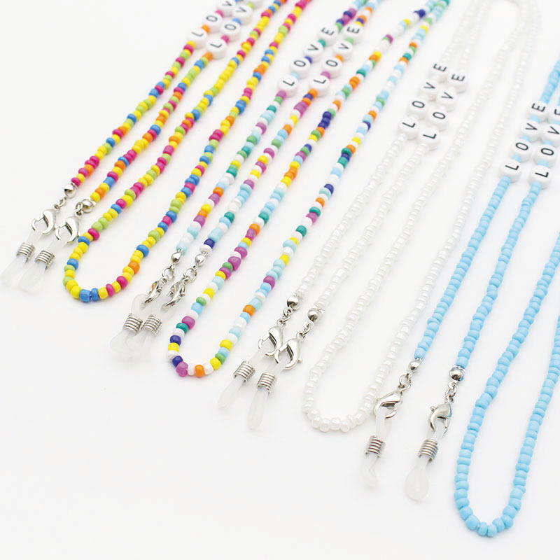 眼镜链新款字母链条绳带波西米亚彩色混搭项链女眼镜绳口罩链批发