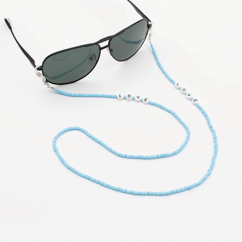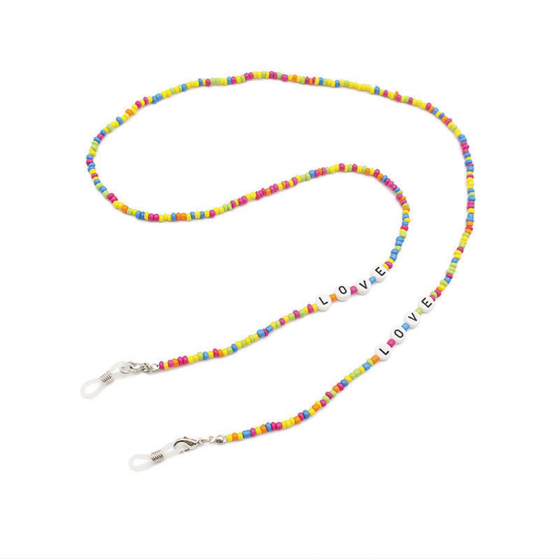 跨境欧美新款LOVE字母玻璃彩色防掉口罩眼镜链项链