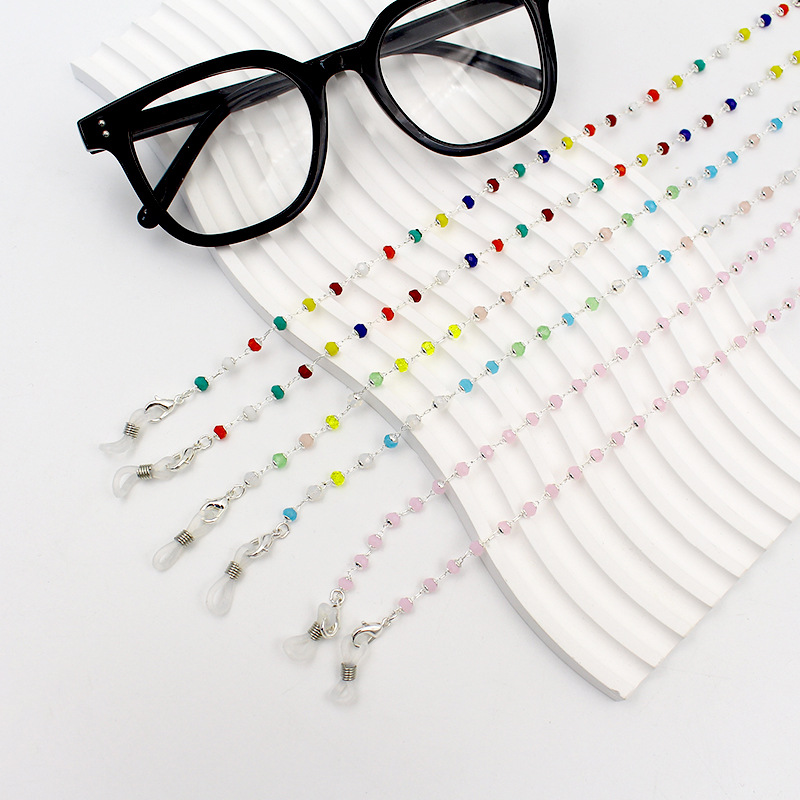新款眼镜链高级感韩系简约饰品挂件ins彩色水晶串珠女小众眼镜绳