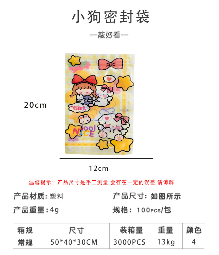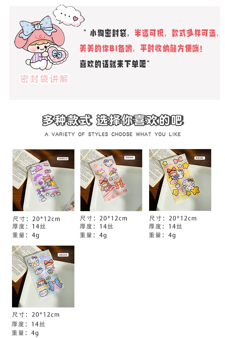 小红书可爱卡通小狗自封袋饰品零食礼物饼干口罩密封袋糖果自封袋