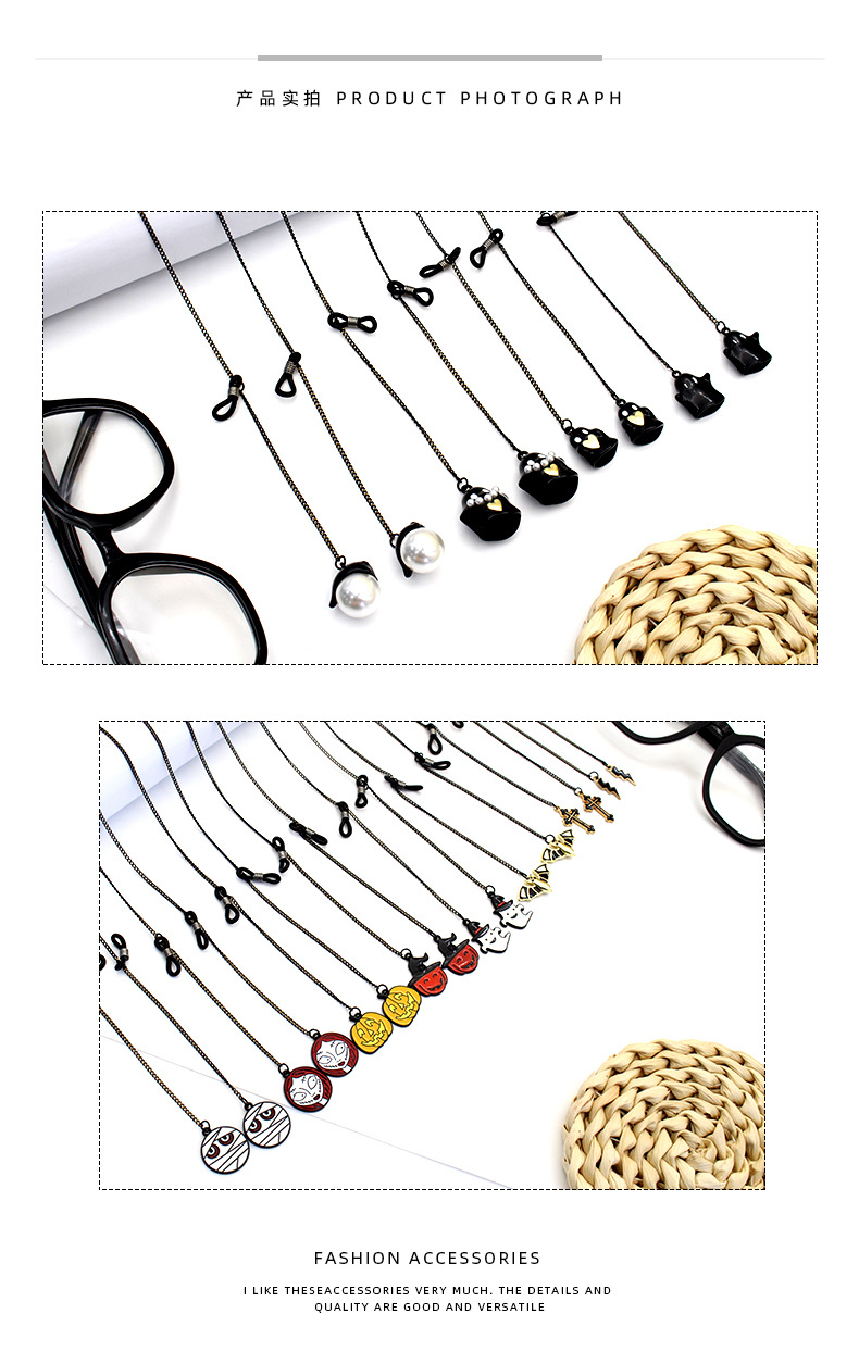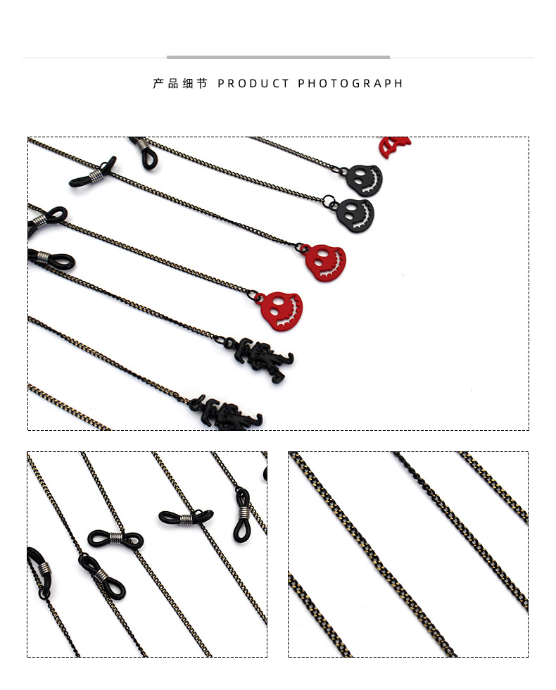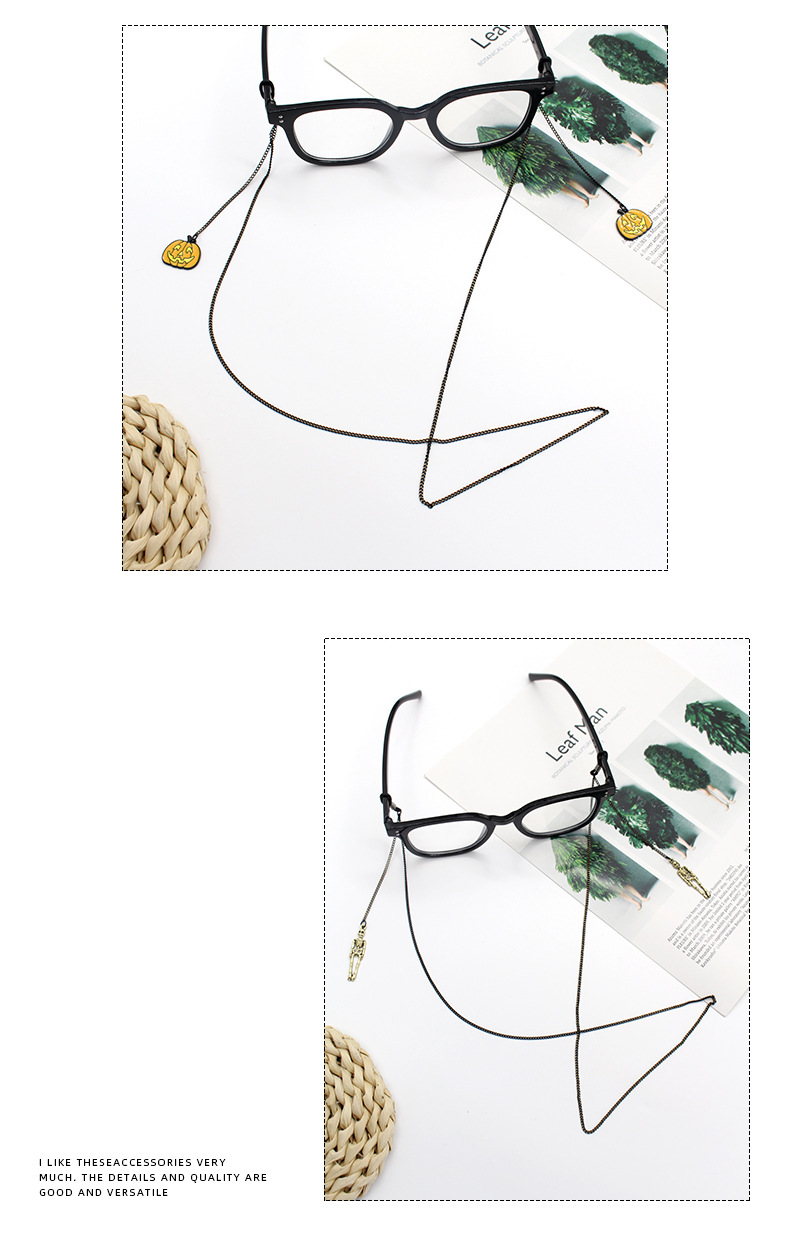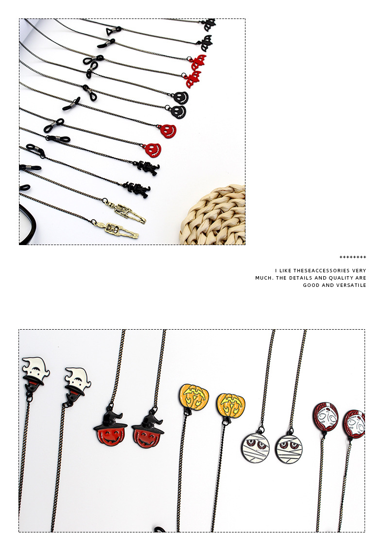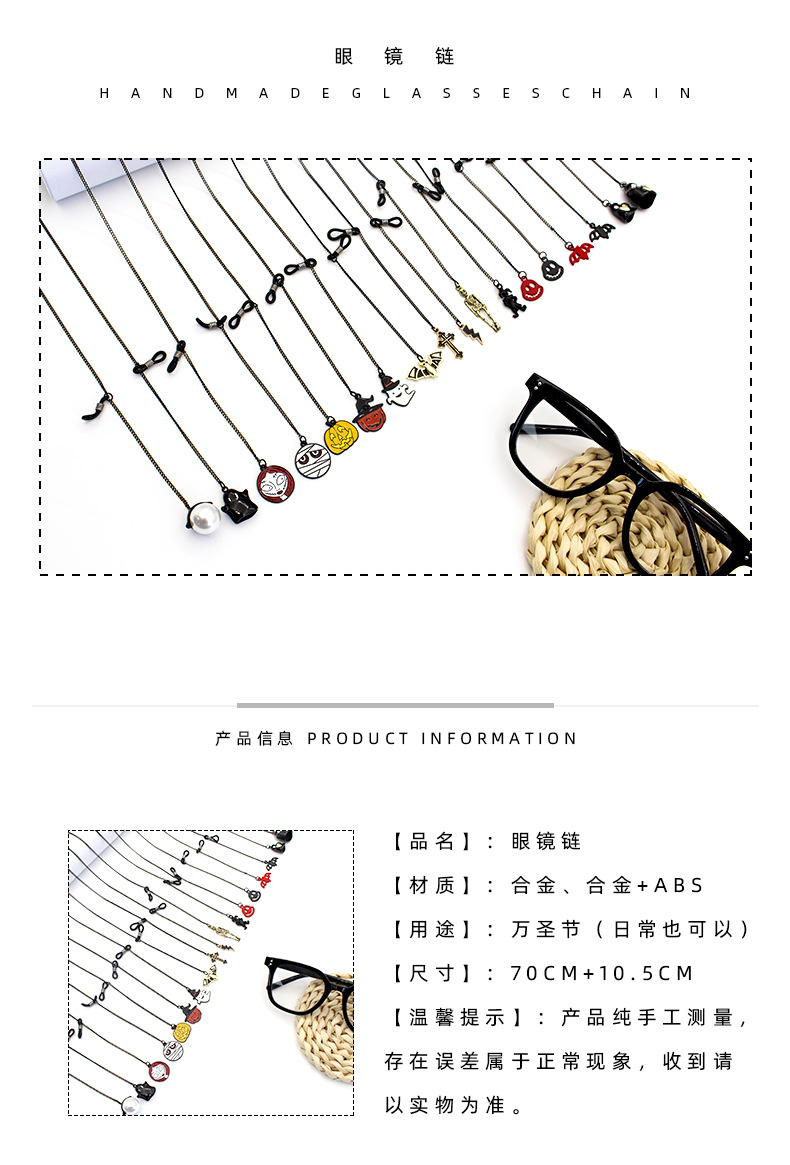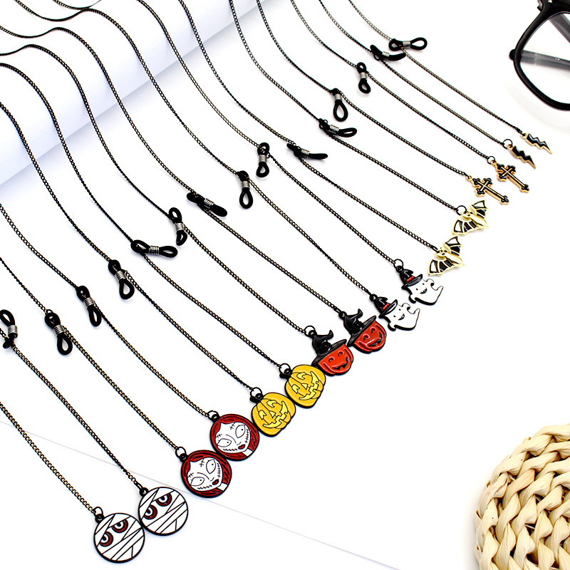 万圣节搞怪系列南瓜蝙蝠鬼脸骷髅幽灵等带吊坠防丢防滑个性眼镜链