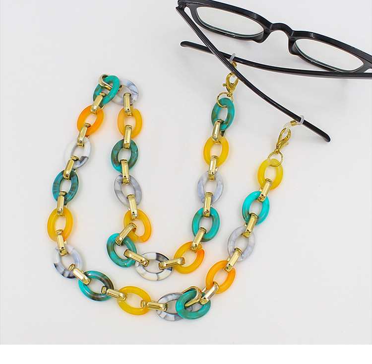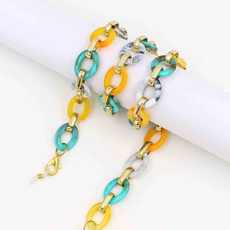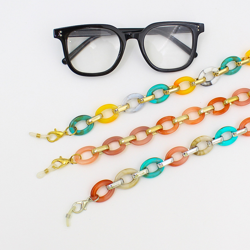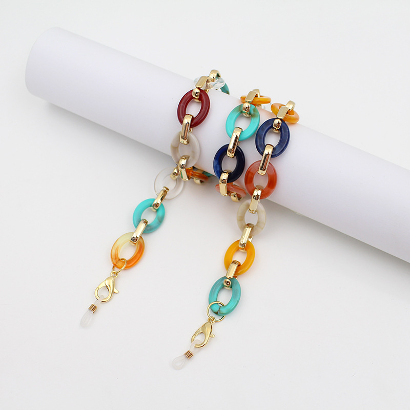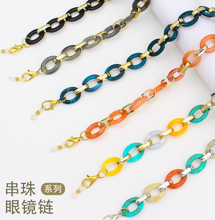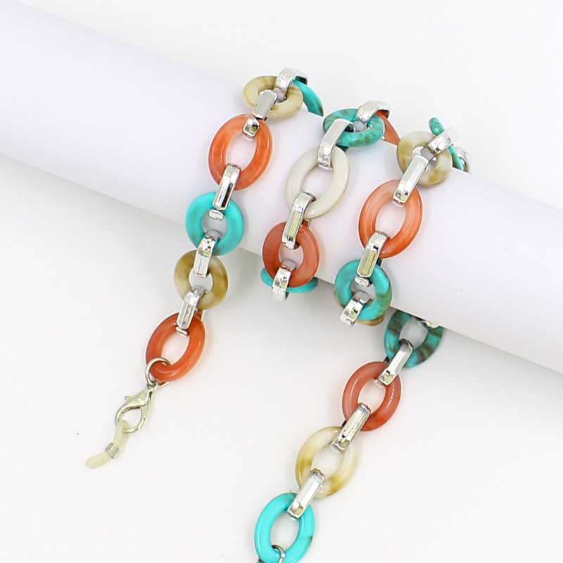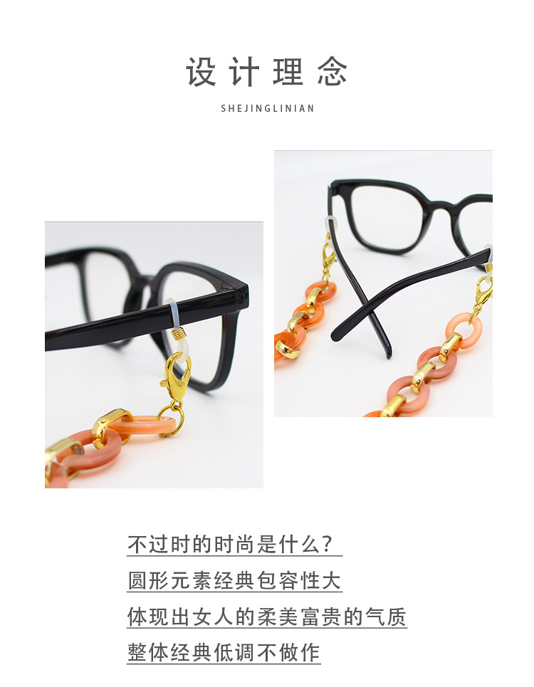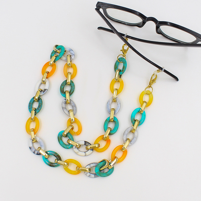 欧美风亚克力多色炫彩挂脖眼镜绳女ins环环相扣防丢眼镜链高级感