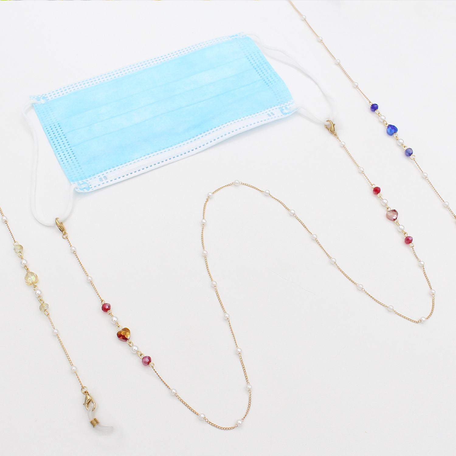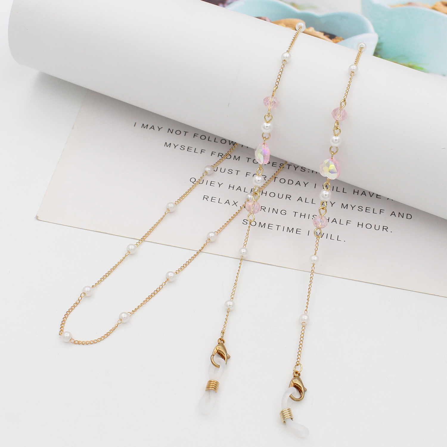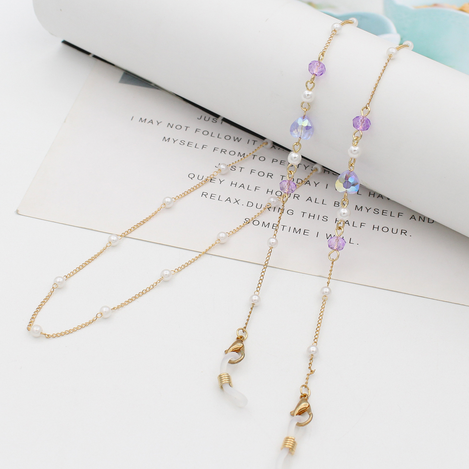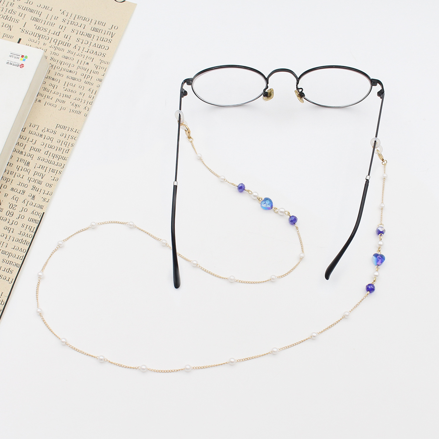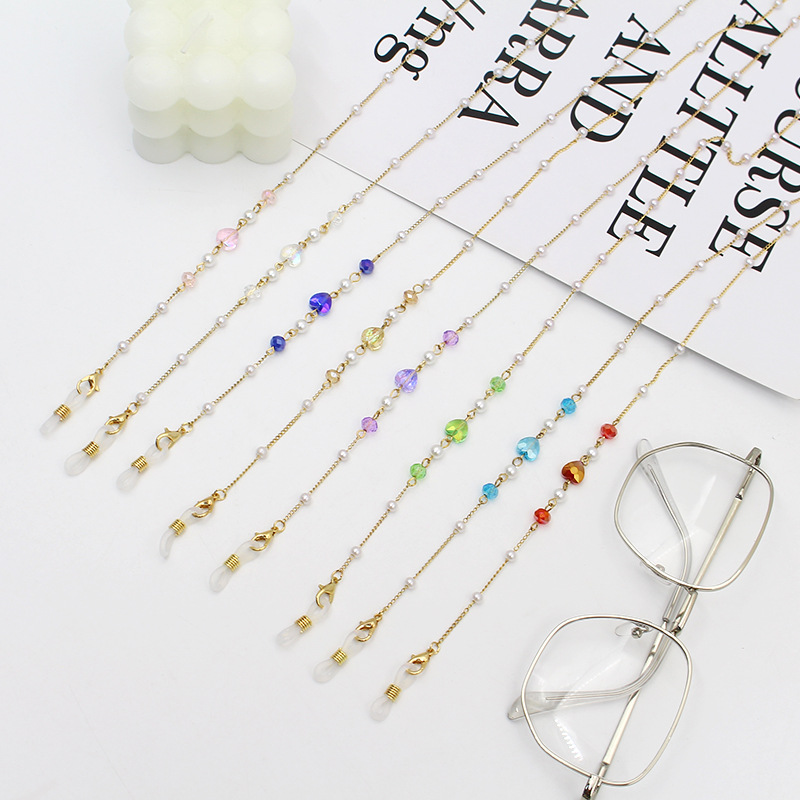 彩色爱心水晶串珠眼镜链饰品批发欧美外贸防丢高级感眼镜配饰