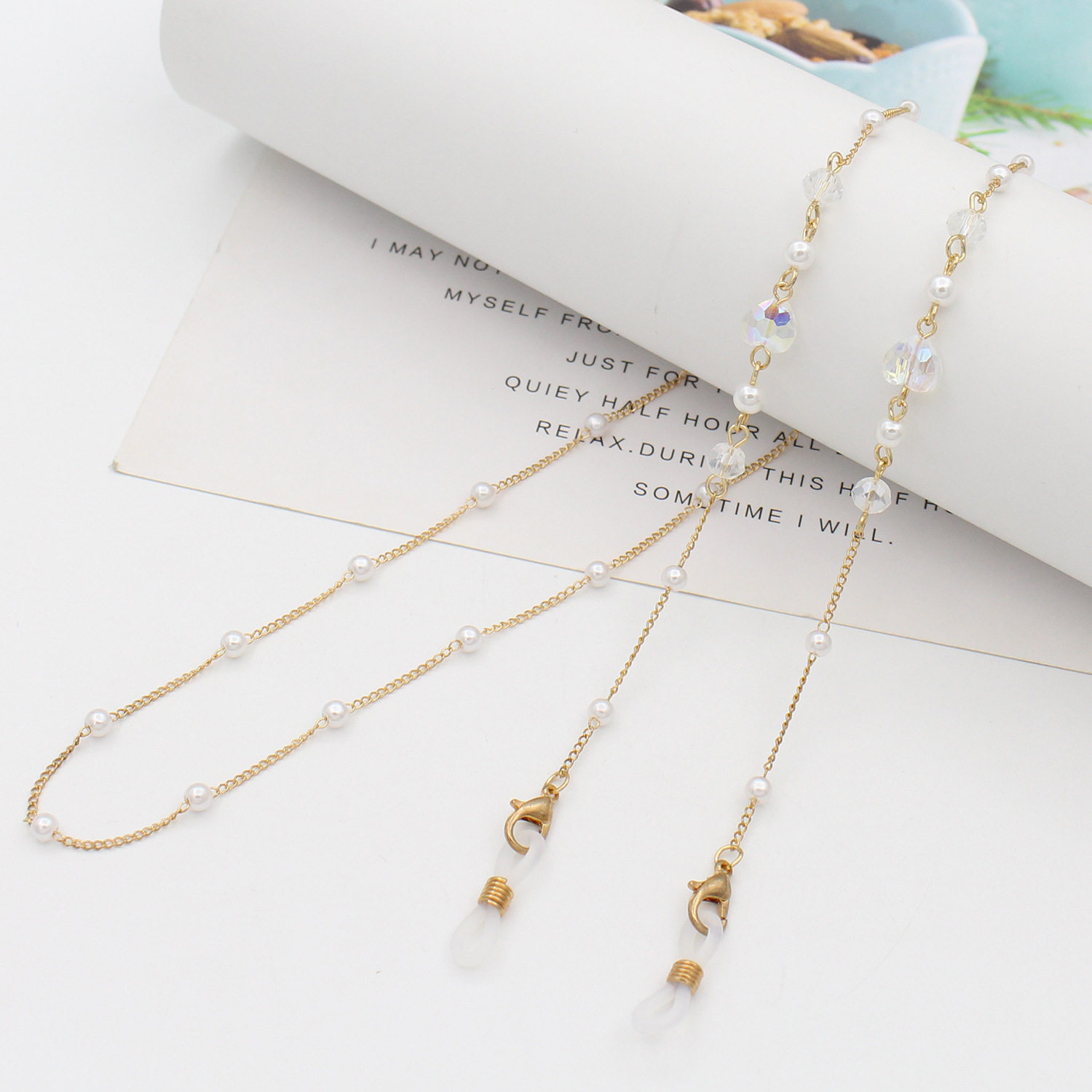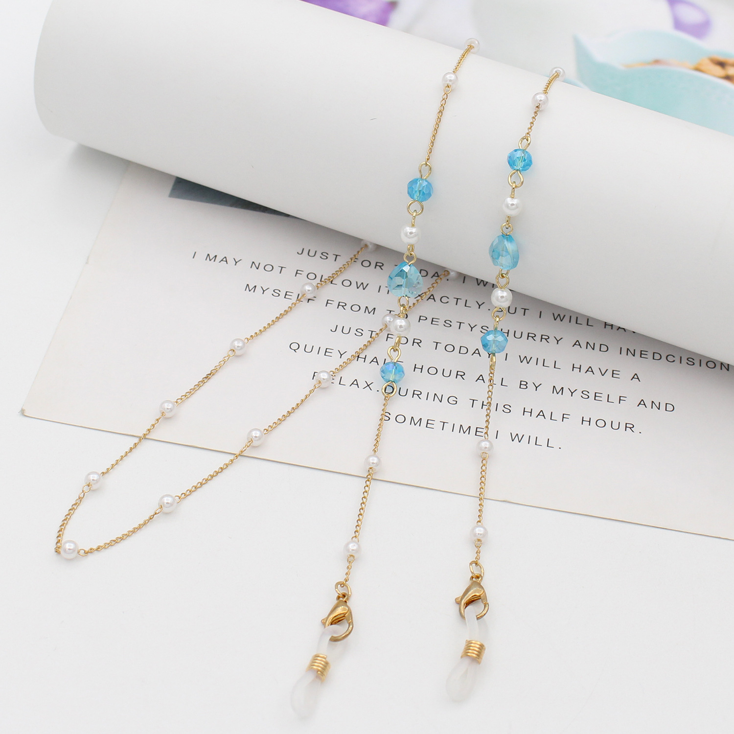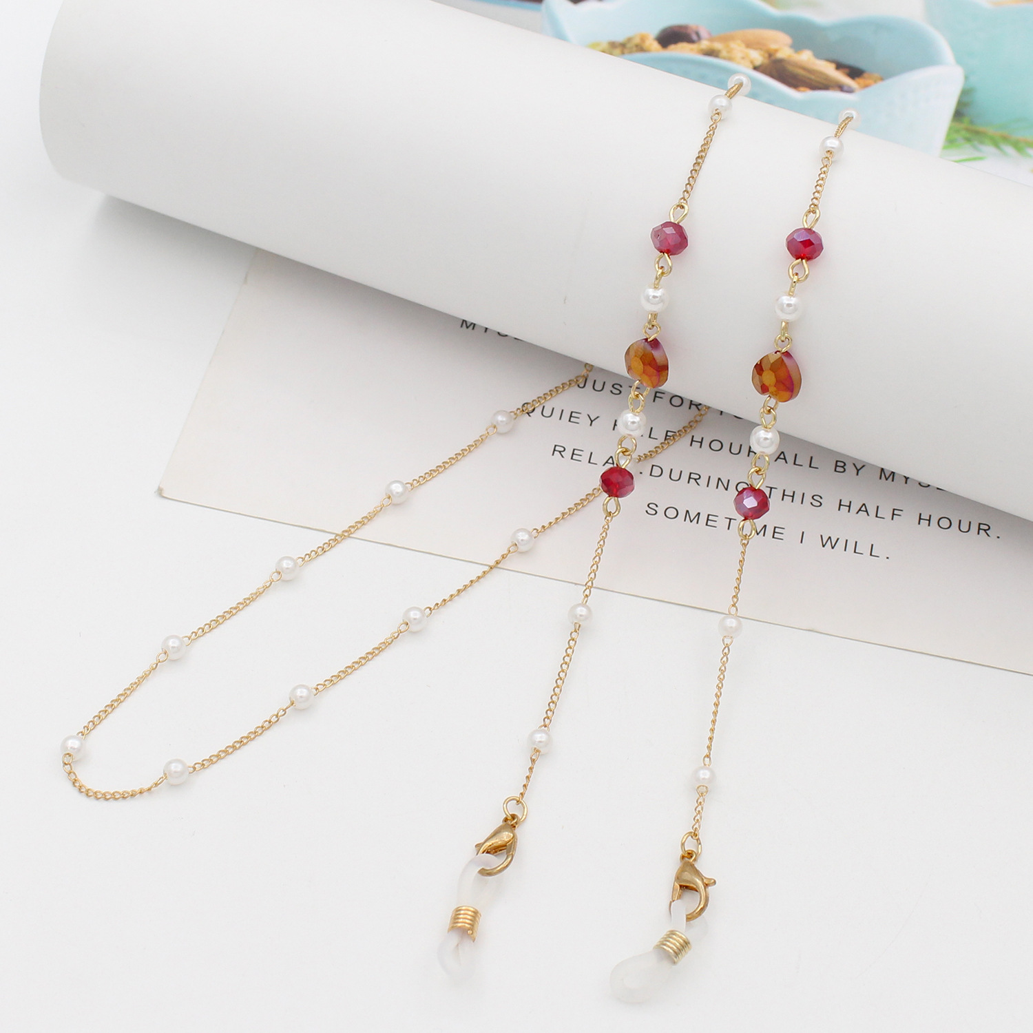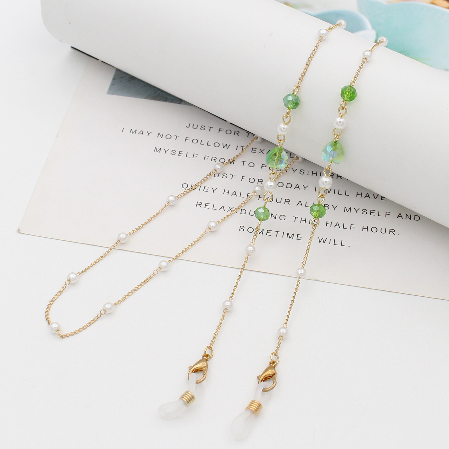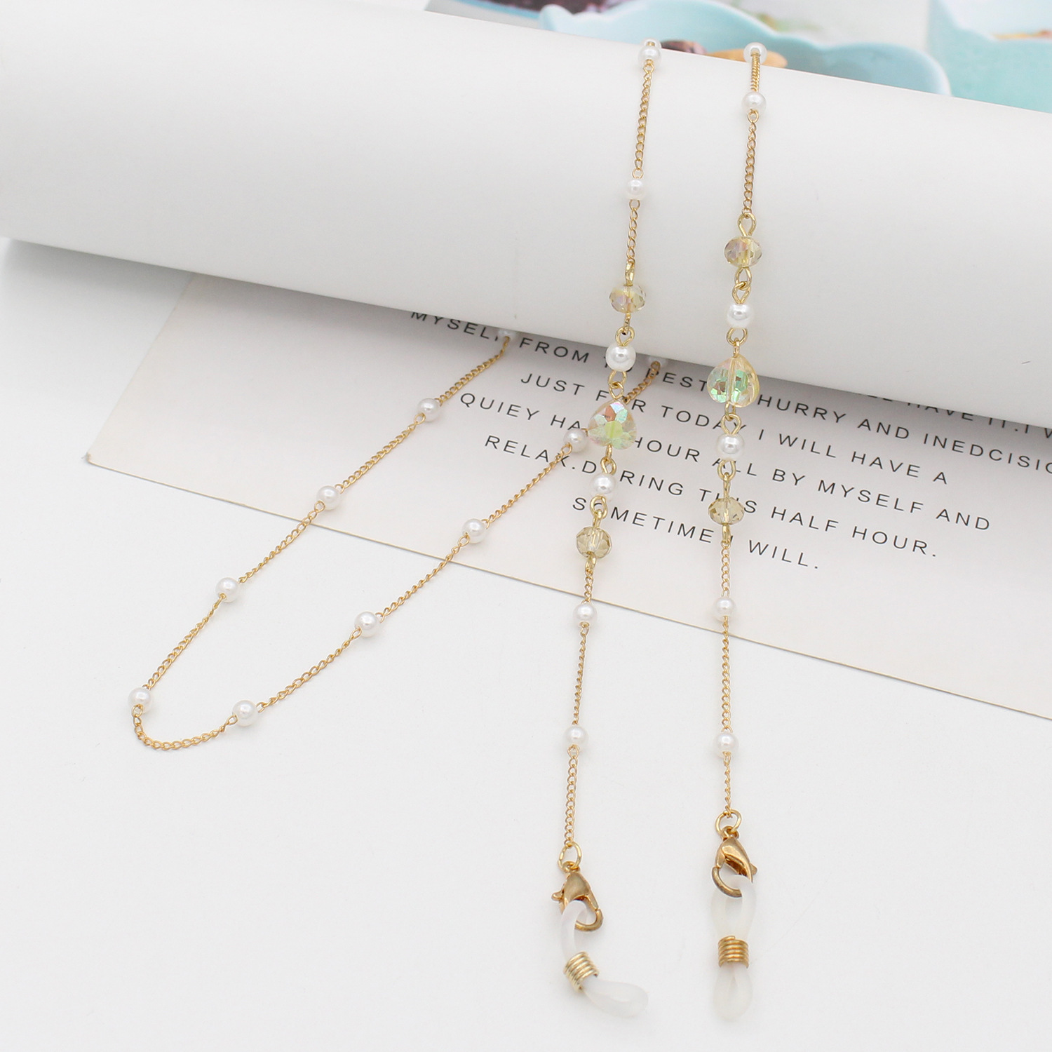 彩色爱心水晶串珠眼镜链饰品批发欧美外贸防丢高级感眼镜配饰
