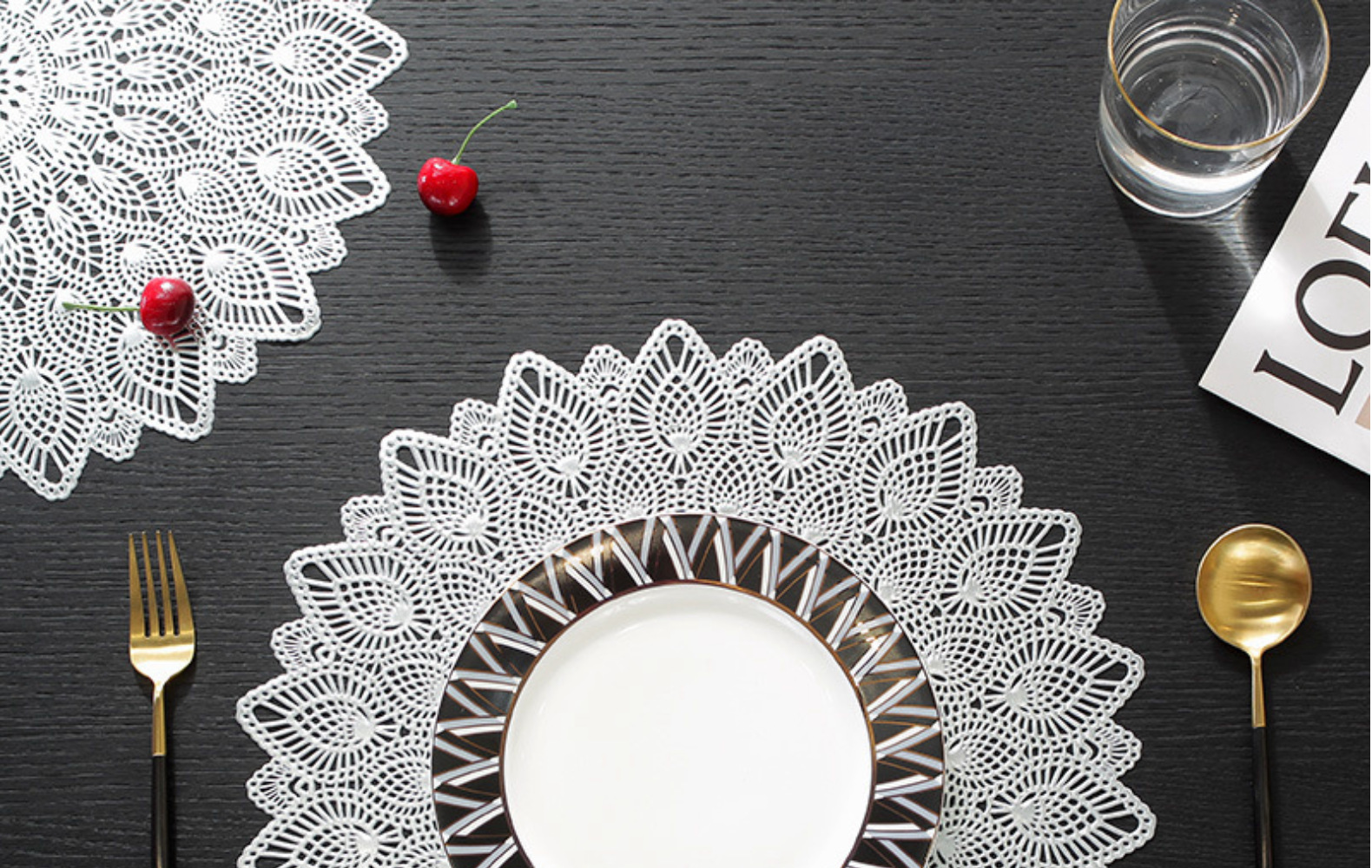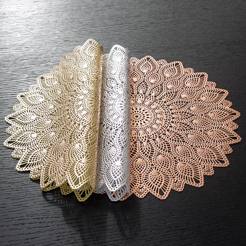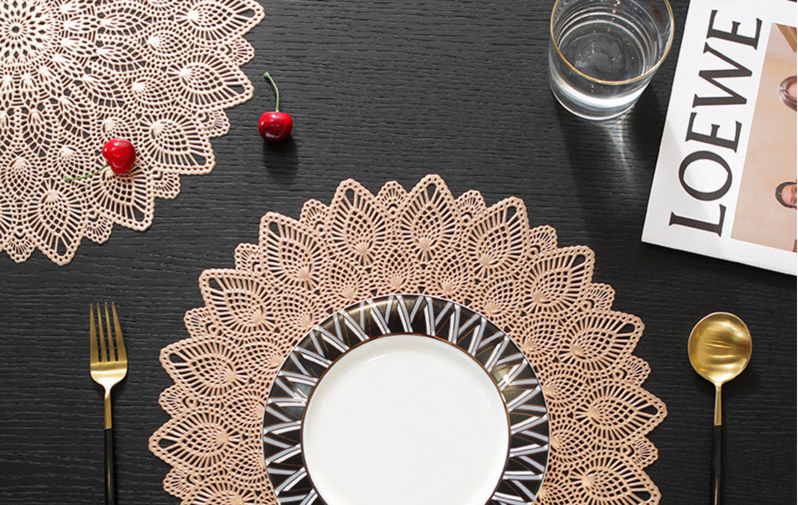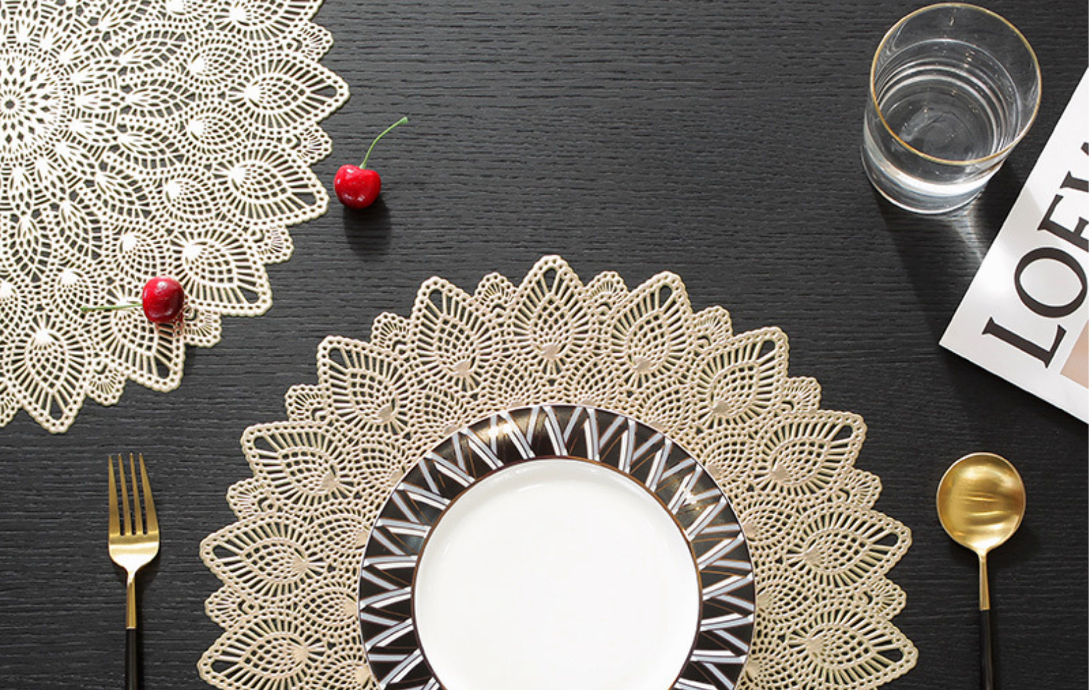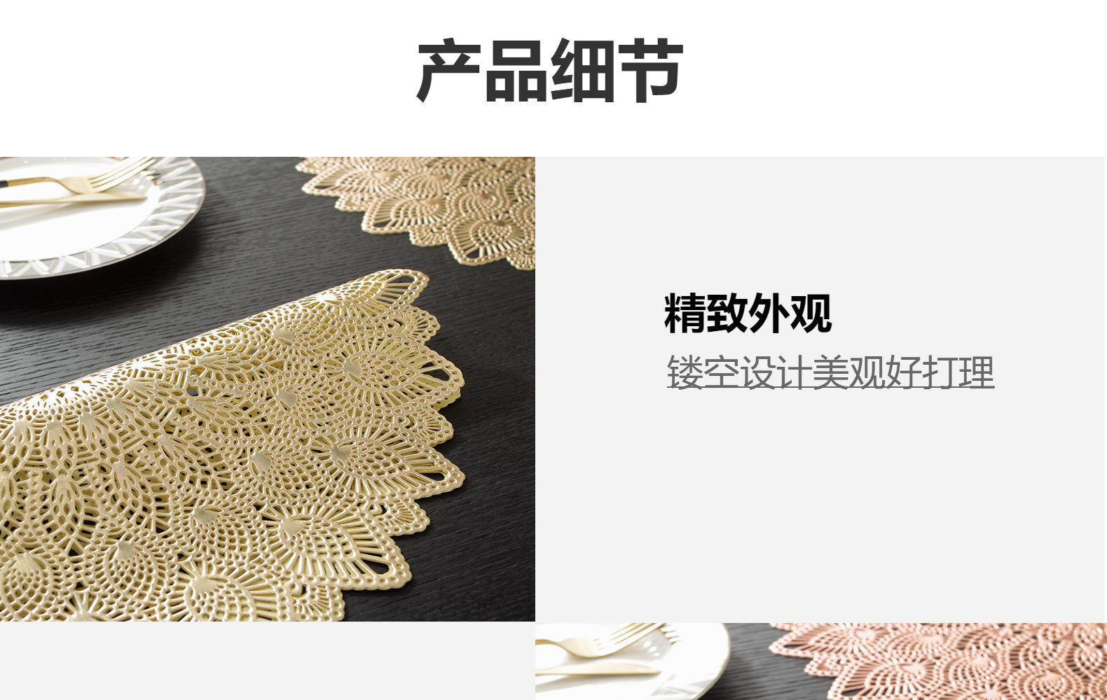欧式轻奢羽状图案餐垫家居装饰PVC防污耐刮可水洗装饰餐垫隔热垫
