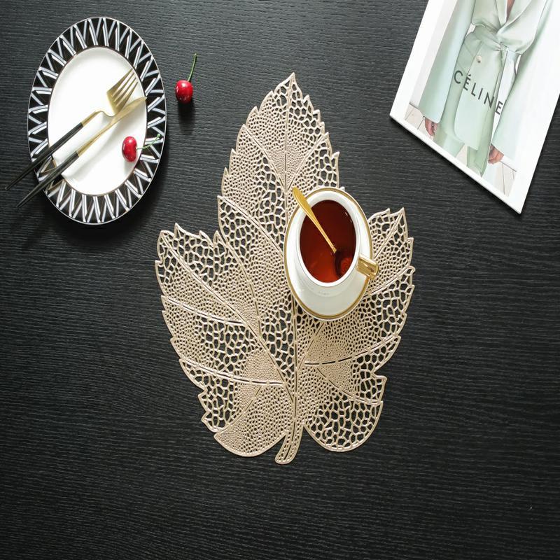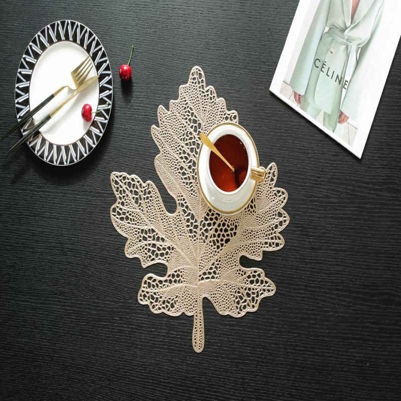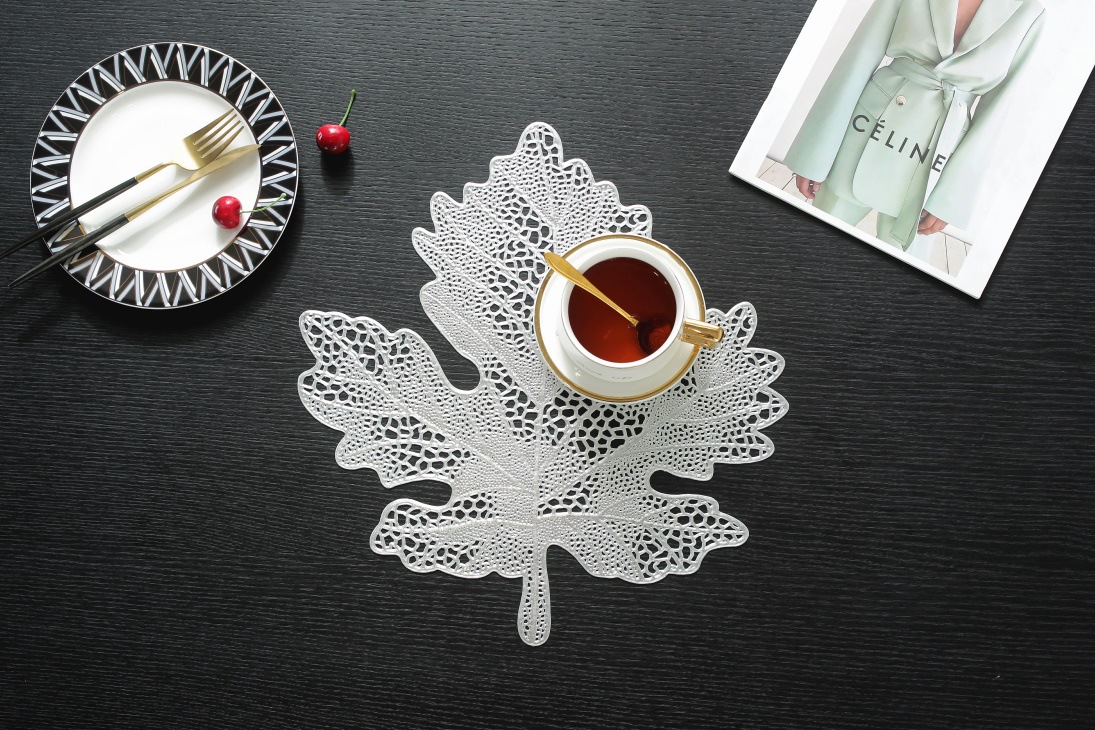 PVC西餐垫镂空隔热垫餐桌垫杯垫盘垫跨境电商酒店餐厅树叶餐垫