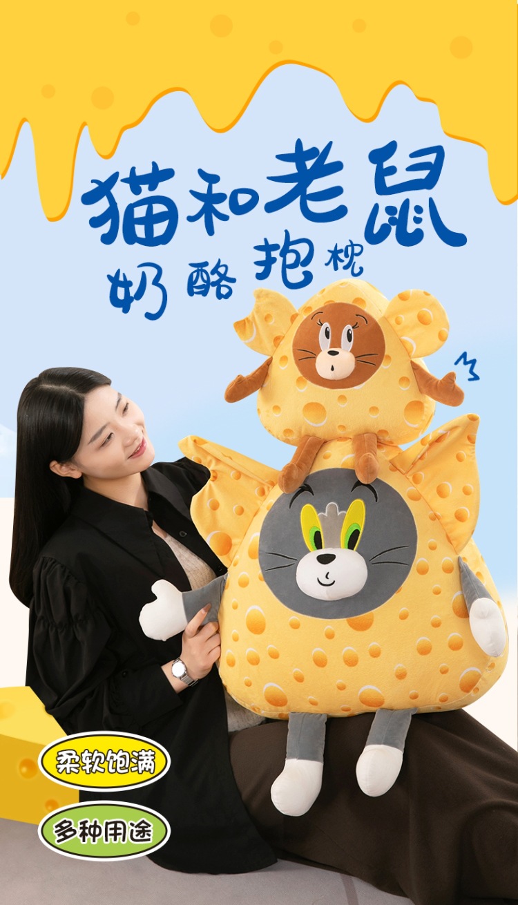 外贸奶酪猫和老鼠抱枕汤姆猫杰瑞鼠玩偶毛绒公仔抓机店布娃娃批发