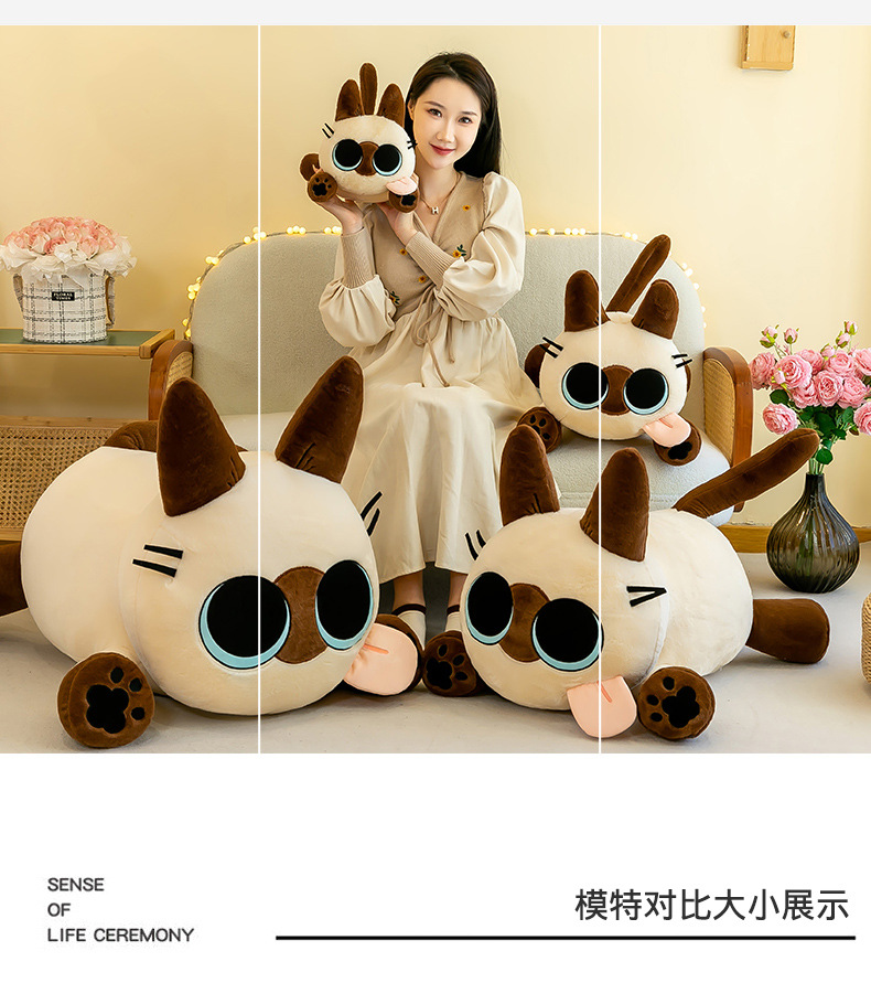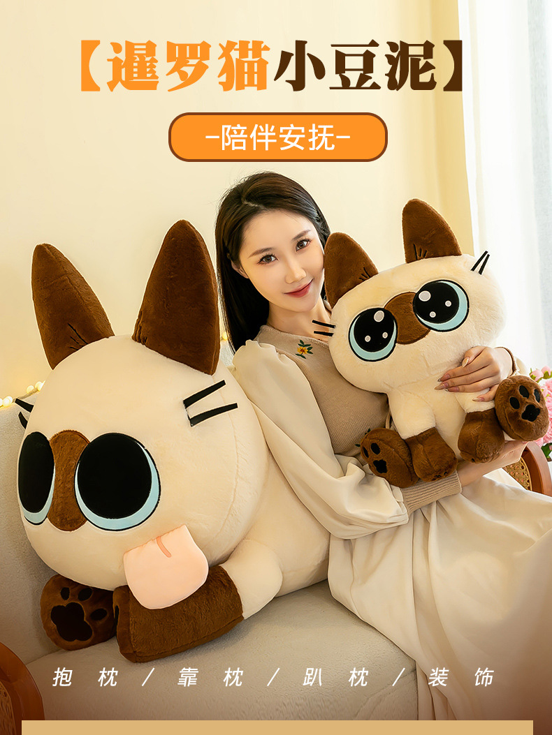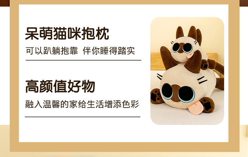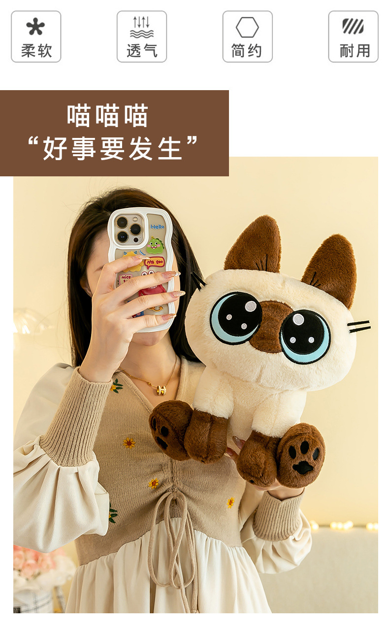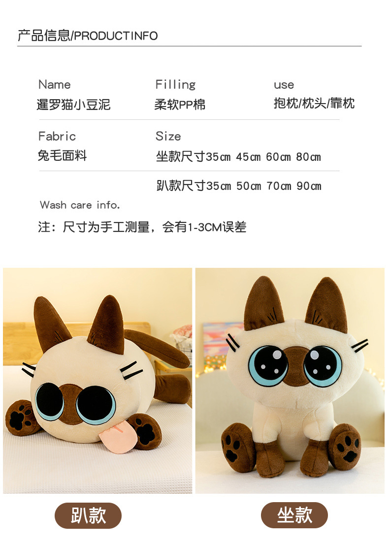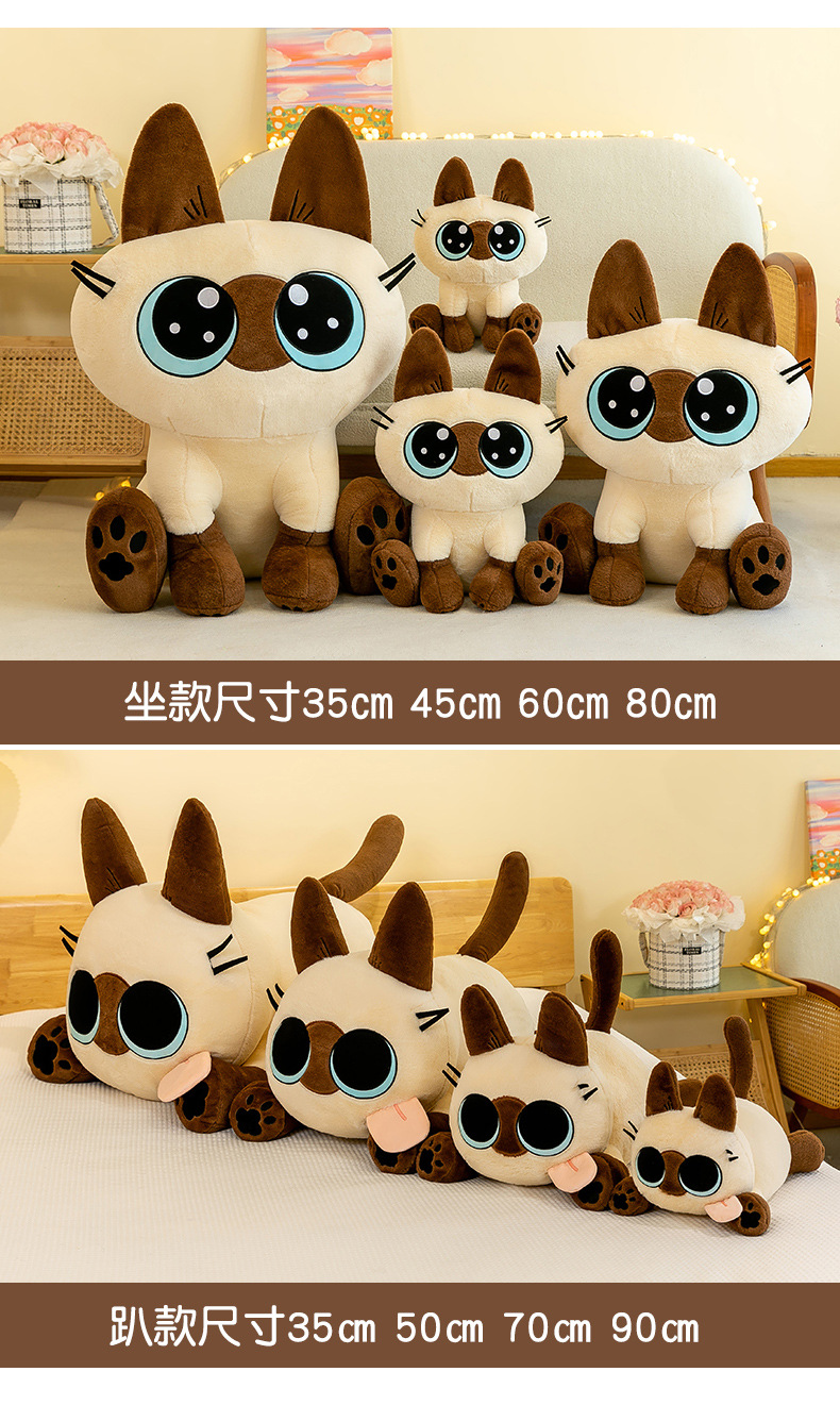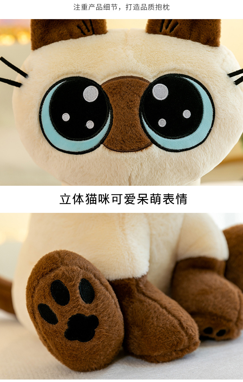 外贸热卖款暹罗猫小豆泥毛绒公仔公仔可爱卡通暹罗猫毛绒玩偶抱枕
