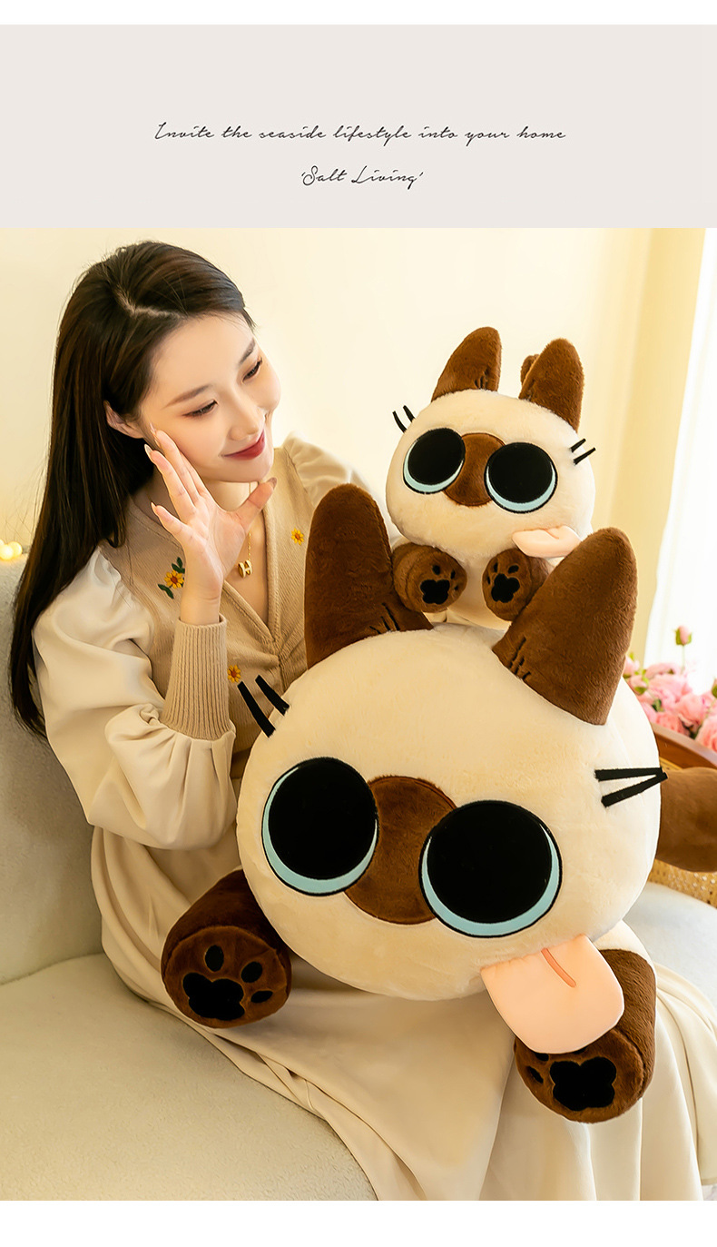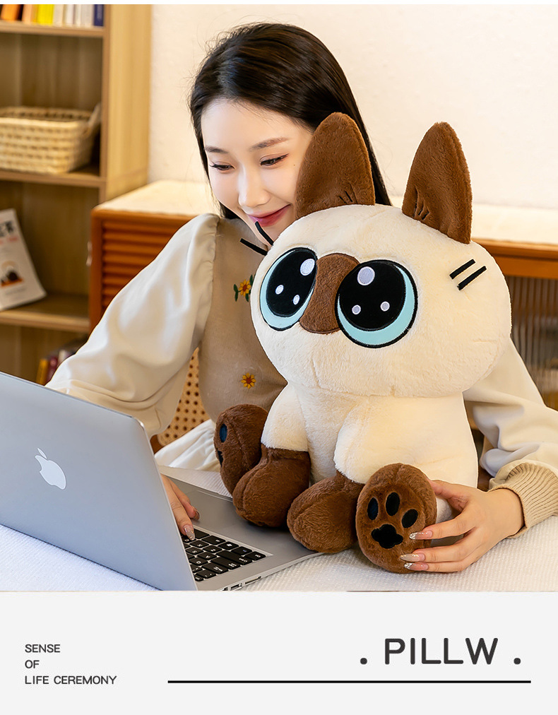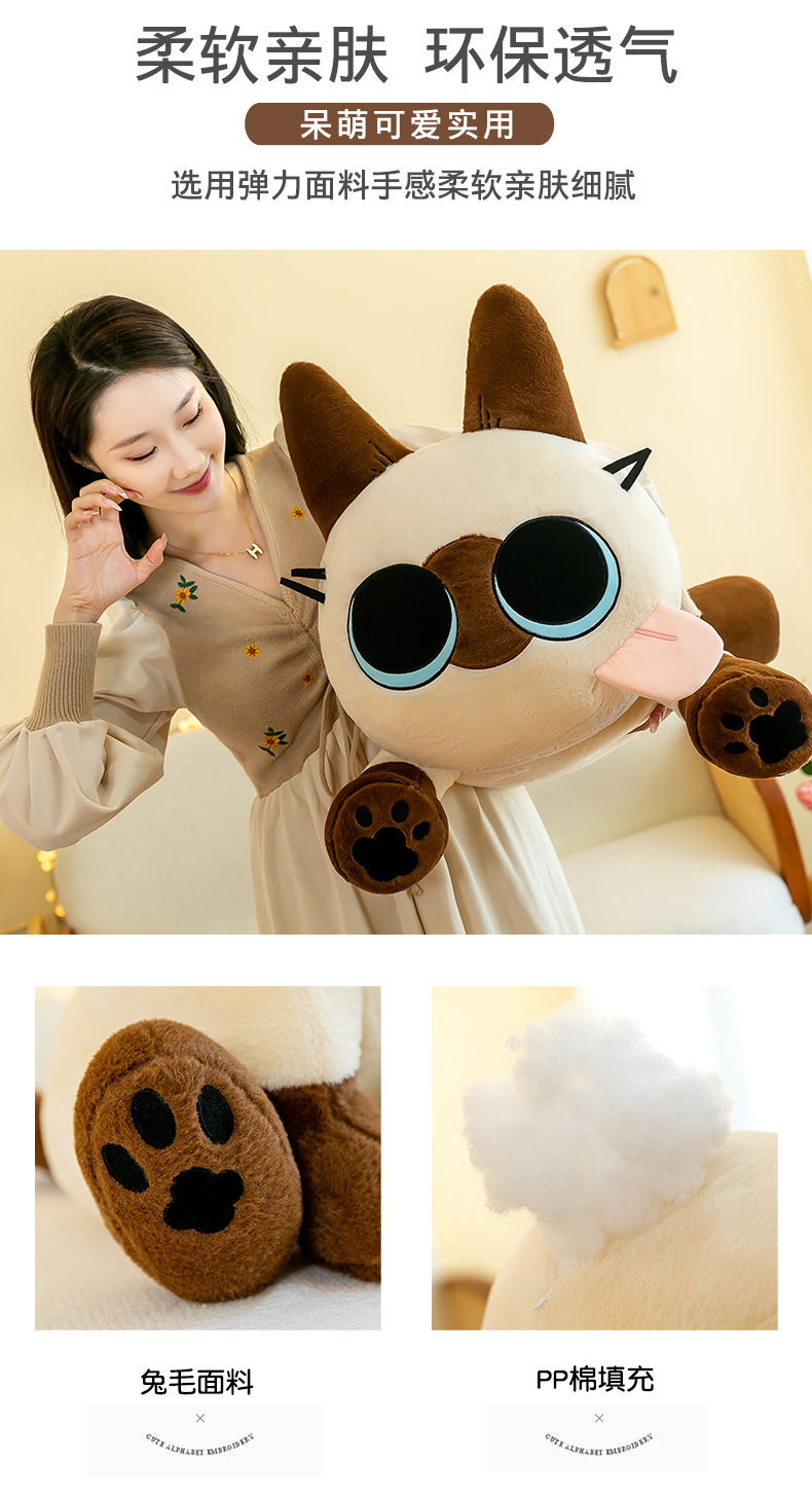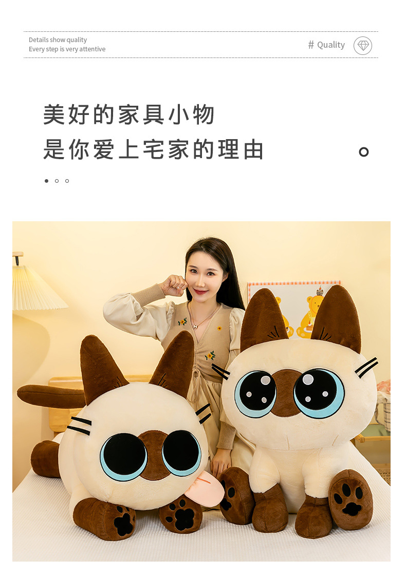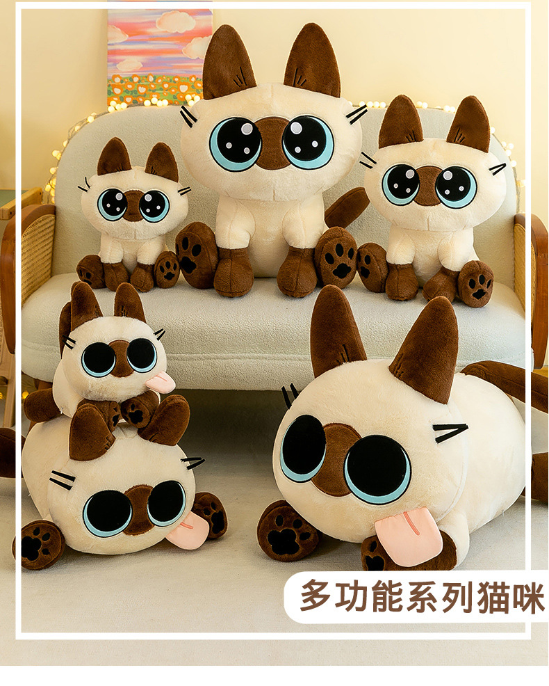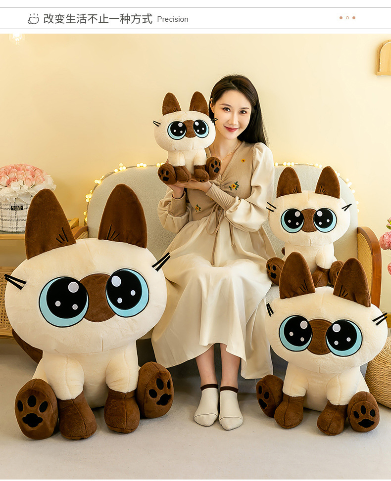 外贸热卖款暹罗猫小豆泥毛绒公仔公仔可爱卡通暹罗猫毛绒玩偶抱枕