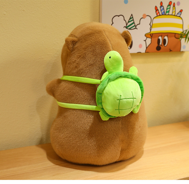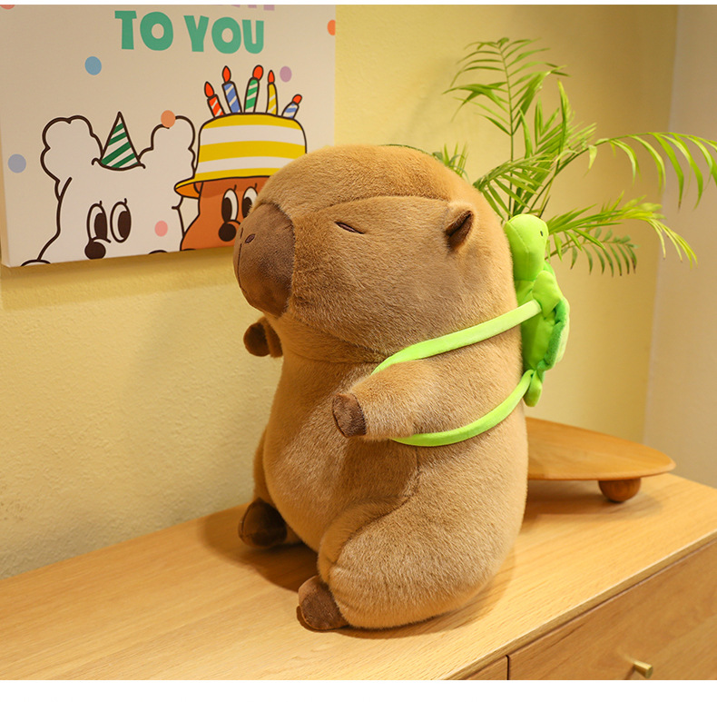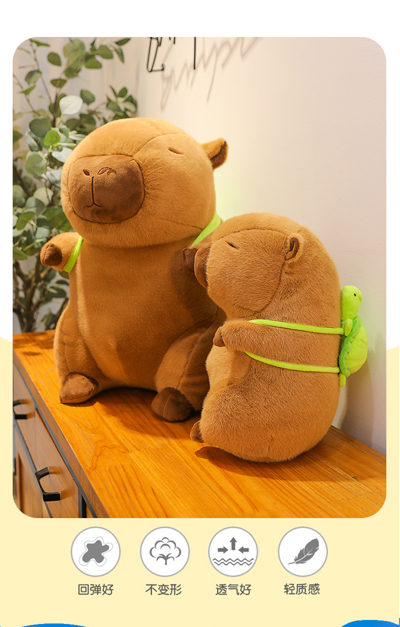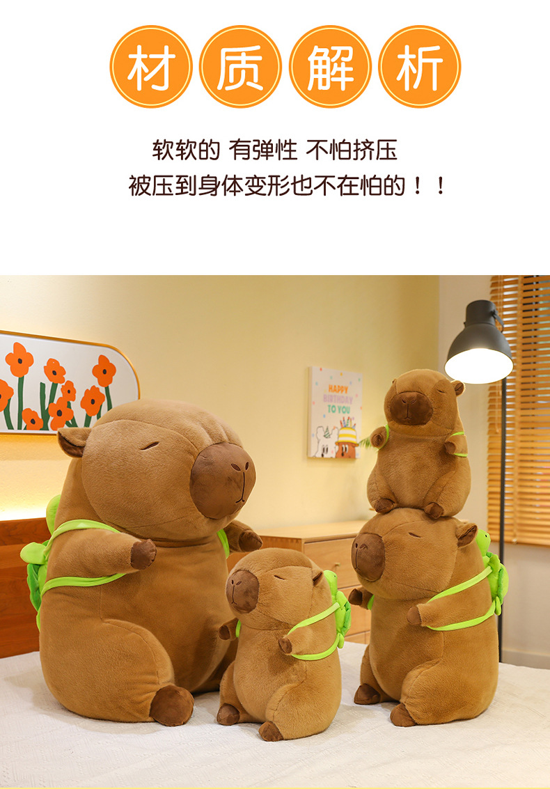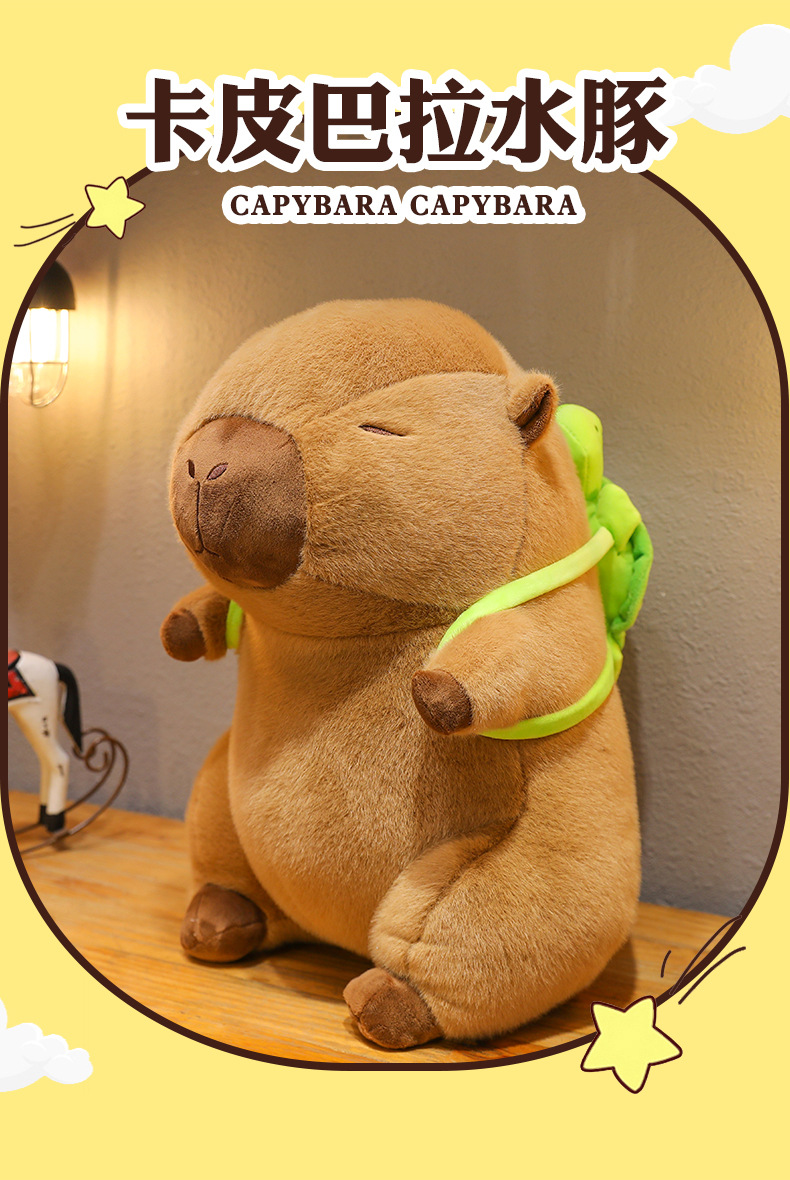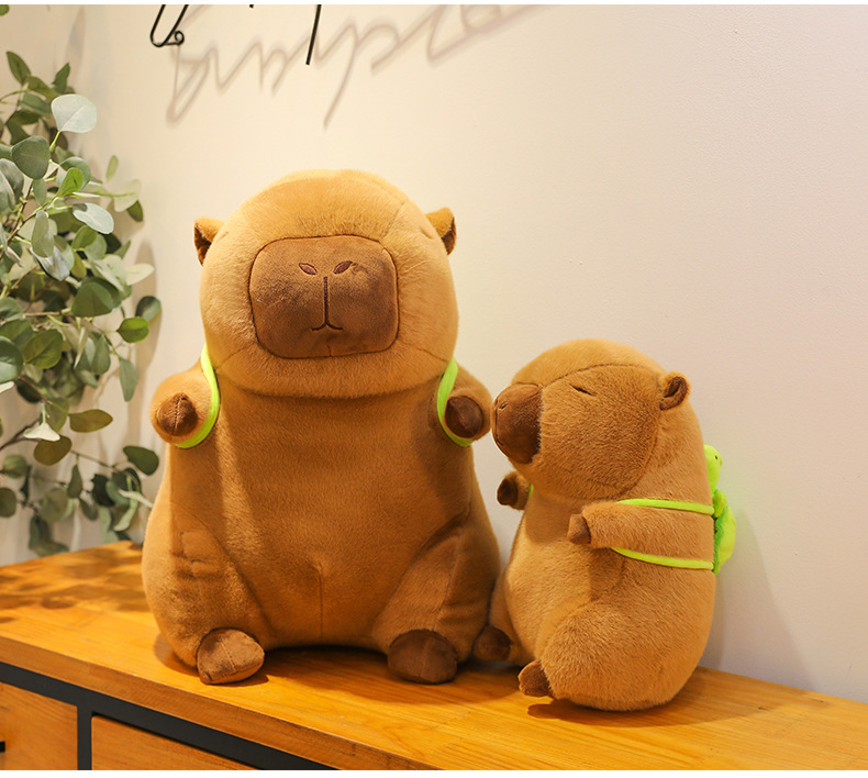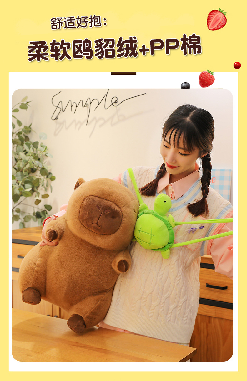 厂家直供卡皮巴拉毛绒玩具流鼻涕草莓帽乌龟背包水豚玩偶公仔批发