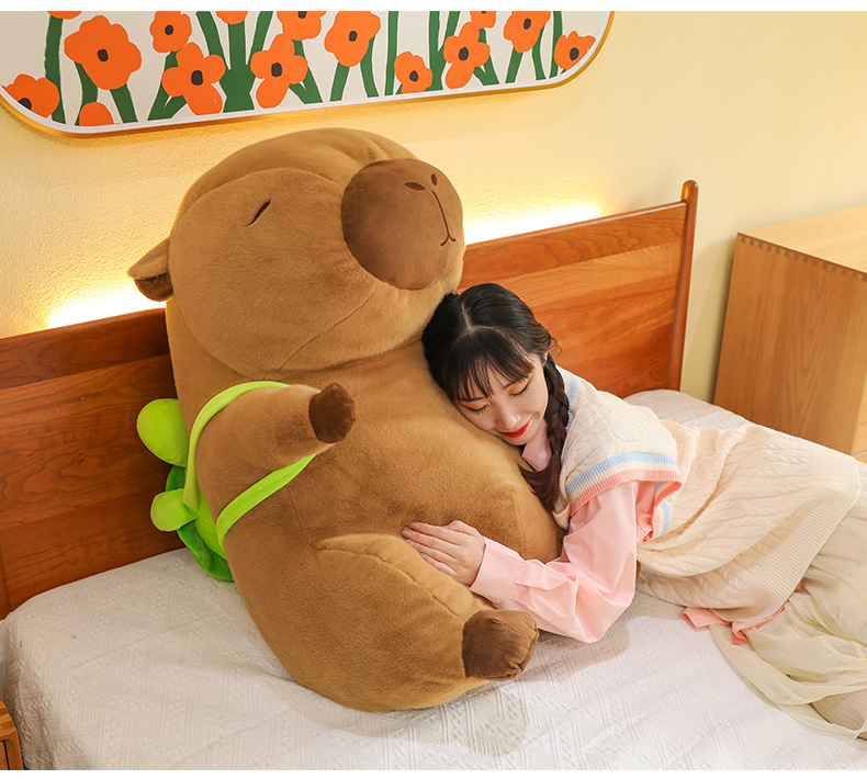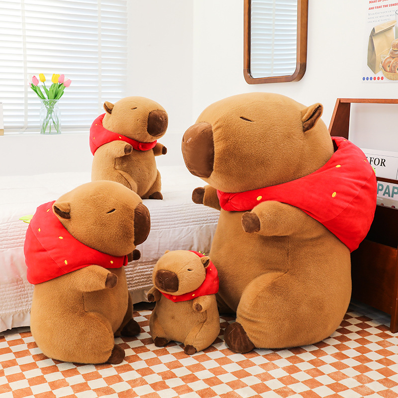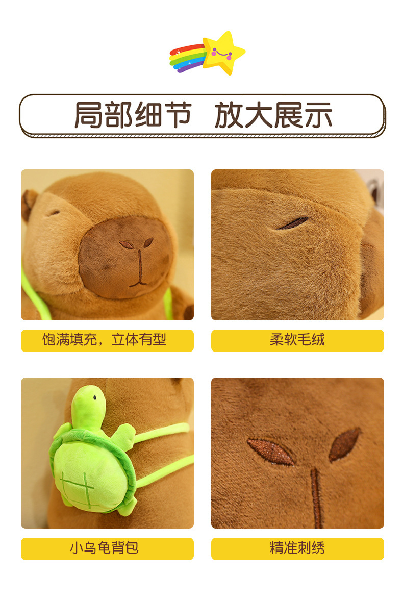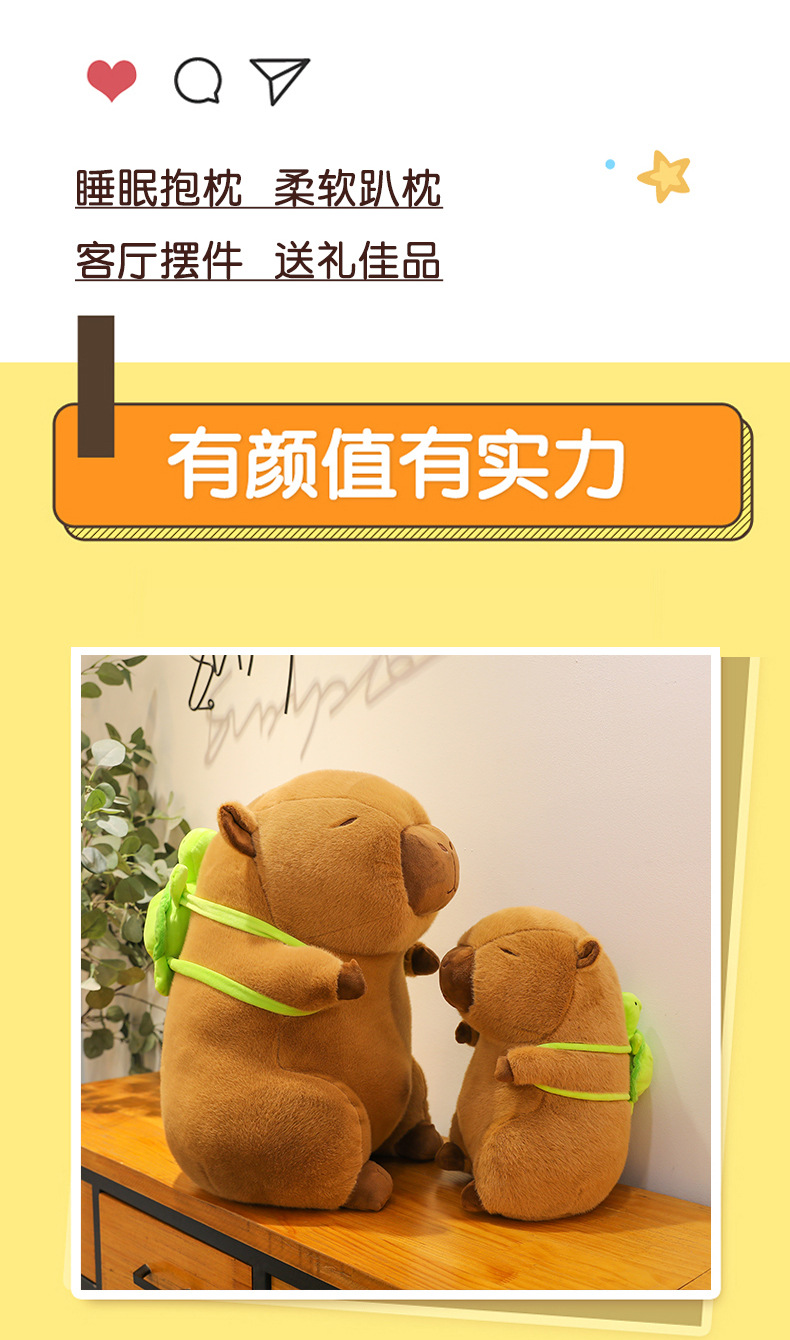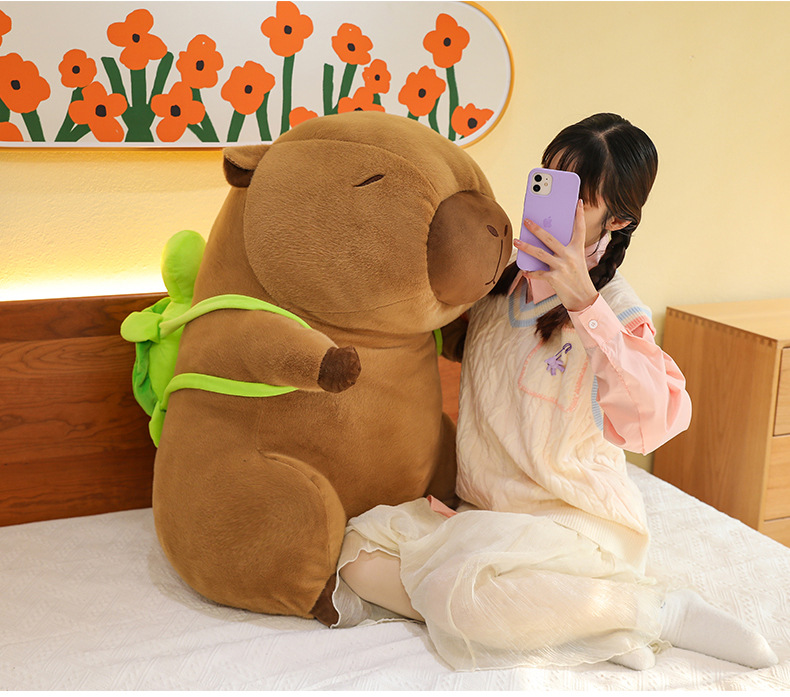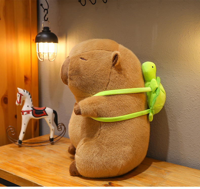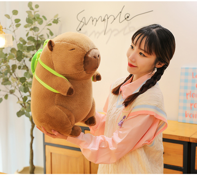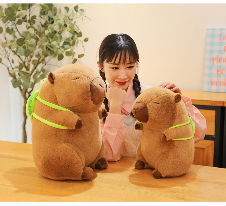 厂家直供卡皮巴拉毛绒玩具流鼻涕草莓帽乌龟背包水豚玩偶公仔批发