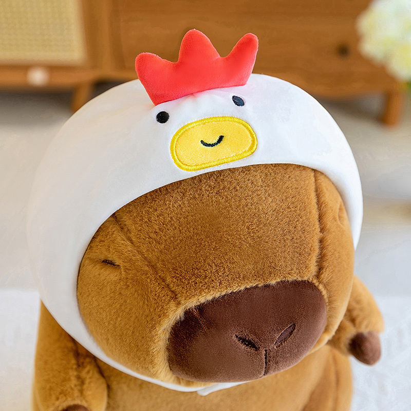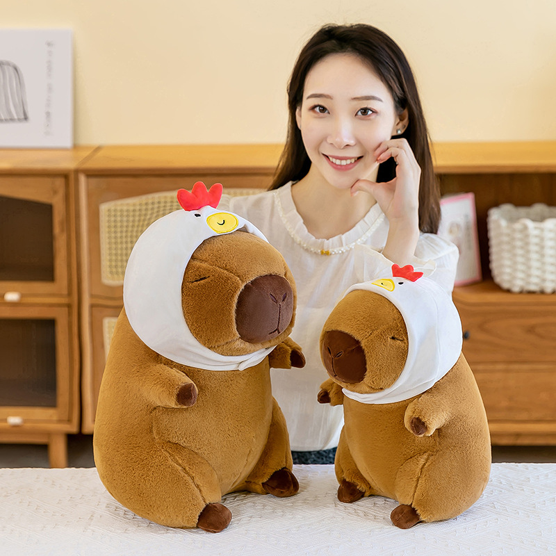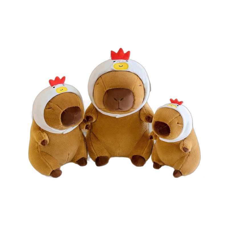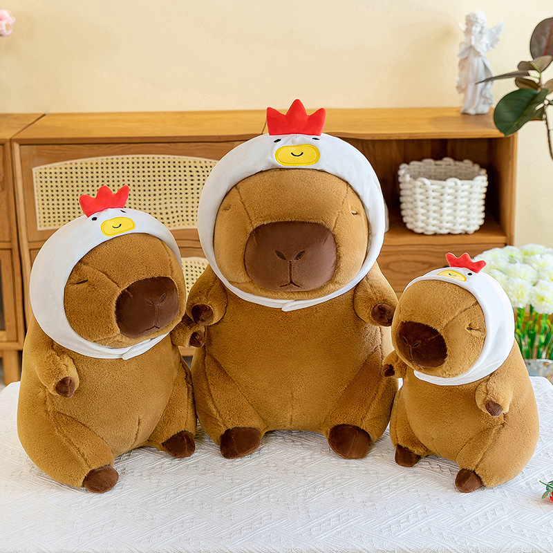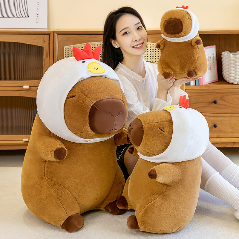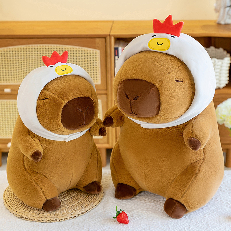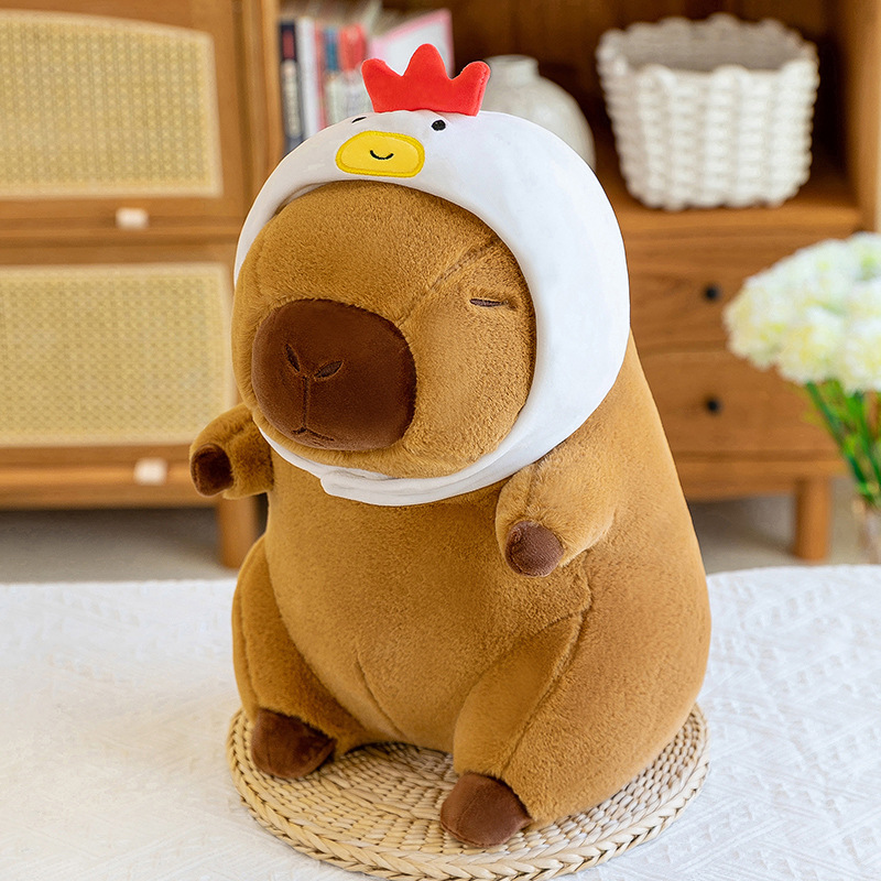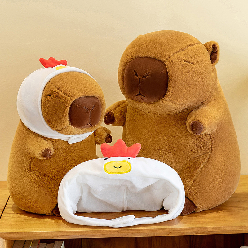 跨境外贸卡皮巴拉小鸡水豚帽子可脱玩偶儿童礼物毛绒玩具抓机娃娃