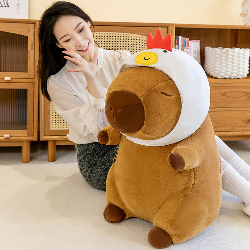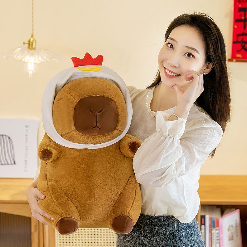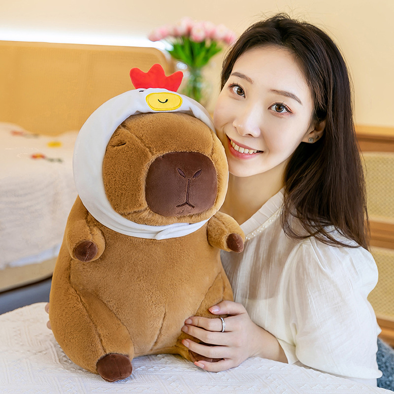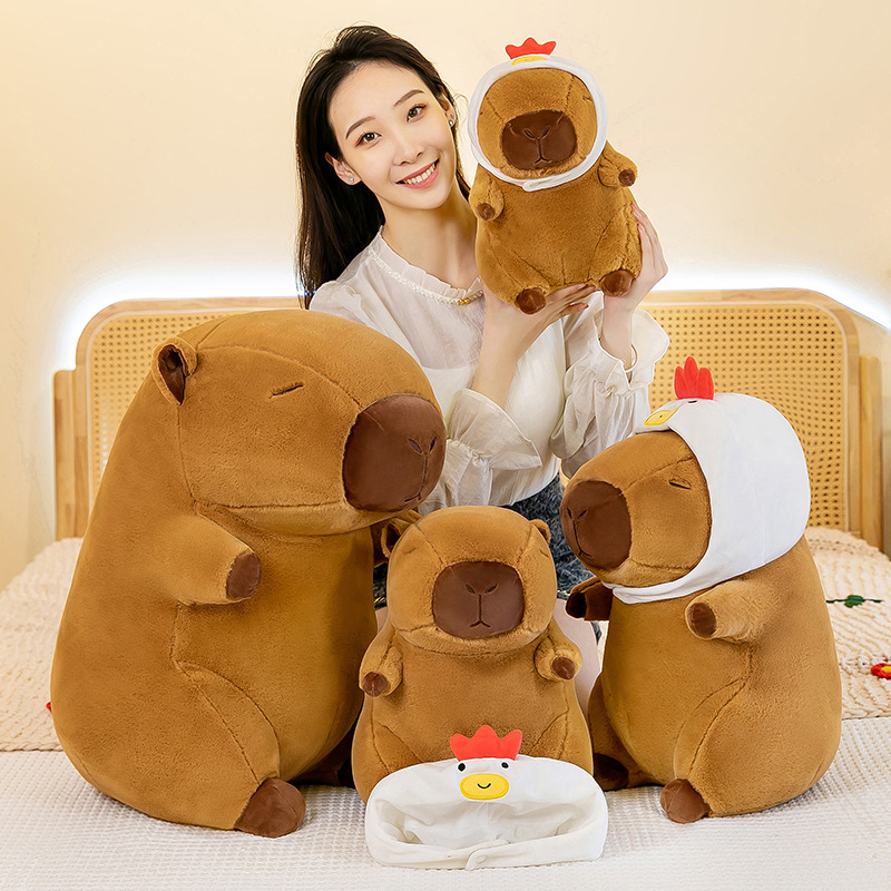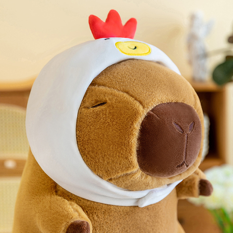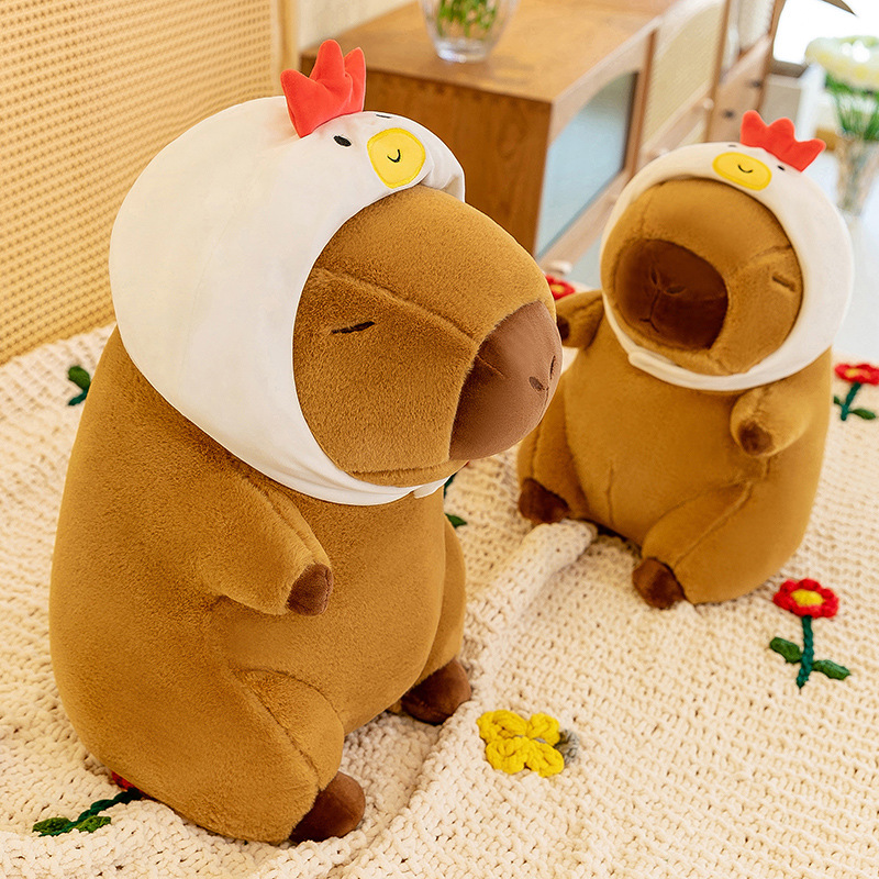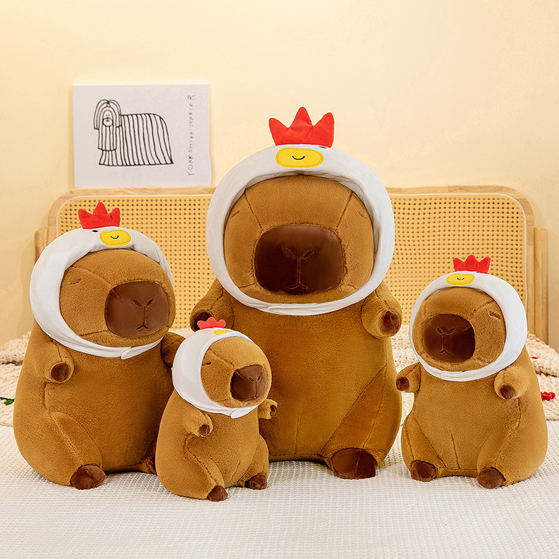 跨境外贸卡皮巴拉小鸡水豚帽子可脱玩偶儿童礼物毛绒玩具抓机娃娃