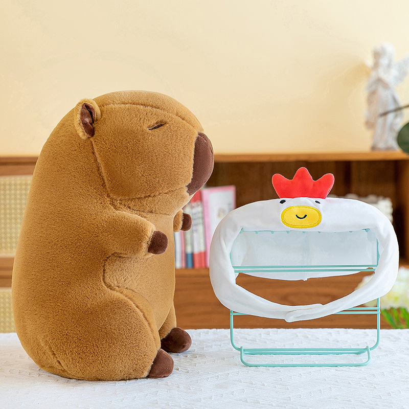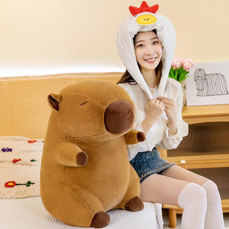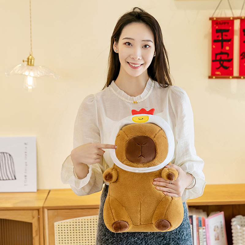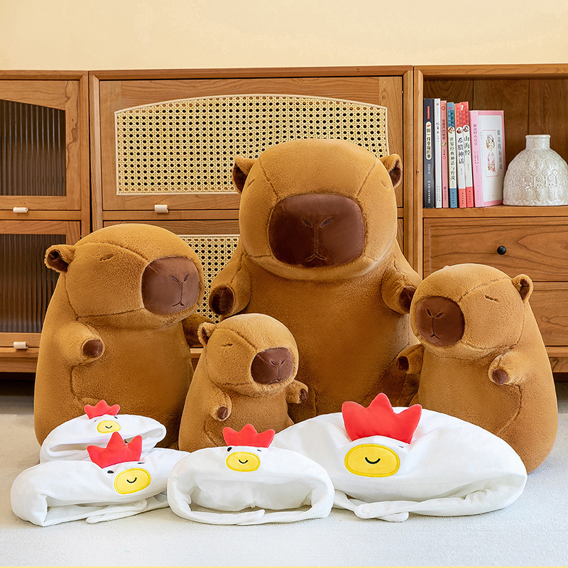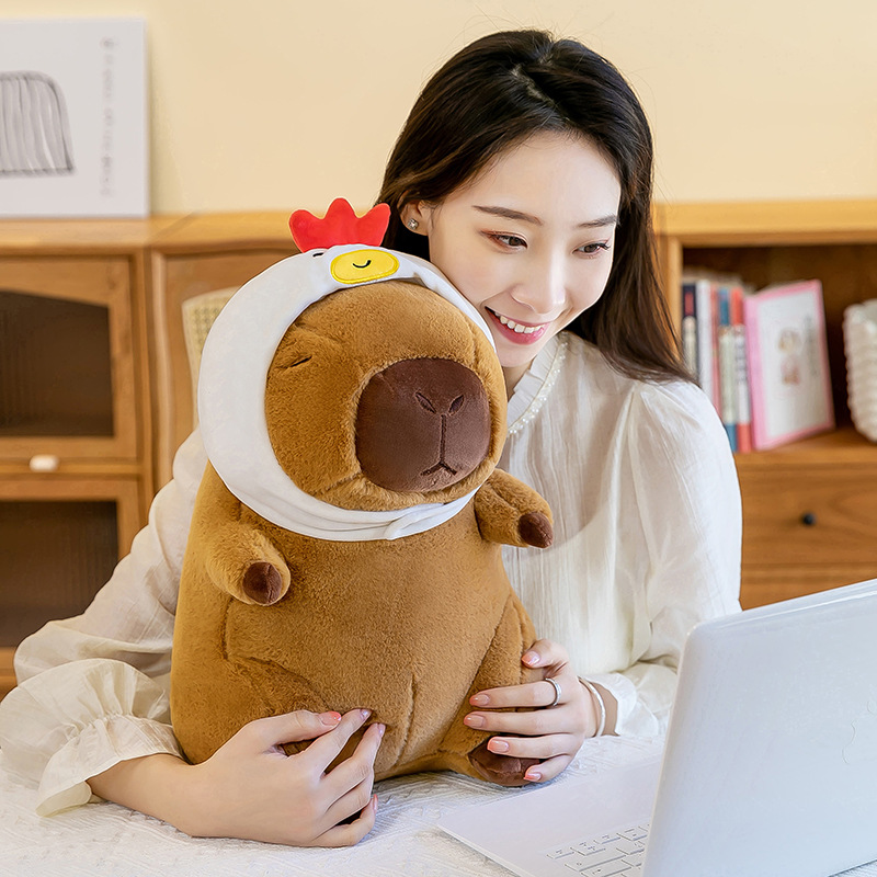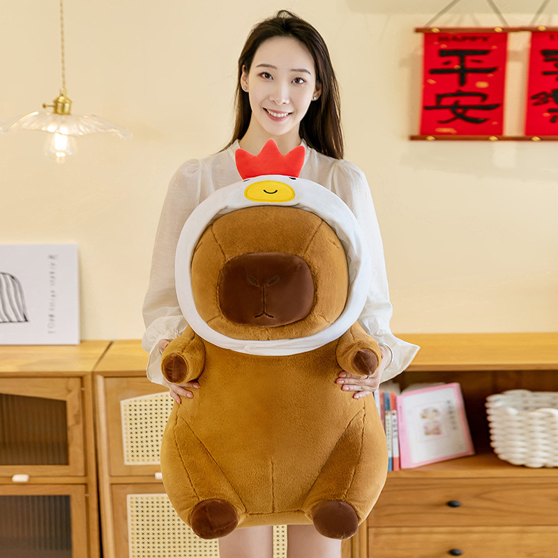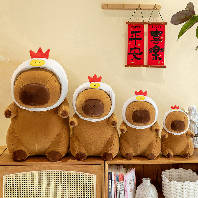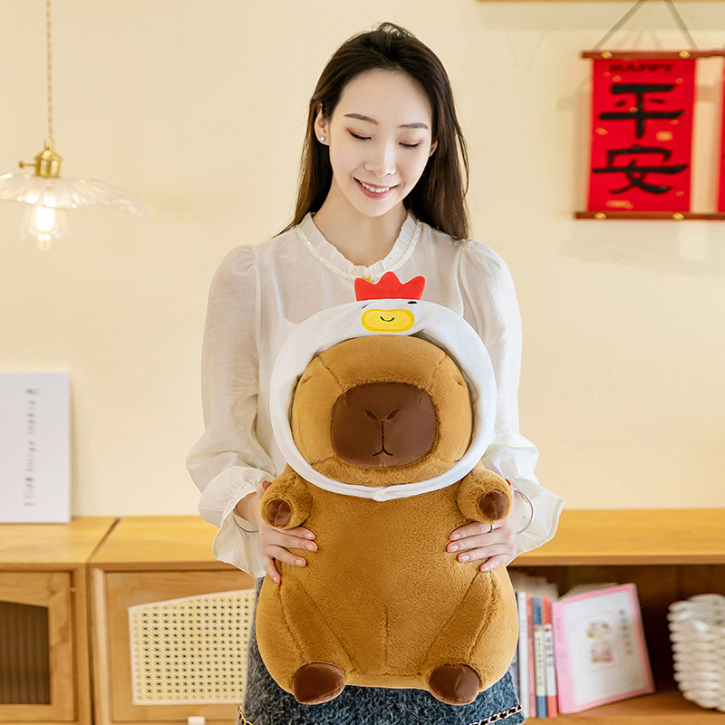 跨境外贸卡皮巴拉小鸡水豚帽子可脱玩偶儿童礼物毛绒玩具抓机娃娃
