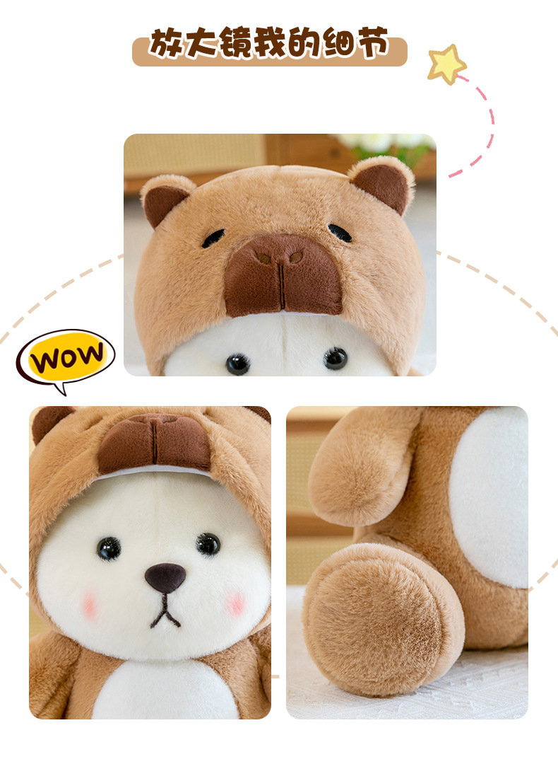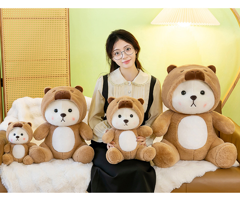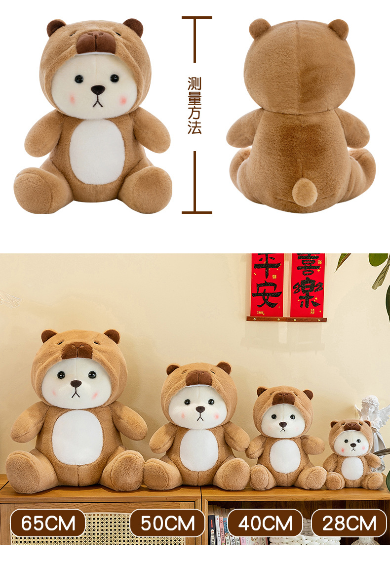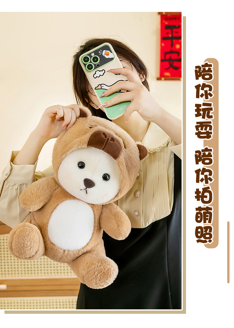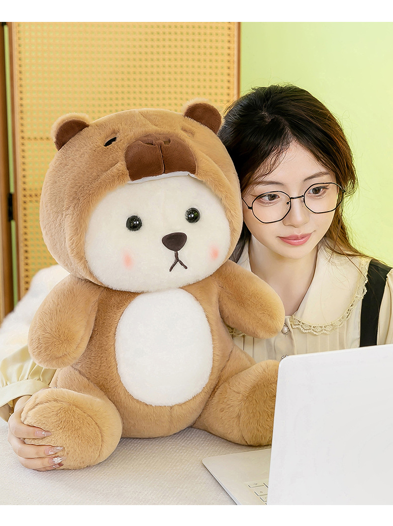 爆款网红变身水豚小熊玩偶公仔可爱小熊卡皮巴拉毛绒玩具女生礼物