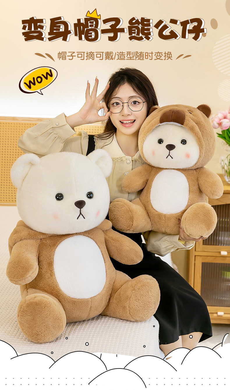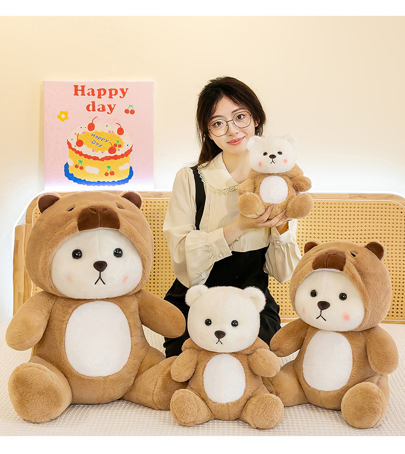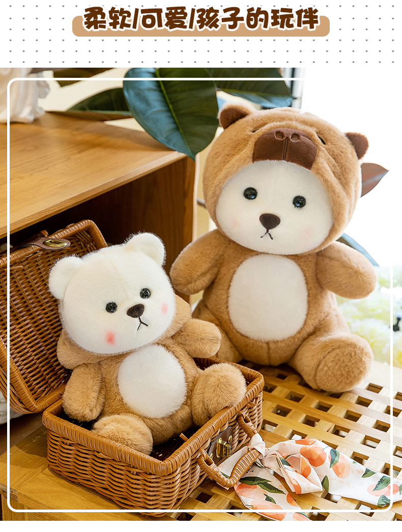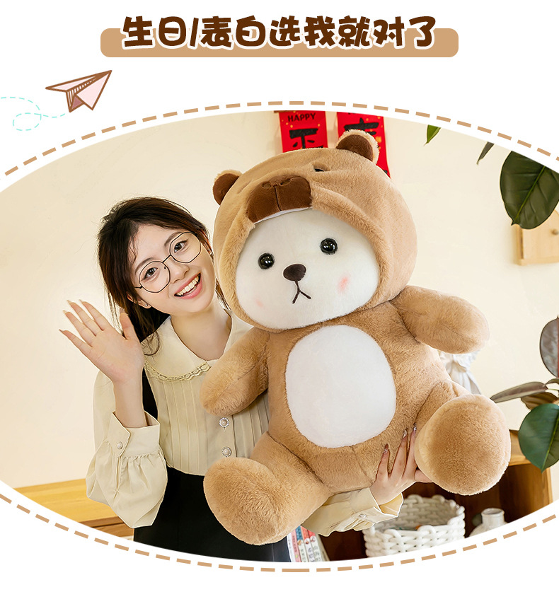 爆款网红变身水豚小熊玩偶公仔可爱小熊卡皮巴拉毛绒玩具女生礼物