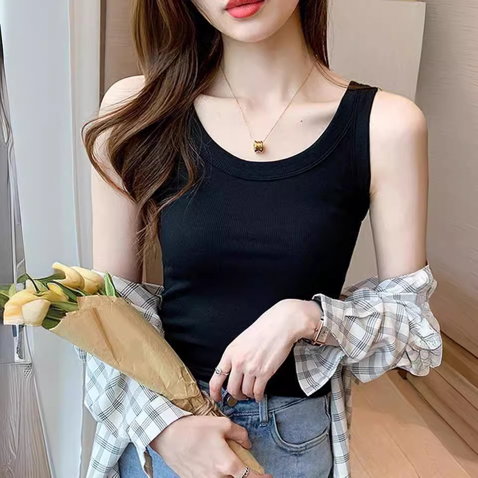 爆款螺纹针织背心女西装内搭小吊带春秋夏季修身打底外穿无袖上衣