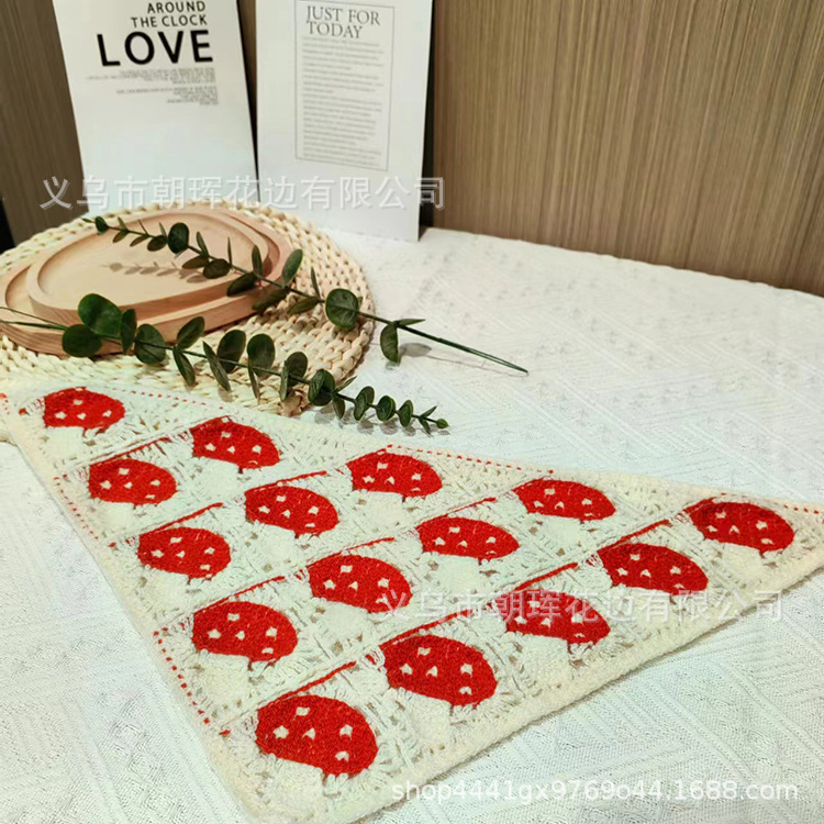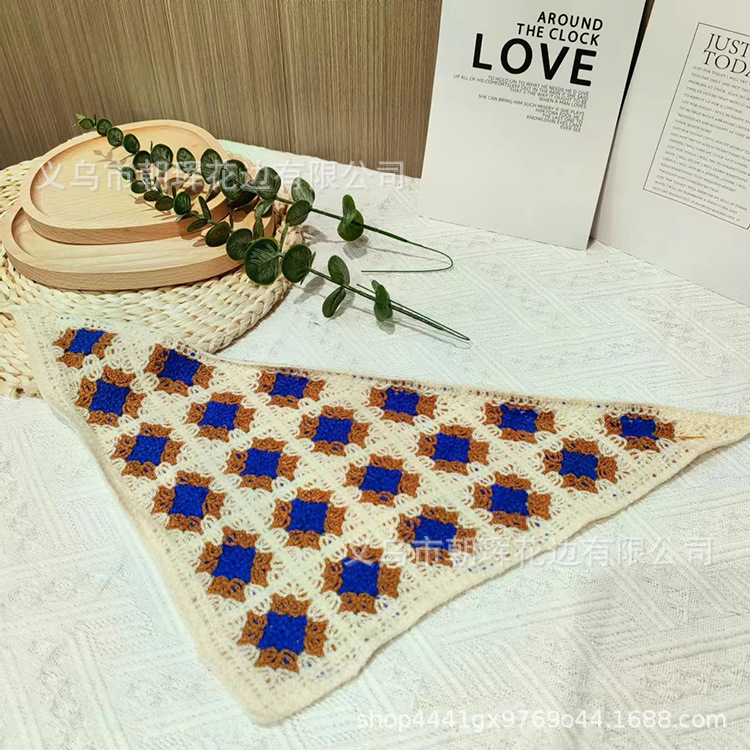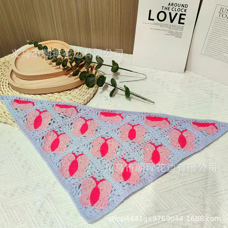 韩式编织三角巾 时尚百搭毛巾绣头巾 花朵镂空流行元素拍照单品