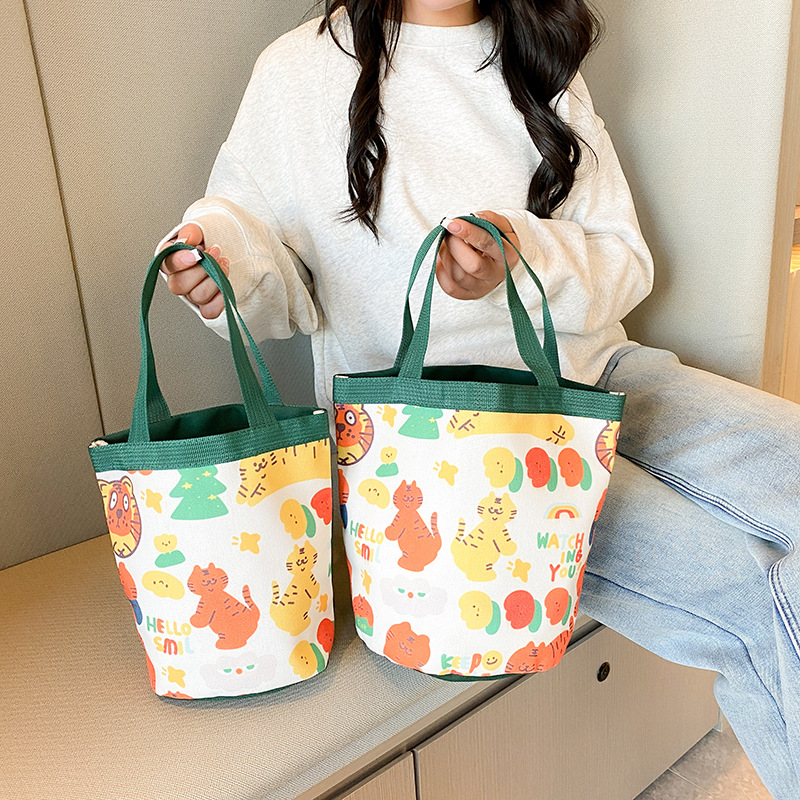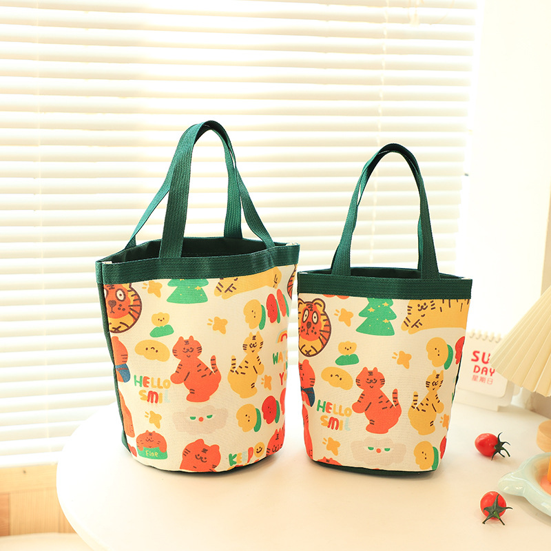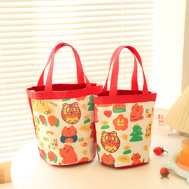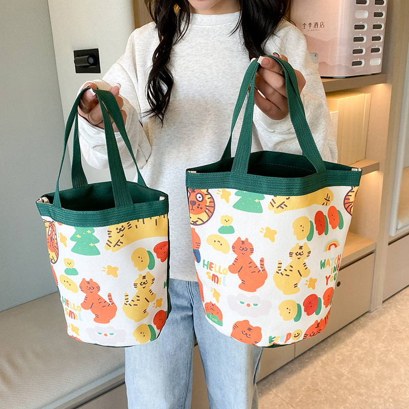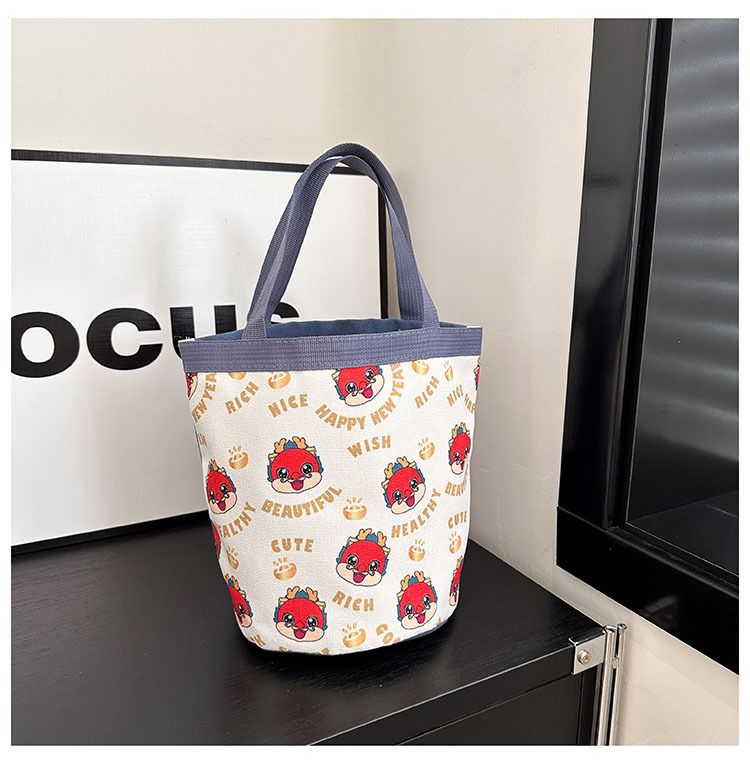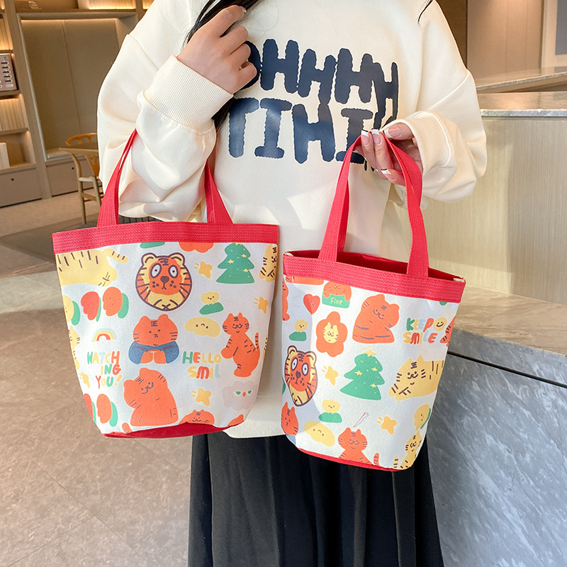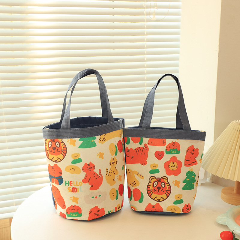 新款大容量手拎包卡通帆布包上班族饭盒包礼品水桶包原创便当包