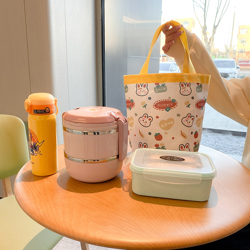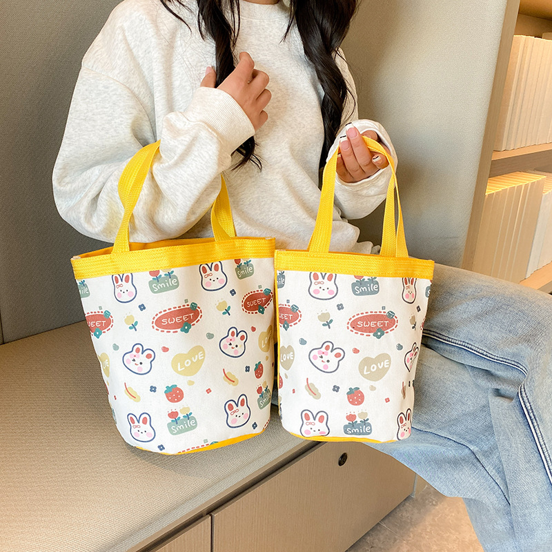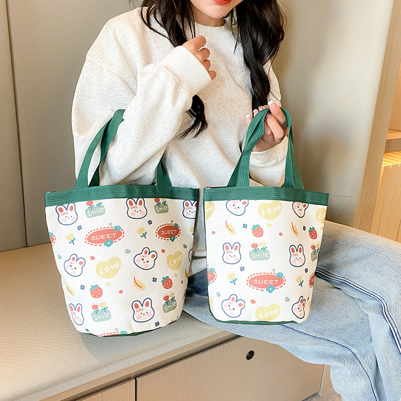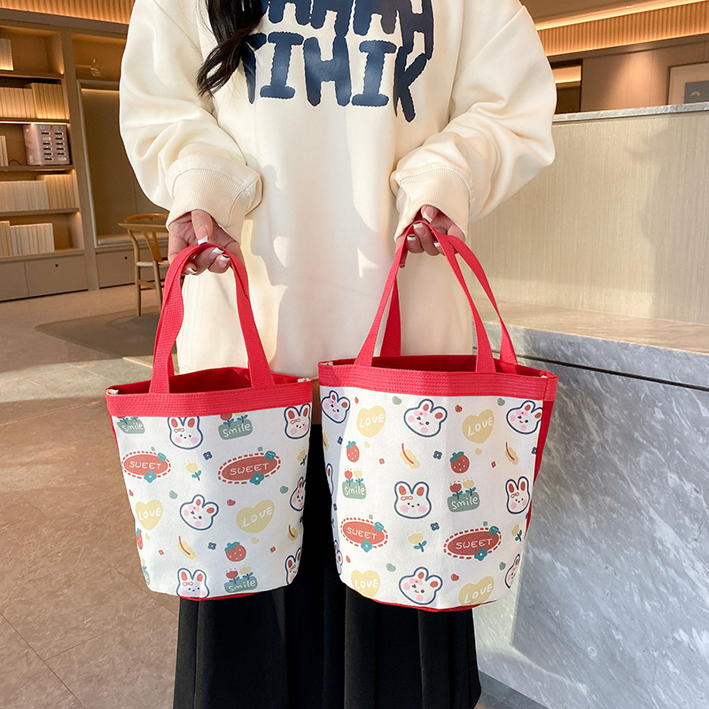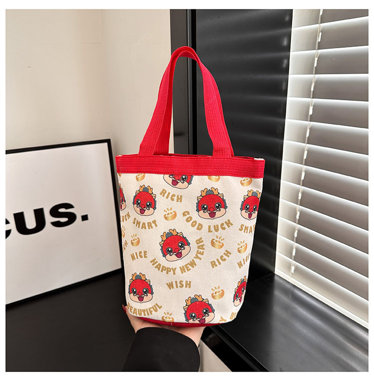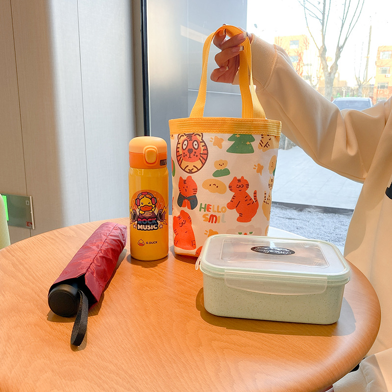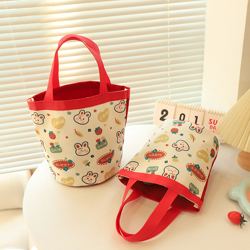 新款大容量手拎包卡通帆布包上班族饭盒包礼品水桶包原创便当包