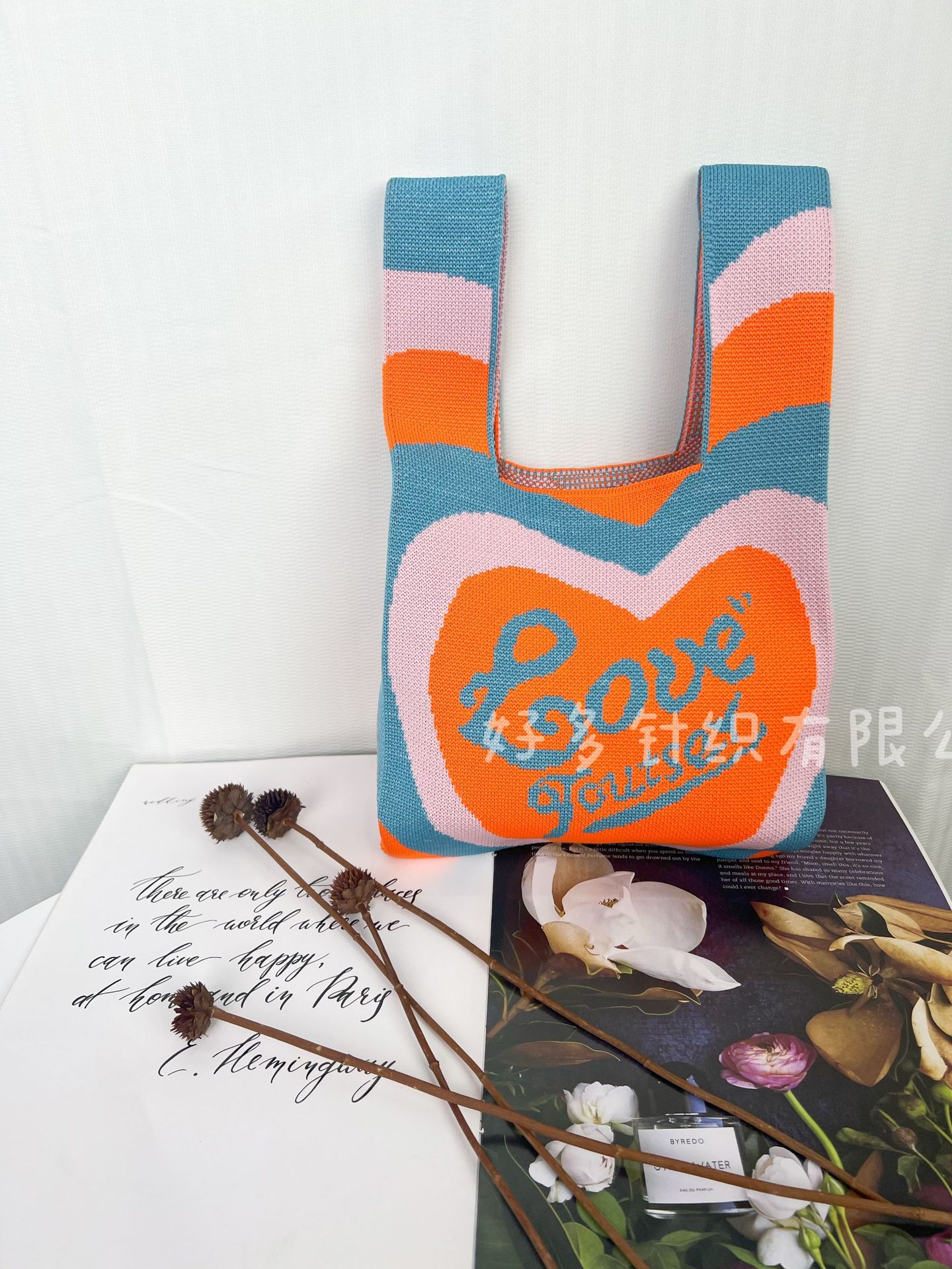 新款飞织包手提包女针织毛线水桶包日韩百搭手拎休闲托特包盒饭袋