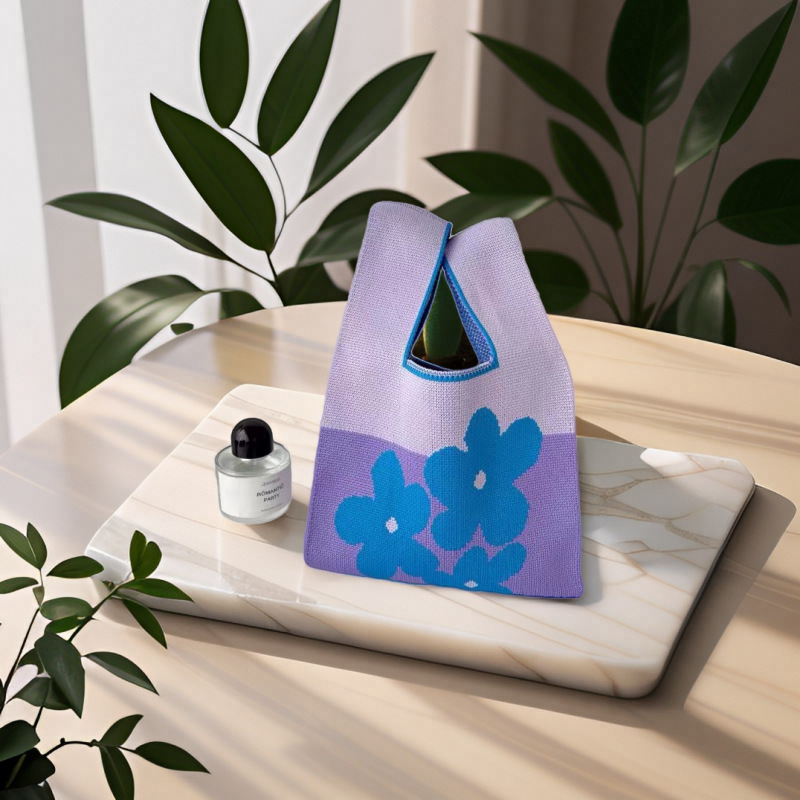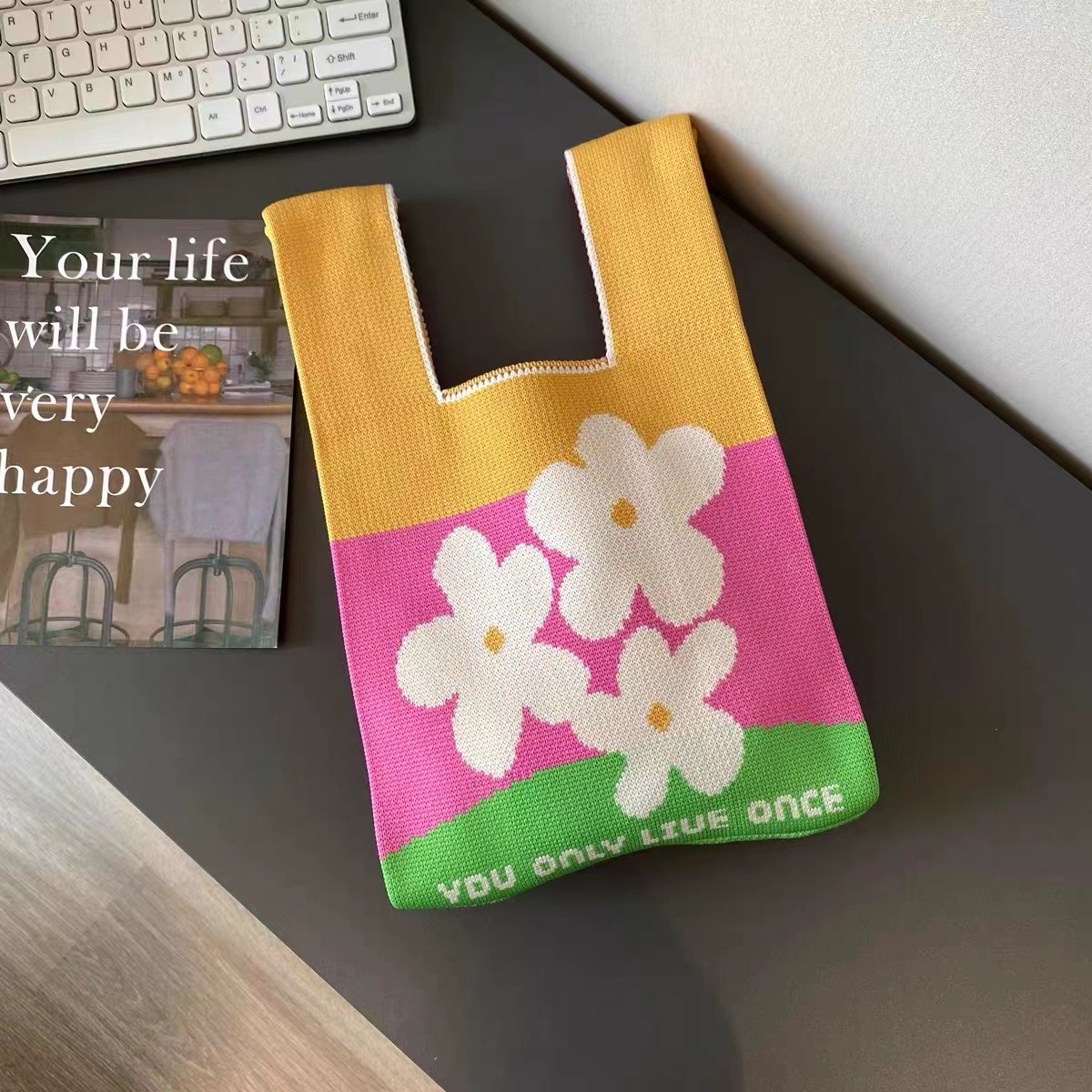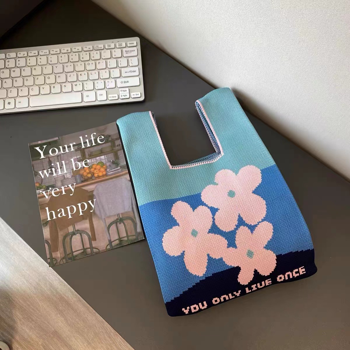 小众设计个性针织花朵包包百搭针织单肩编织包手提包托特包春季女