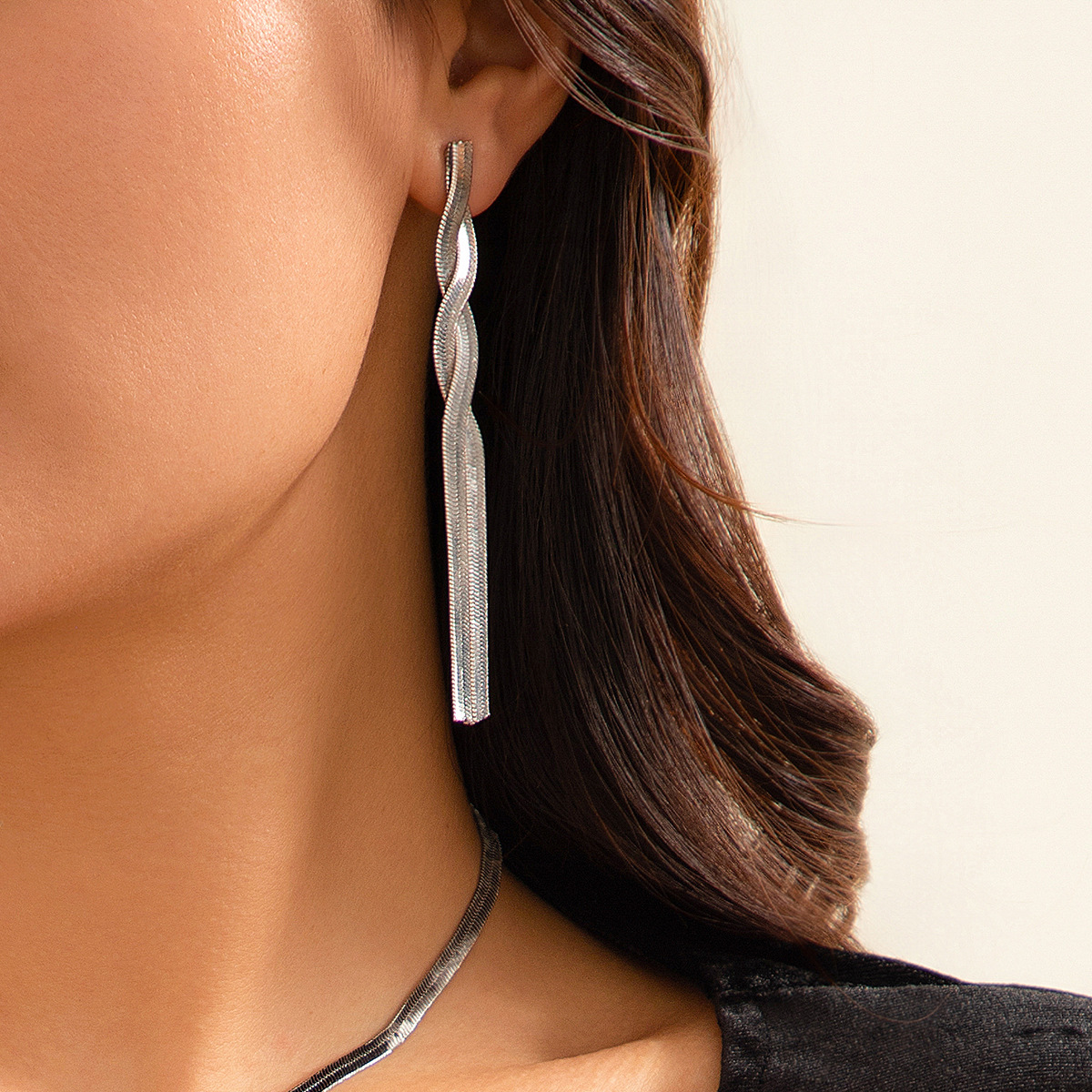 欧美跨境饰品 简约链条长款项饰 创意撞色缠绕蛇骨链流苏项链女