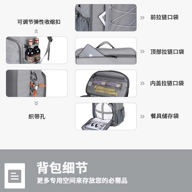 跨境热销创意双层保温背包户外野营多功能野餐背包加厚铝箔大冰包