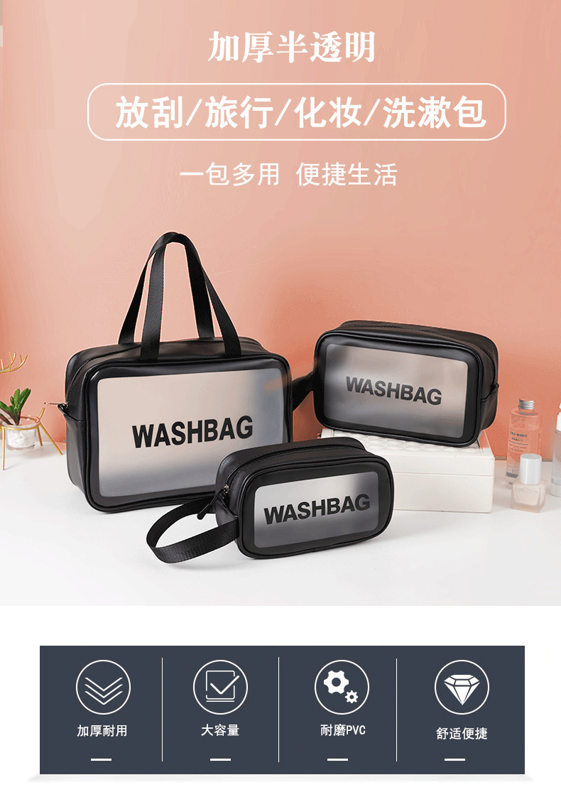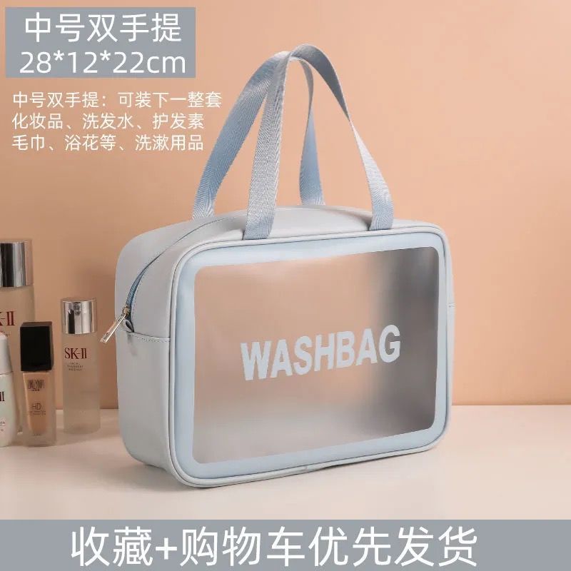 韩式大容量洗漱包便携手提磨砂化妆包透明防水加厚洗漱防尘收纳袋