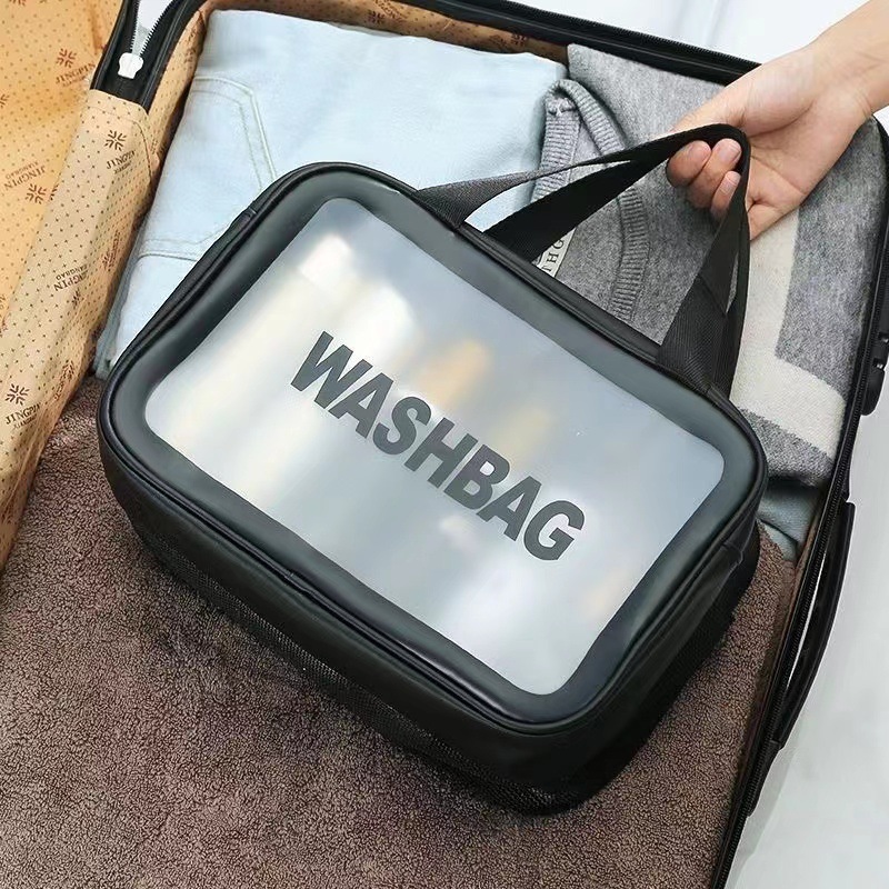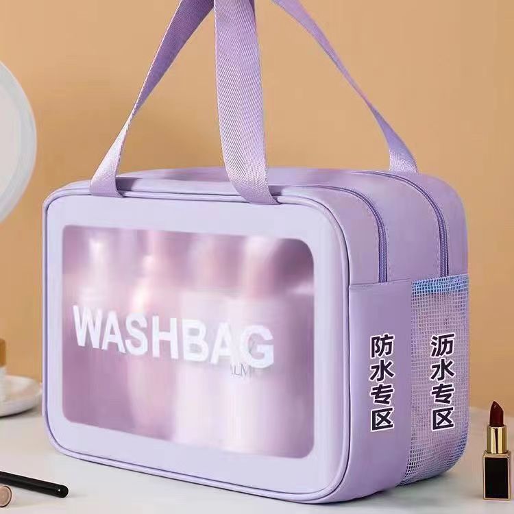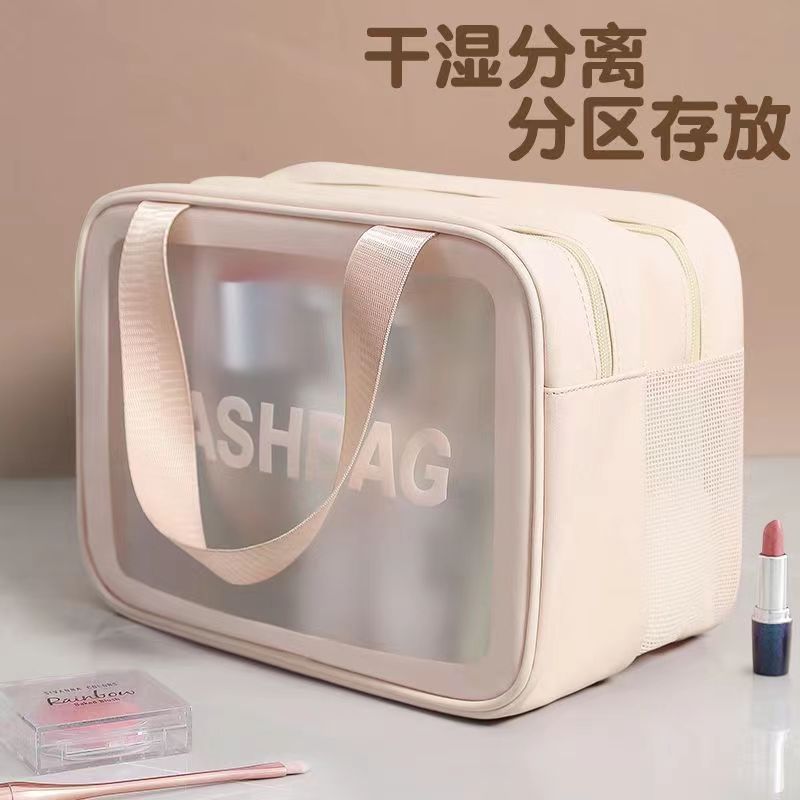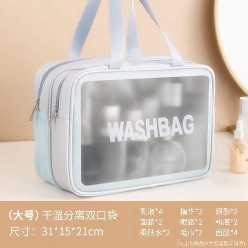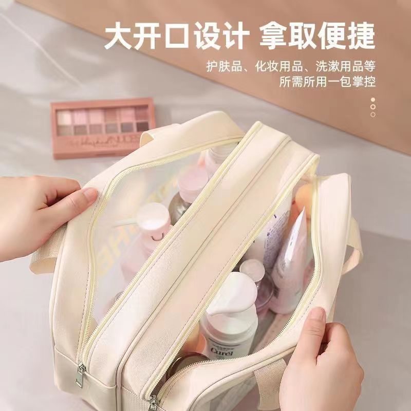 双层干湿分离化妆包防水加厚大容量收纳袋浴室出差旅行携带洗漱包