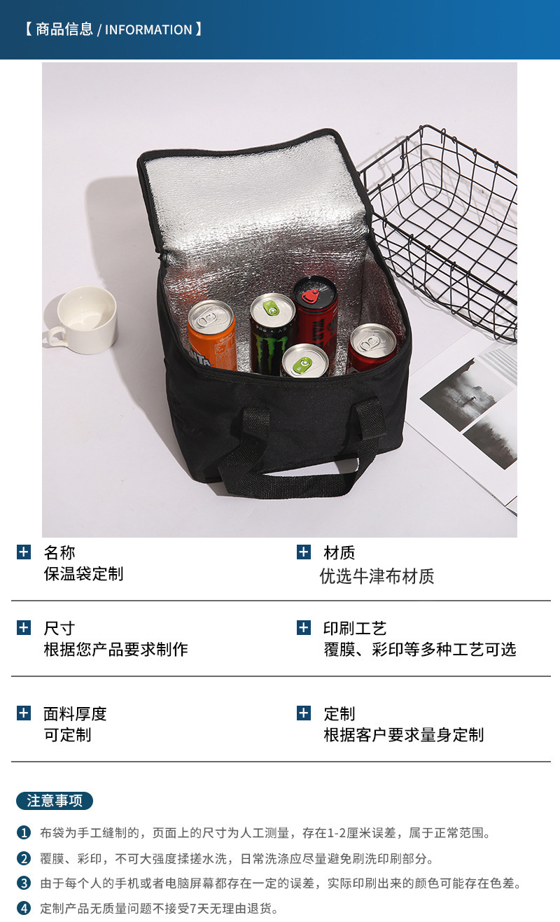 大容量冰包牛津布冷藏保温袋外卖便当野餐包手提恒温袋露营收纳包